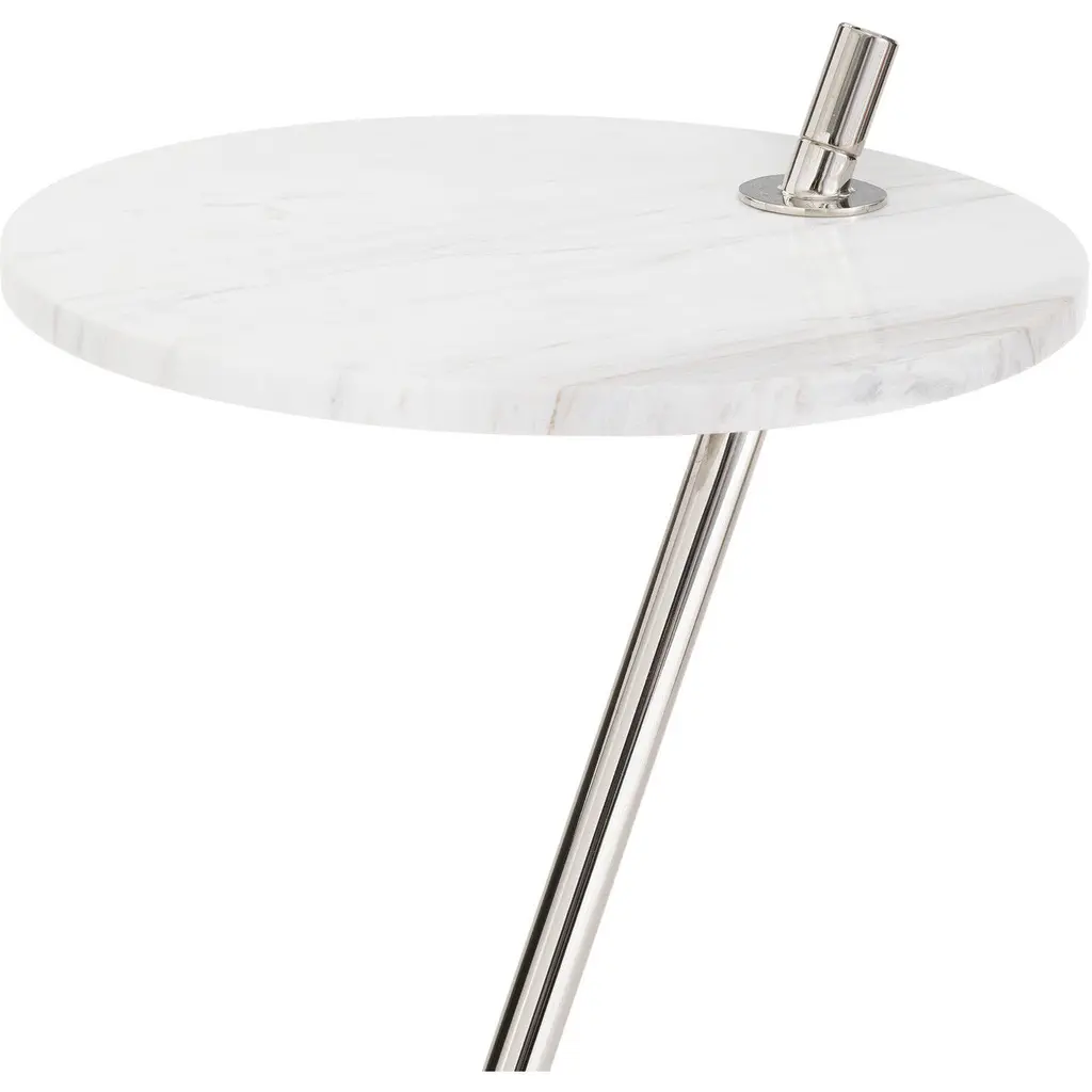 The Spyder Accent Table seamlessly blends form, function, and style a modern touch of luxury. Timeless marble tops a metal base featuring a unique kickstand, adding to its modern shape and sculptural aesthetic.