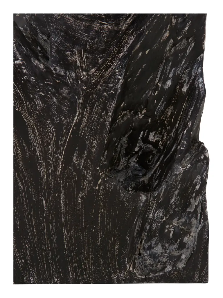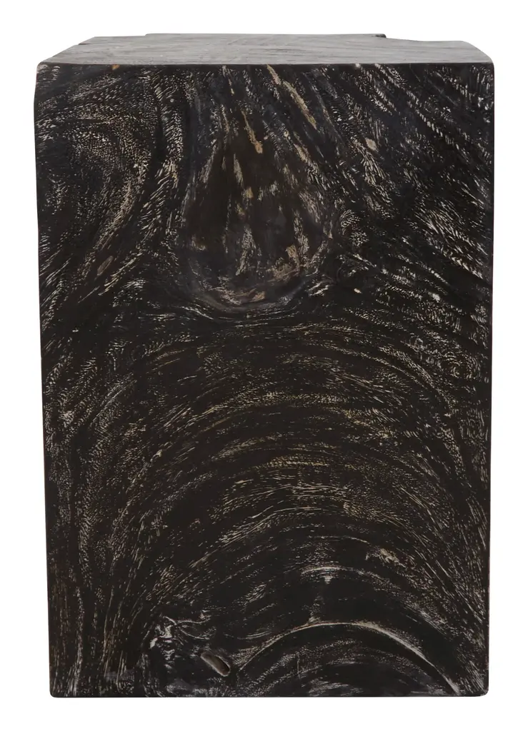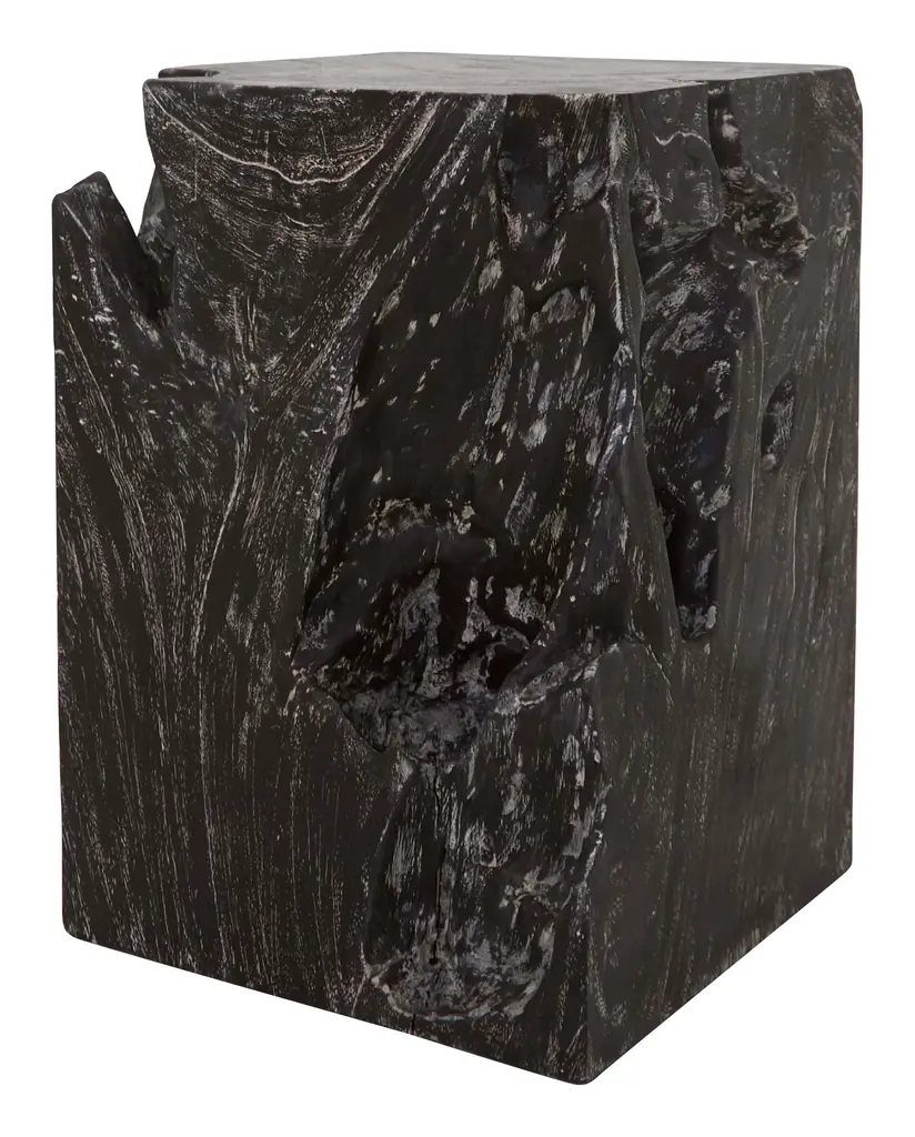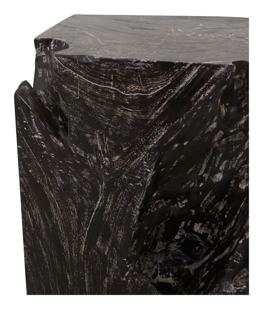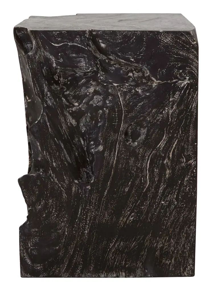 Earthy yet chic, our Cerused Stump Table comes to us from Indonesia, where it was crafted from suar wood — a sustainable hardwood that’s made from a fast-growing subspecies of rain tree. Rather than being left to rot, the stumps of harvested trees are carefully excavated in a painstaking process that pays off in the form of this one-of-a-kind end table. The top and portions of the sides are sanded and polished to a smooth finish while other parts are left untouched, making each one completely unique with organic cracks, knots and splits. A black cerused finish highlights its beautiful graining while also adding a bit of a modern feel. Right at home in almost any space, we love our Cerused Stump Table nestled next to a favorite armchair for a side table with a natural touch. •suar wood •black cerused finish•organic details vary widely •small natural cracks, splits and other imperfections are to be expected•handcrafted in indonesia•each is unique Dimensions: •approximately 12"W x 12"D x 17"H Each of our Cerused Stump Tables is completely unique and variations should be expected. Please make a note at checkout or send us an email if you would like to receive photos of available options. If we don’t hear from you, we will choose one for you from our selection.