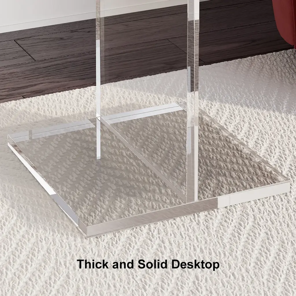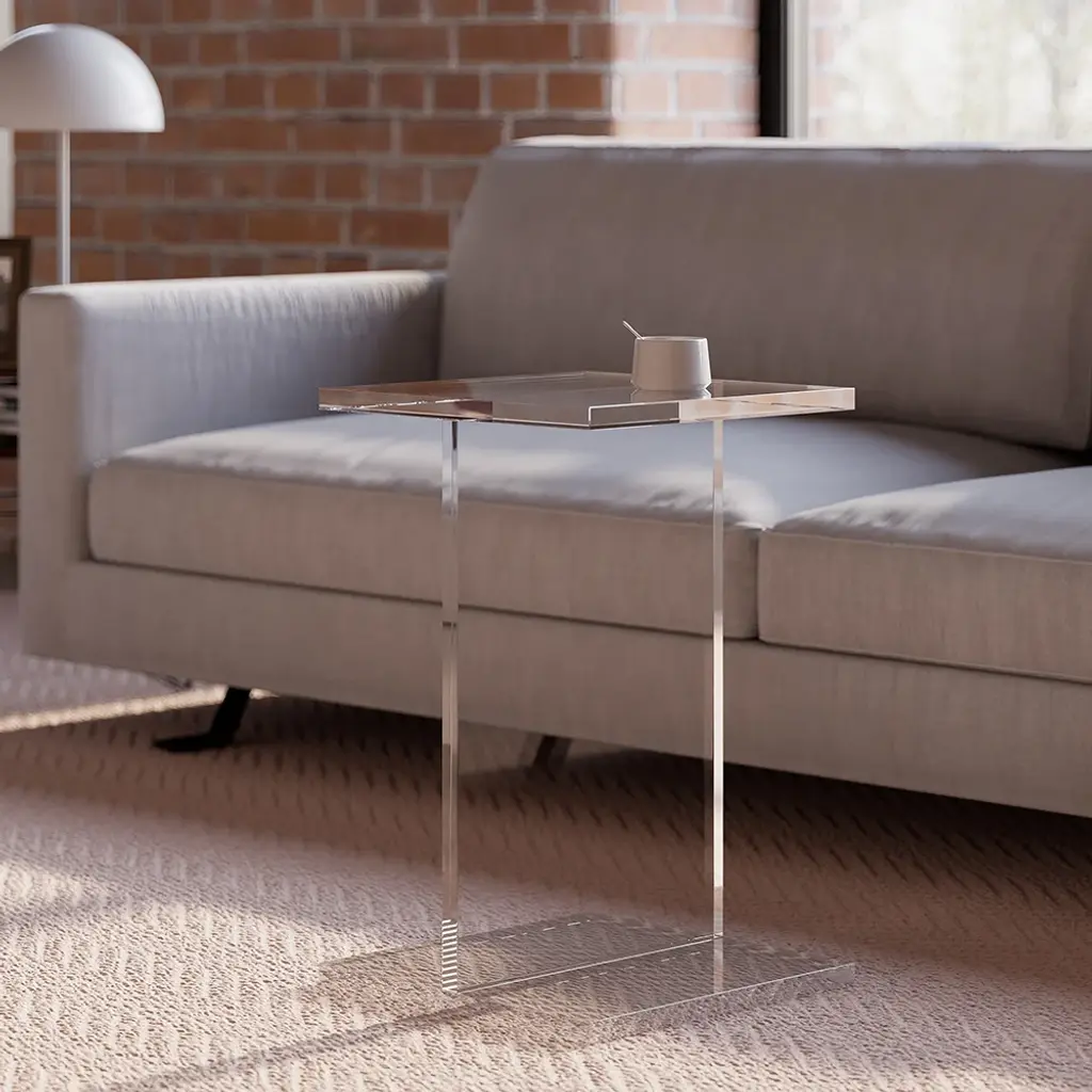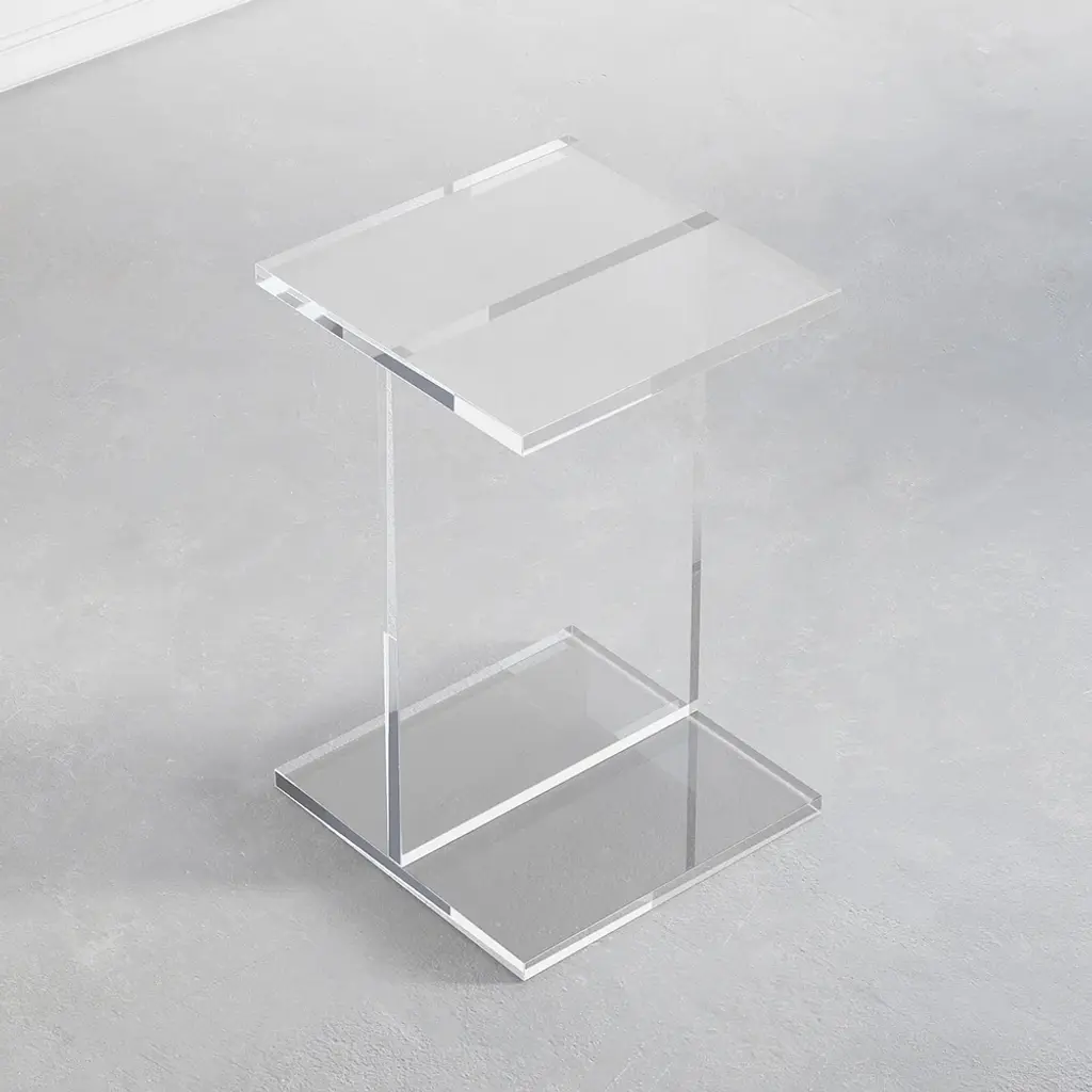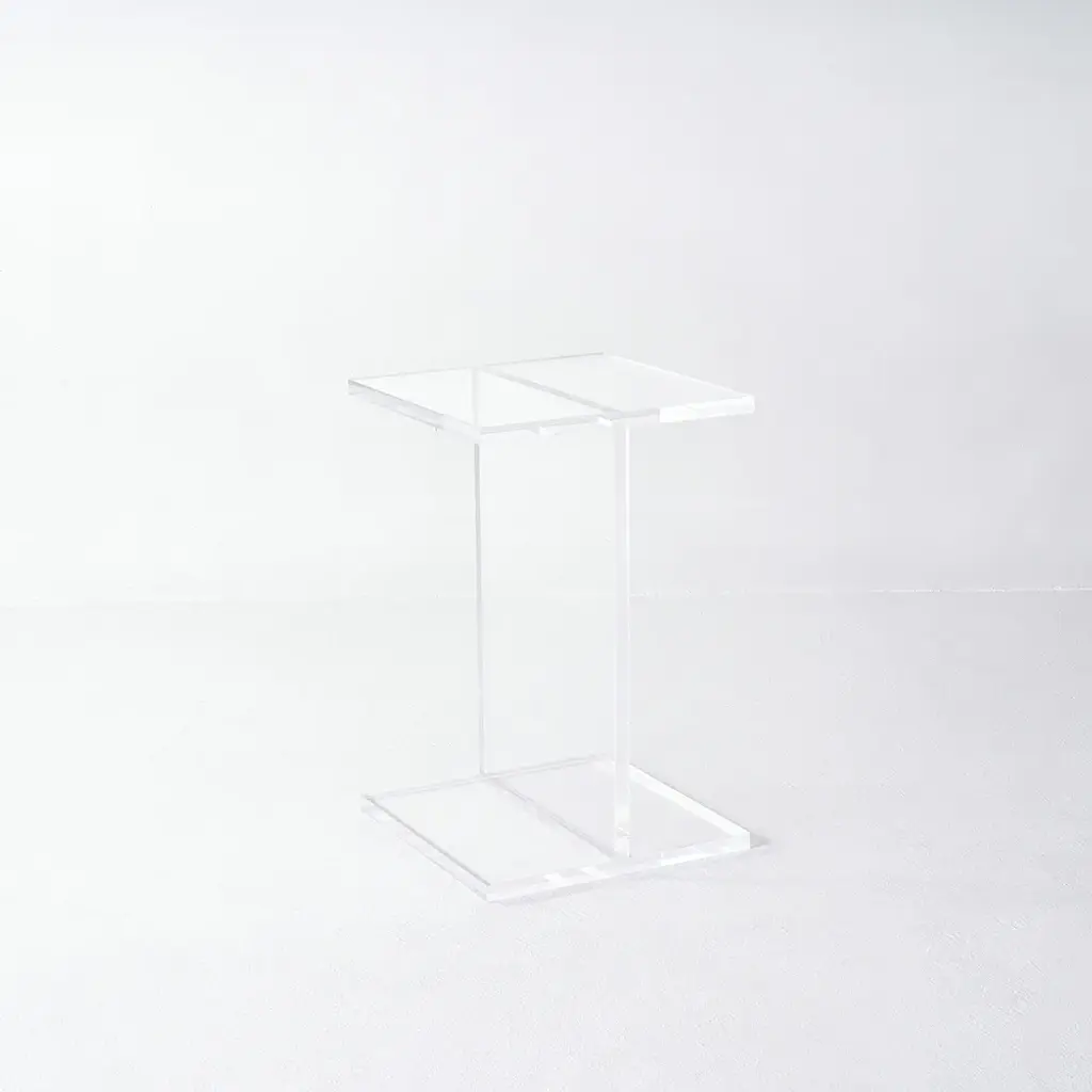 This transparent acrylic snack table makes it easy to offer snacks to family and friends in any room of your house. Modern flair meets durability with this snack table's use of high-quality, long-lasting acrylic. Combining a formal couch with a transparent acrylic side table, in line with today's eclectic design trend, results in an eye-catching space. Additionally, the clear color of the table is a stand-alone luxurious side table. Inspired by the industrial I beam, this clear acrylic I beam table has an advance and modern contemporary aesthetic effect.