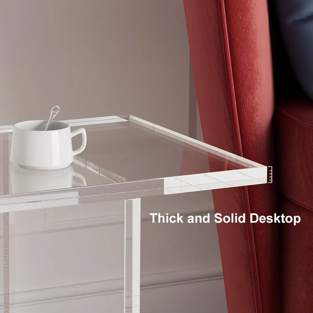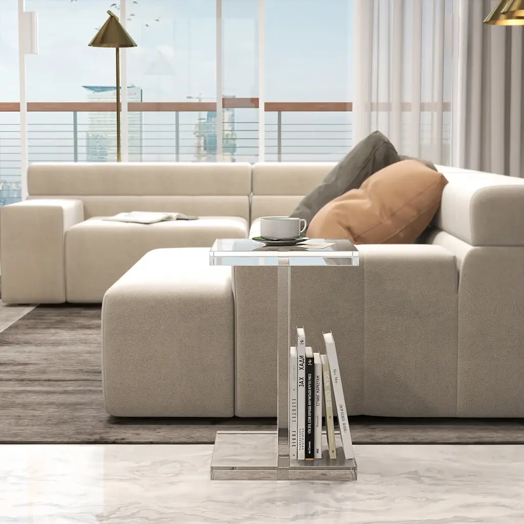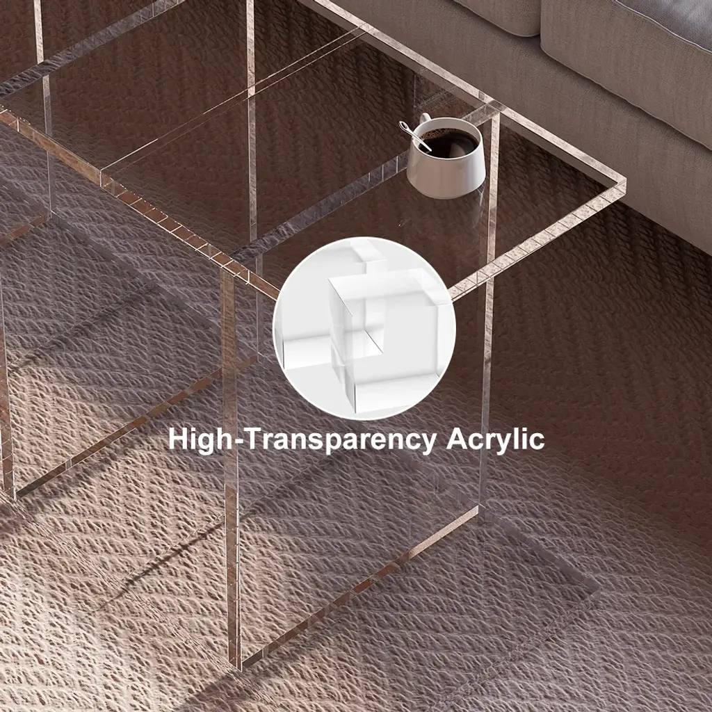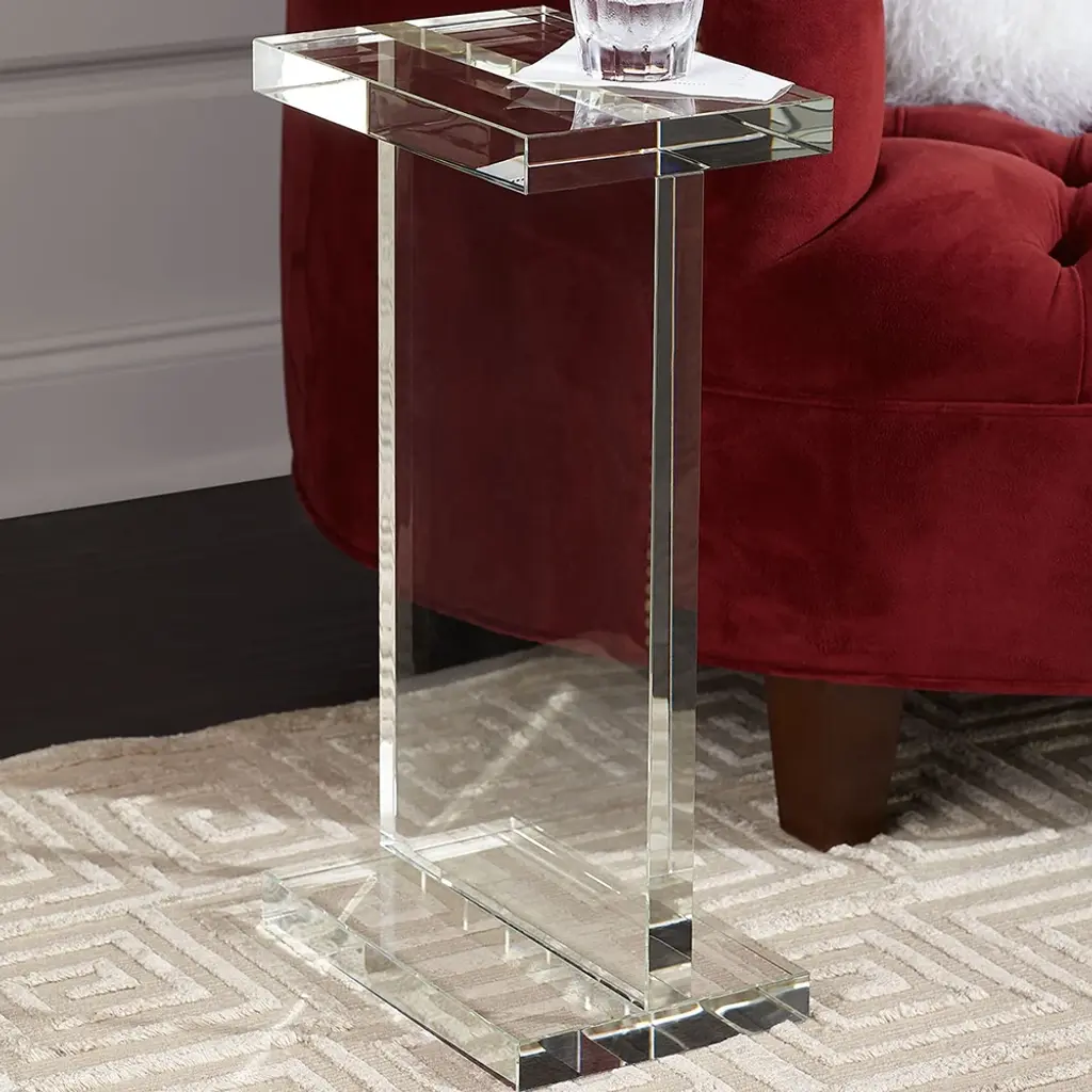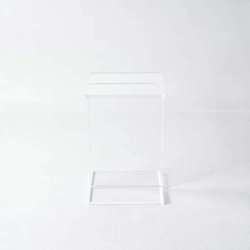 This transparent acrylic snack table makes it easy to offer snacks to family and friends in any room of your house. Modern flair meets durability with this snack table's use of high-quality, long-lasting acrylic. Combining a formal couch with a transparent acrylic side table, in line with today's eclectic design trend, results in an eye-catching space. Additionally, the clear color of the table is a stand-alone luxurious side table. Inspired by the industrial I beam, this clear acrylic I beam table has an advance and modern contemporary aesthetic effect.