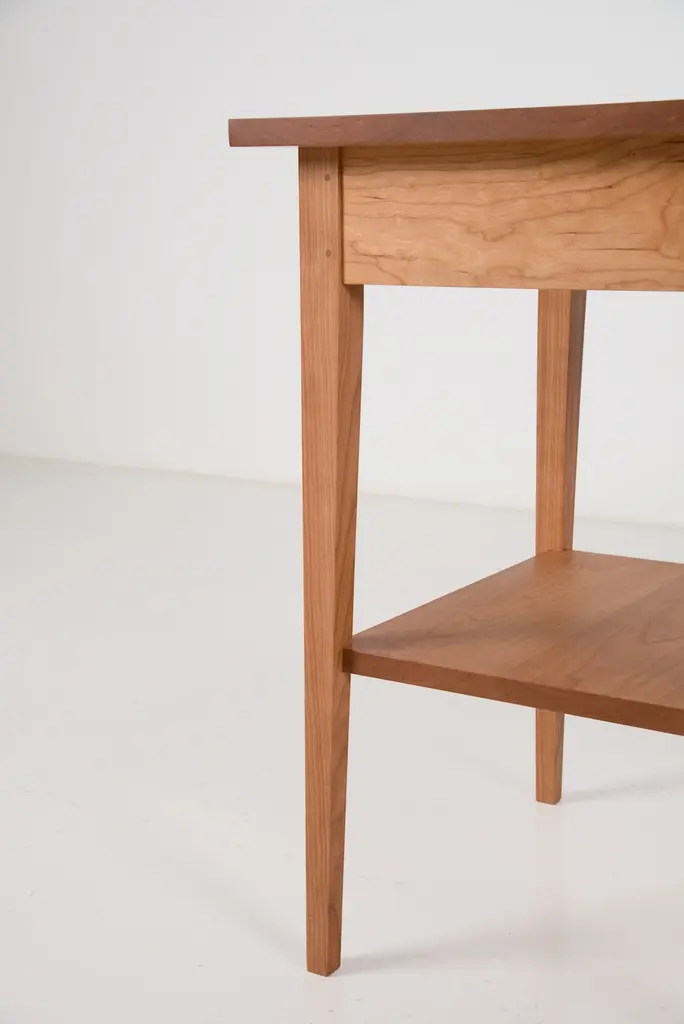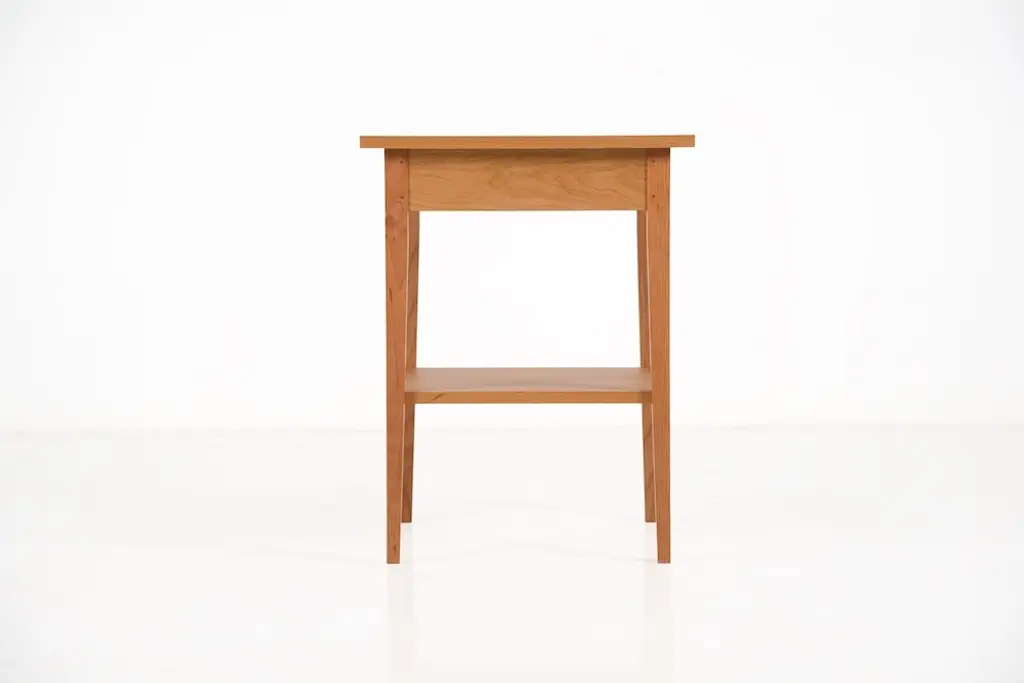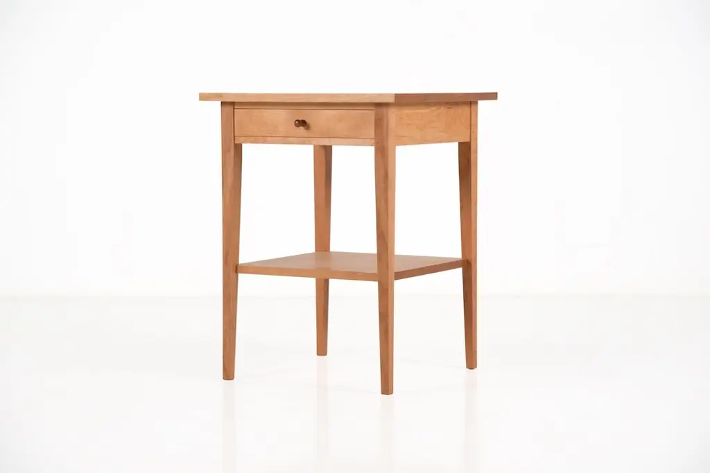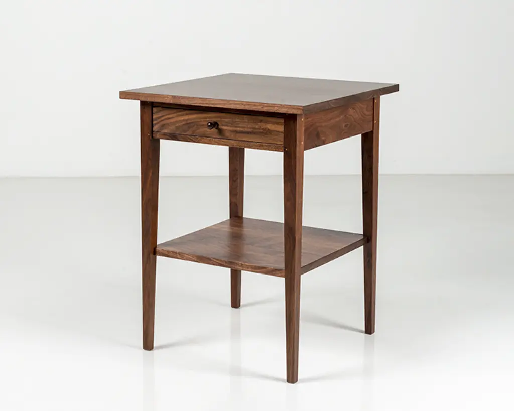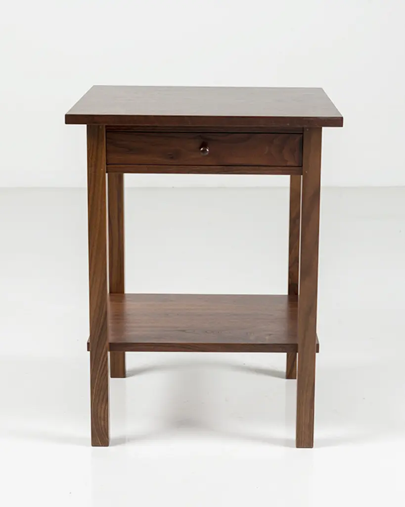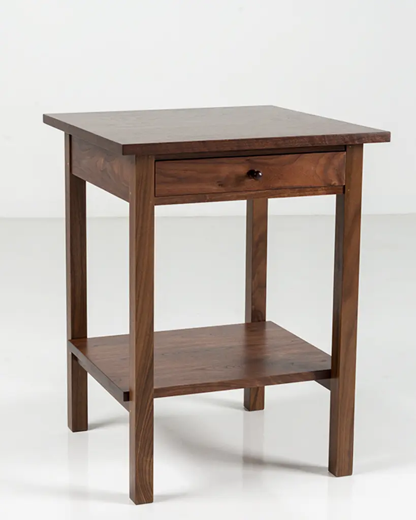 The Square End Table is rooted in the Shaker tradition of creating simple, unadorned pieces that are in harmony with the material. Here, the table is offered with a drawer, which slides effortlessly underneath the tabletop. The table’s four tapered legs define its footprint and integrate with traditional joinery as they meet the tabletop.
