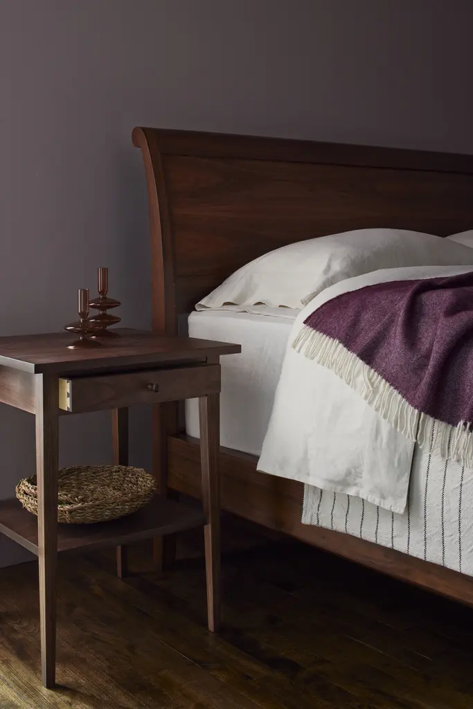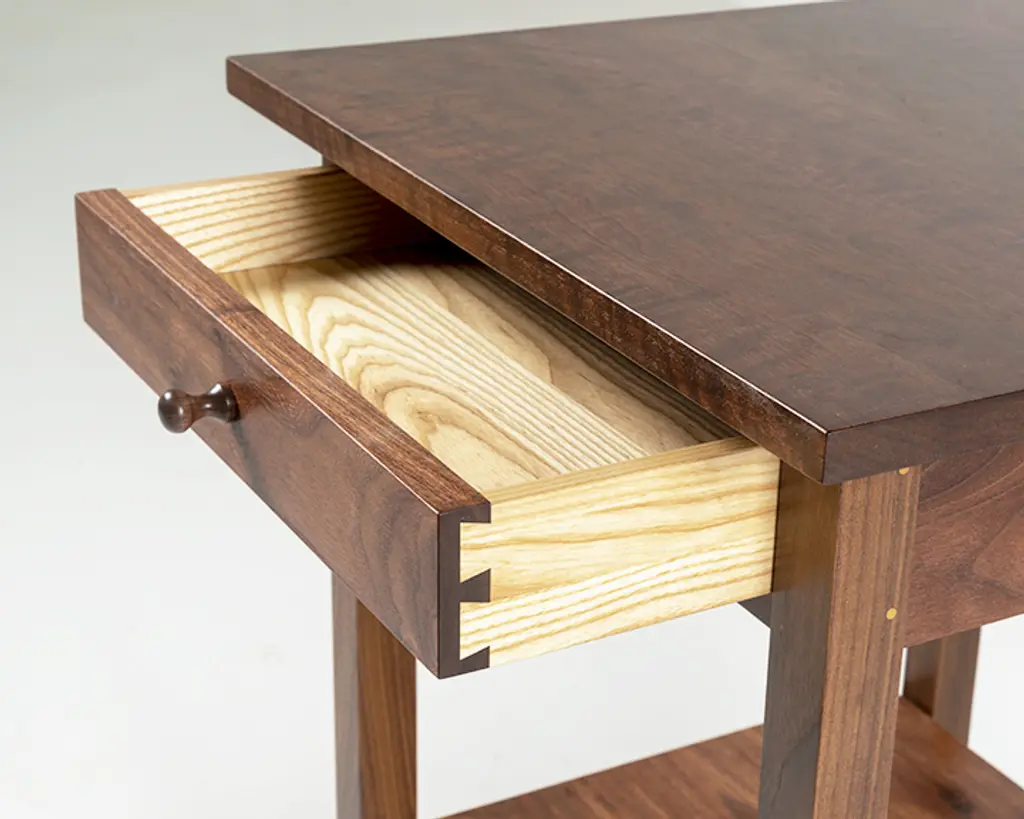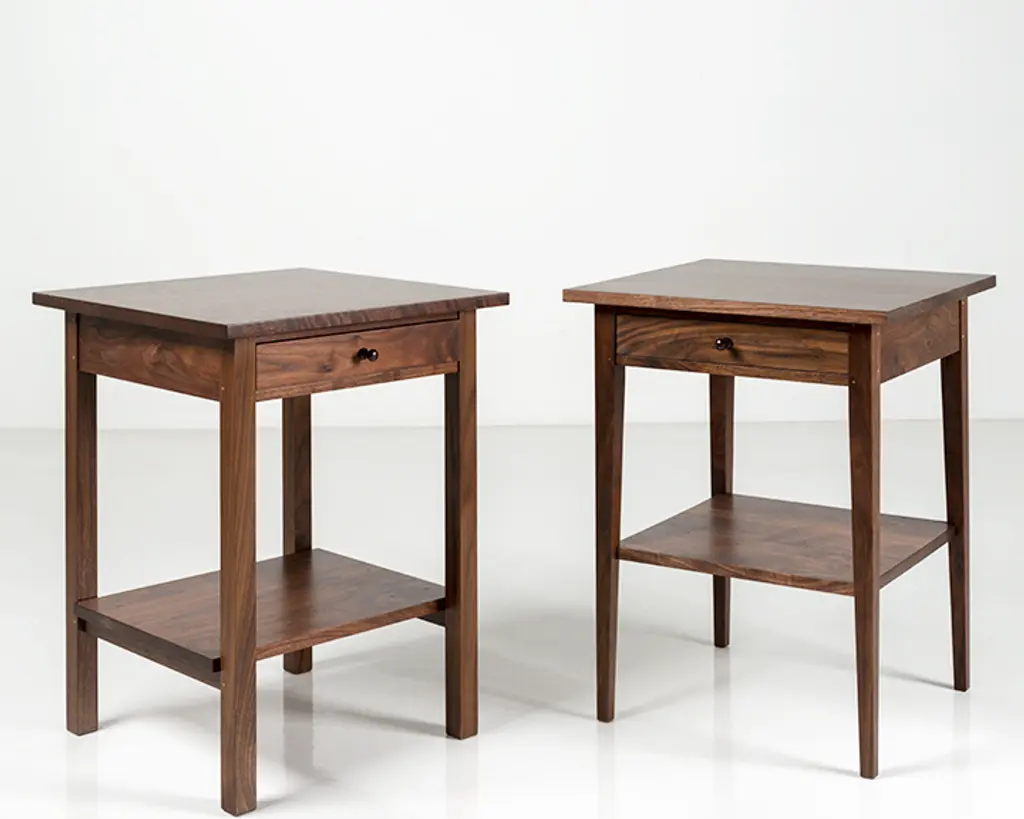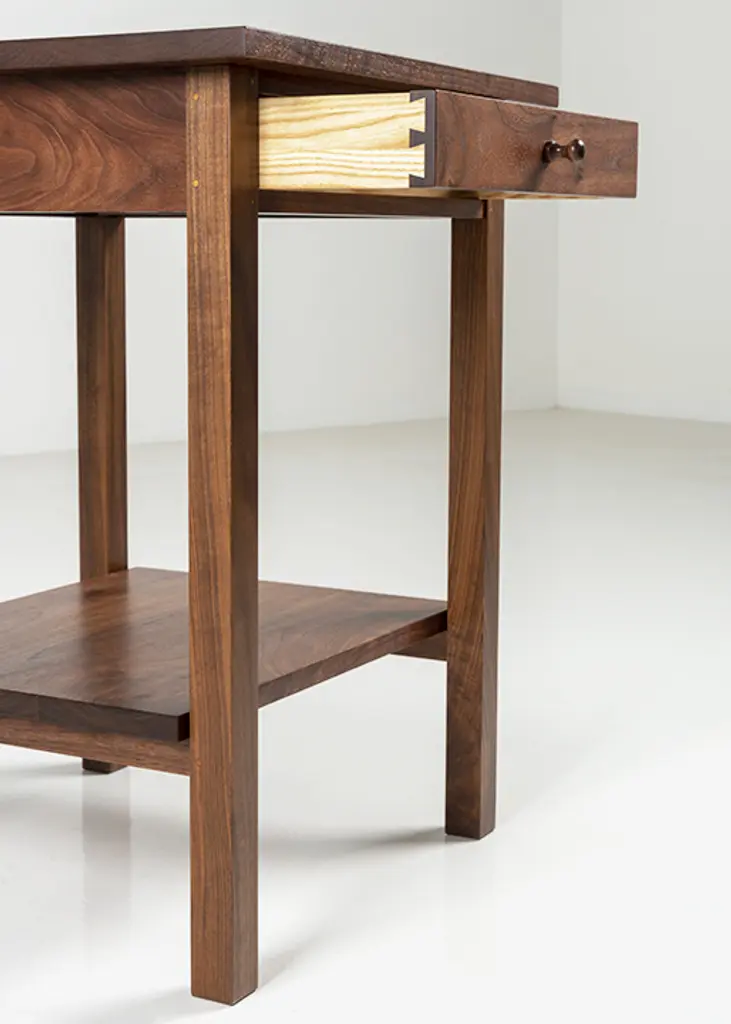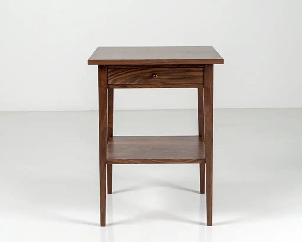 The Square End Table is rooted in the Shaker tradition of creating simple, unadorned pieces that are in harmony with the material. Here, the table is offered with a drawer, which slides effortlessly underneath the tabletop. The table’s four tapered legs define its footprint and integrate with traditional joinery as they meet the tabletop.