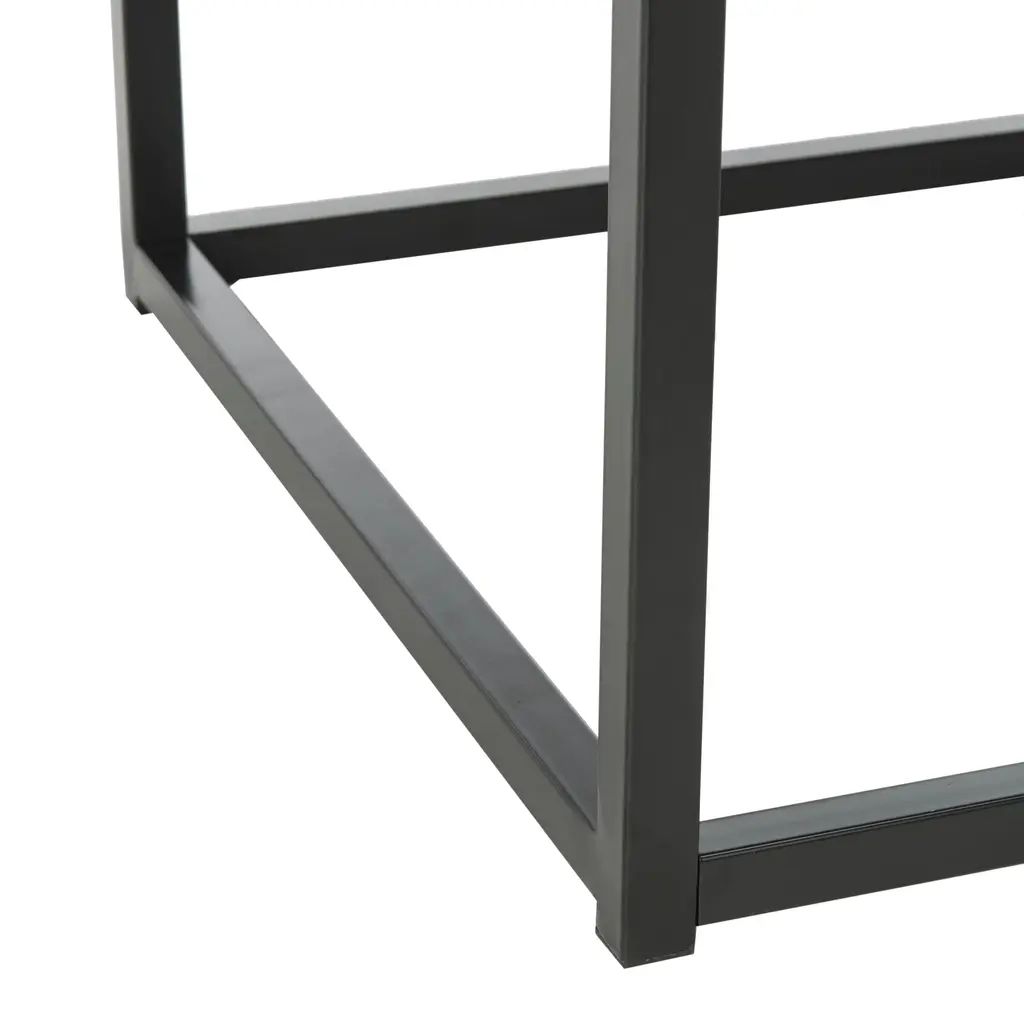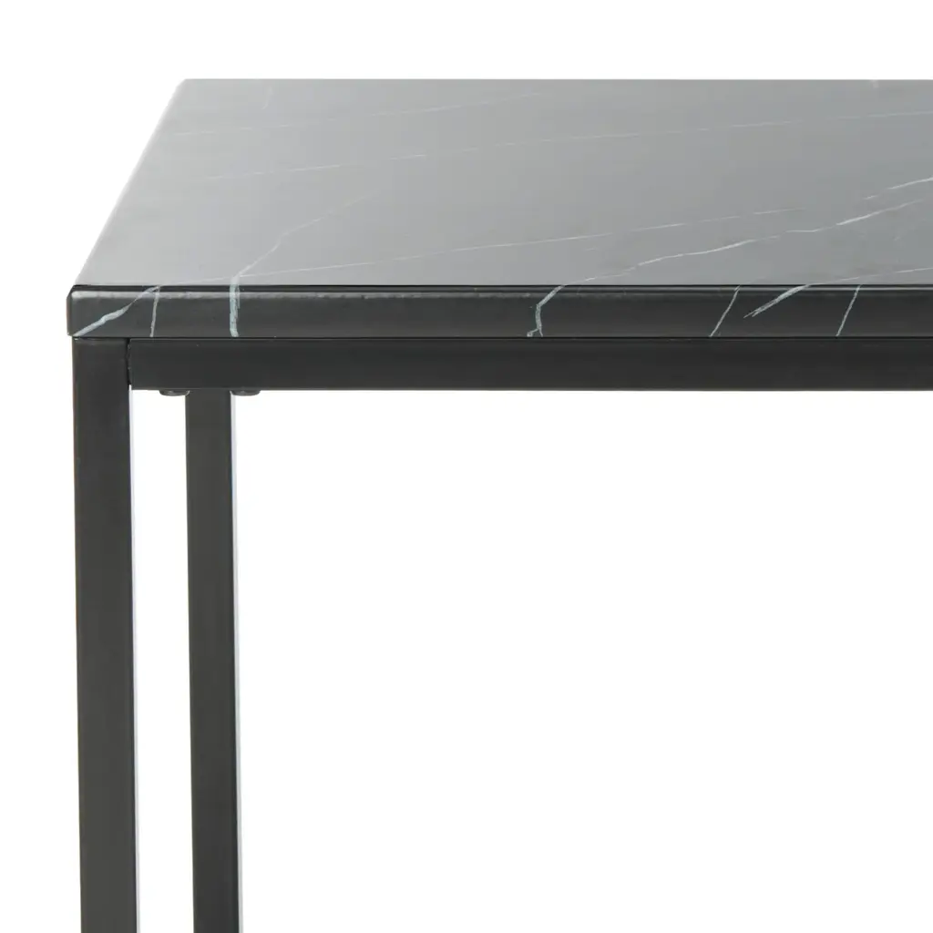 The newly opened boutique hotel on Greece’s most popular island inspired this contemporary end table. it's smooth black faux marble top brings classic style to it's modern geometric frame. Ideal in any living room, designers love to use them in pairs. Wipe spills immediately. Maintain with regular dusting and clean with mild soap and water, dry thoroughly and do not use a brass cleaner. Some assembly required.