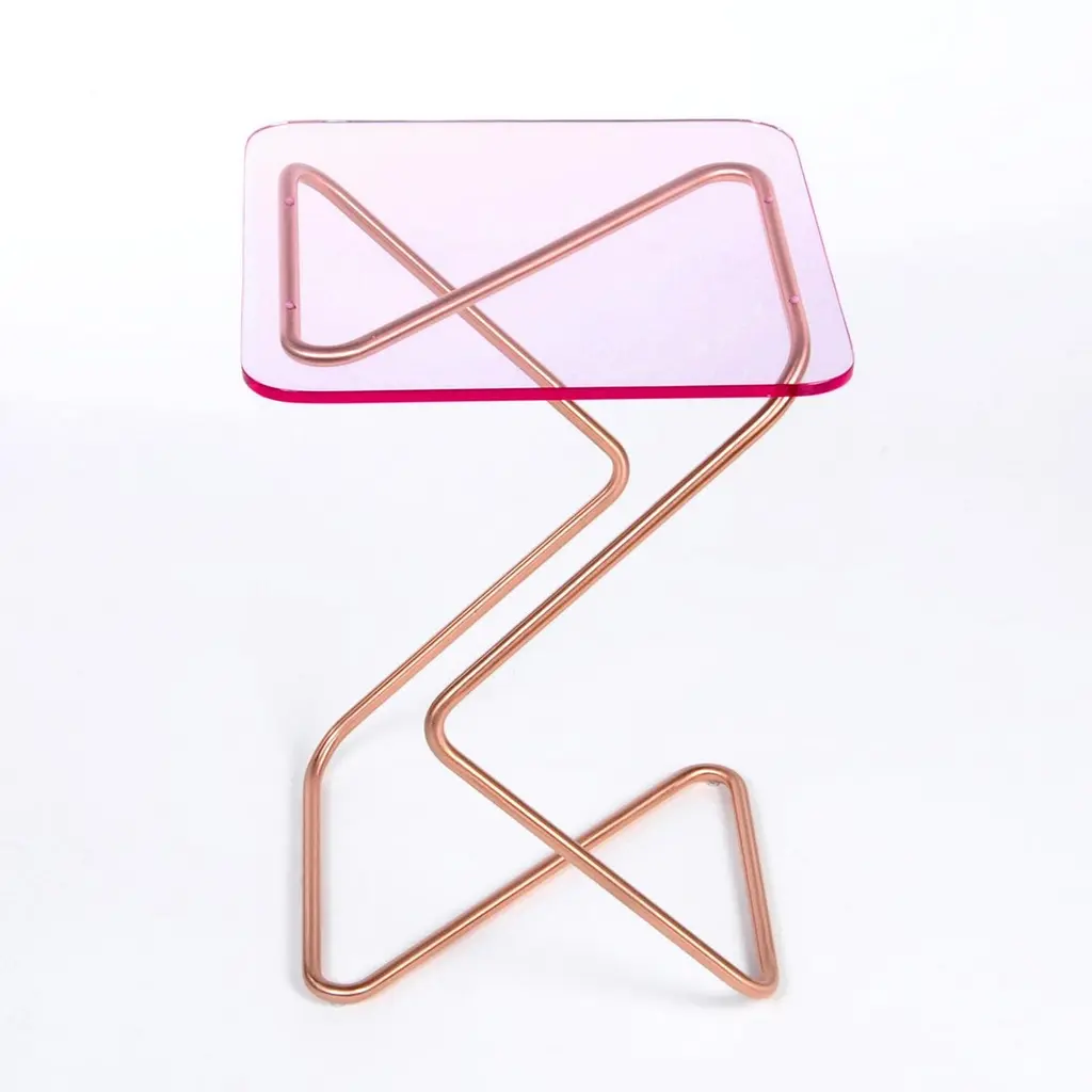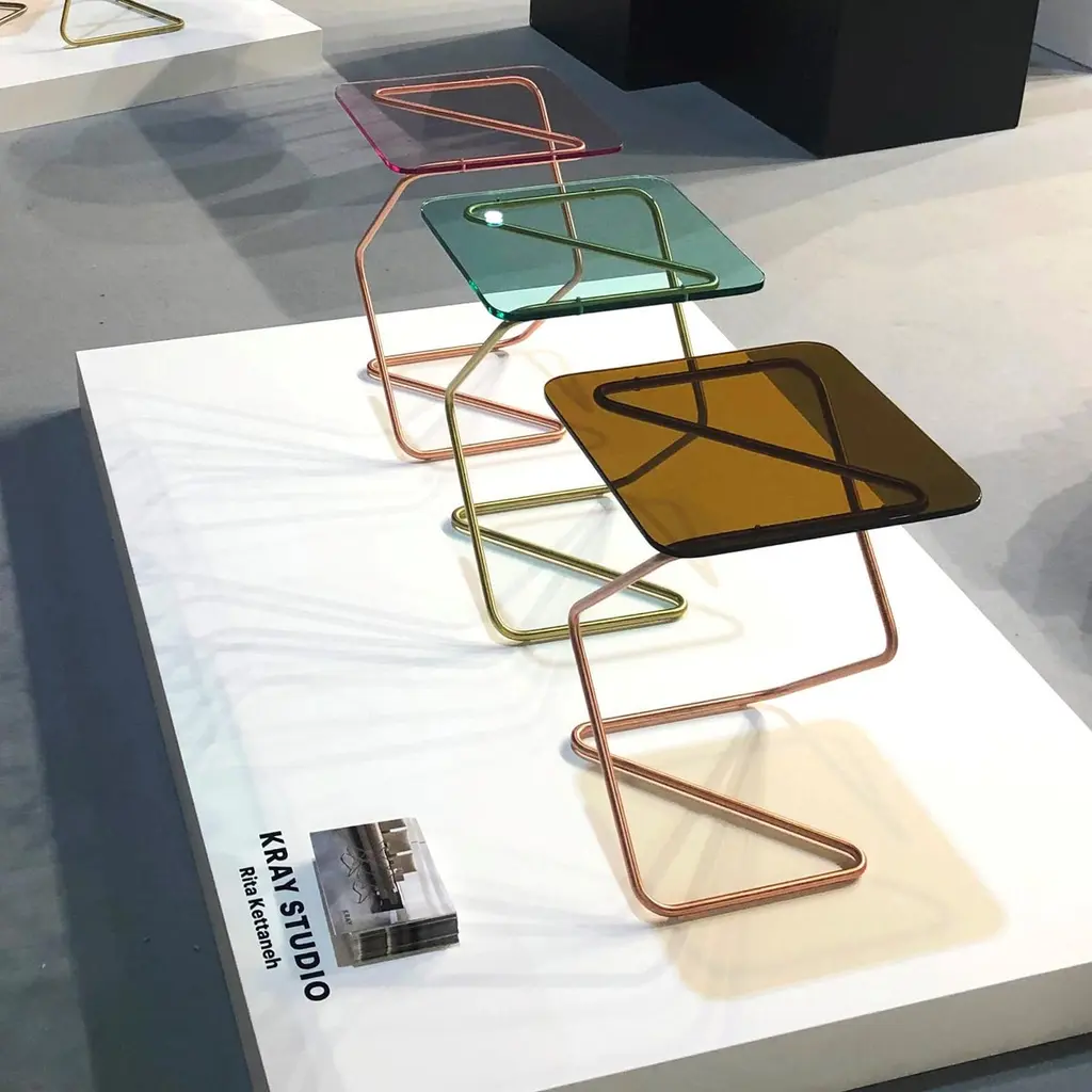 The square side table by Rita Kettaneh Dimensions: The base: brushed stainless steel-plated with brass optionally plated with copper or brass The top: acrylicMaterials: H 46 x W 33 x D 33 cmWeight: 3.75 KgColors and finishes:Stainless finish: Burnt orange, maya blue, cherry red, navyCopper finish: Light pink, brownBrass finish: Mint greenThe crystal tables are proudly produced in Lebanon by combining top notch industrial methodswith authentic craftsmanship. The result is high quality products that capture the delicateness ofthe human touchThe square is one of the side tables in the award-winning crystal tables collection designed by RitaKettaneh. Inspired by the crystal's transparency, purity, and geometry, the square has a geometric identitywhich influences its entire shape and various Silhouettes.Rita Kettaneh designs furniture that is unique, playful and meaningful. She seeks to make the experience of owning furniture an inspiring one where pieces evoke an emotion within their users. With an engineeringfoundation, an entrepreneurial specialization, and experience in marketing and design, she brings in amultitude of perspectives when designing her products. Rita won the A’ Design Award for The Crystal Tables and has participated in exhibitions in Como, Beirut, Dubai, and Berlin.KRAY Studio is an emerging furniture brand that seeks to make the experience of owning furniture more meaningful and beautiful. Our vision is for you to connect with the pieces of furniture so your home starts resonating with you and becomes a space of discovery and restored vitality. We introduce a new kind of luxury, that is socially aware, spatially smart, all the while being fresh and contemporary. Designed by Rita Kettaneh, our high end pieces are produced by collaborating with local fabricators and craftsmen to preserve the authenticity of the craft and the delicateness of the human touch.