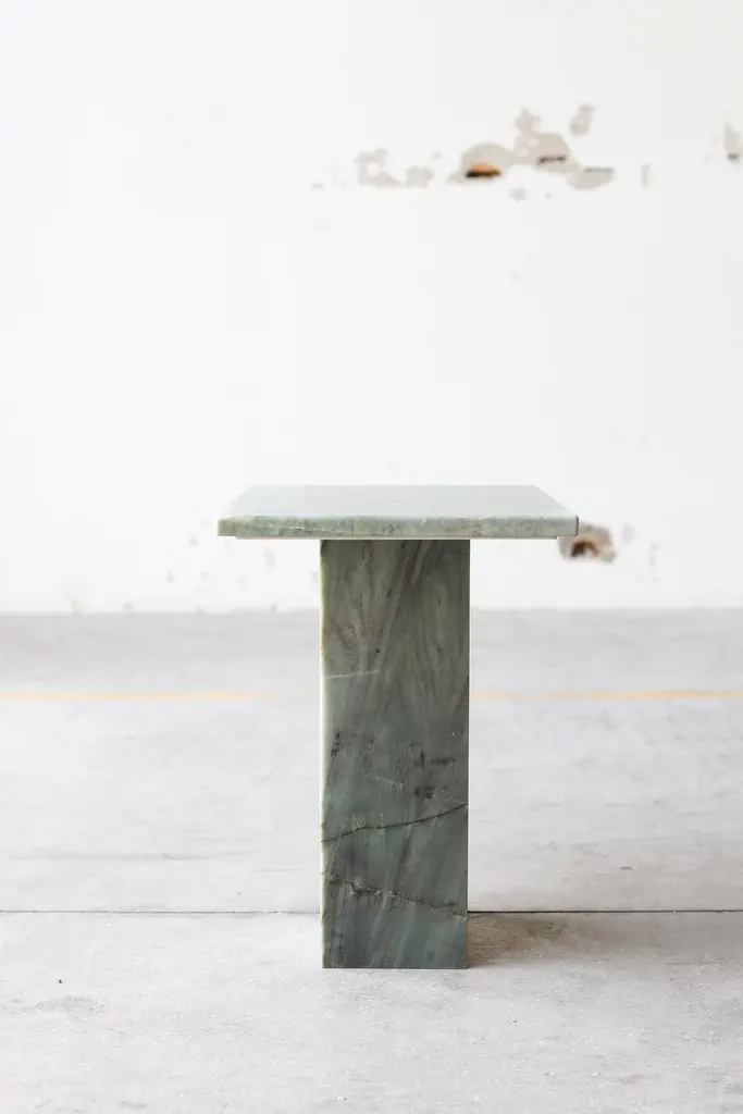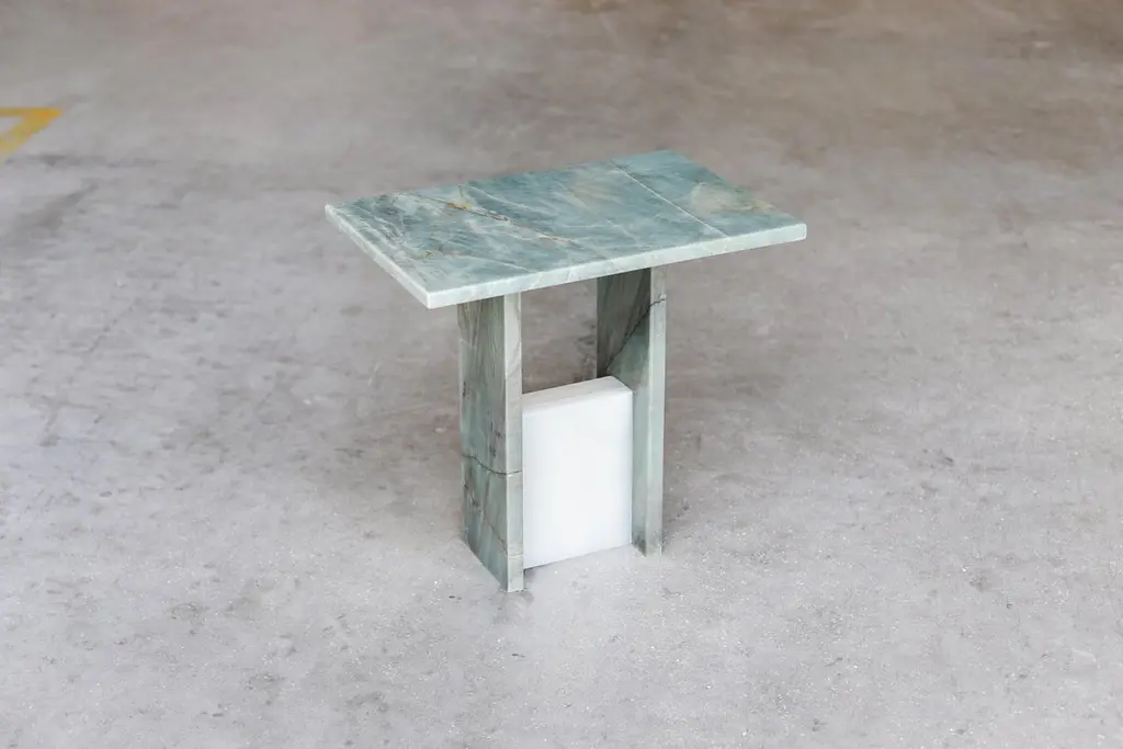 SST016-3 side table by Stone StackersLimited Edition of 5 products.Dimensions: W 47 x D 35 x H 45 cm.Materials: Marble structure: Emerald Quartzite, Marble base: Onyx white.Weight: 26 kg.This side table is part of a set of two pieces. It combines sleek lines and sculptural marble stone elegantly juxtaposed to the likewise-fashioned top and side marble offcuts. A functional sculpture playing with geometry, balance, and nature to elevate the look of any contemporary living space.The Stone Stackers brand is deeply classic and highly contemporary. The idea of reclaiming and re-purposing discarded marble into works of practical art is at the forefront of a global movement that champions conscious provenance and sustainability in design.The act of intelligently re-imagining the off-cuts of once ancient stone – by-products of the unsustainable quarry of marble from Italian mountains – and creating ultra modern pieces designed to last a lifetime is both an act of entrepreneurial creativity and altruistic environmentalism.The duality of old and new – of creating something from nothing – is further reflected in the real-world union of the founders, Paolo Ciacci and Shilpa Srinivas, along with their partner Simeg Marmi. Their individual experiences and common vision have given birth not only to a new enterprise, but an original interpretation of the eternal value and beauty of stone.