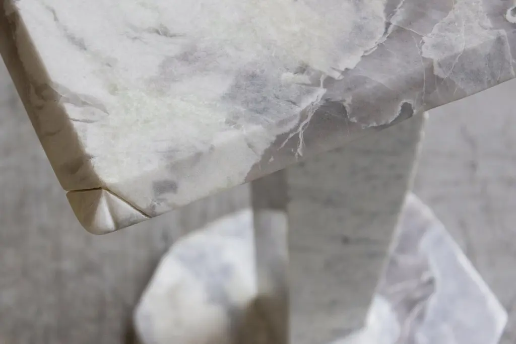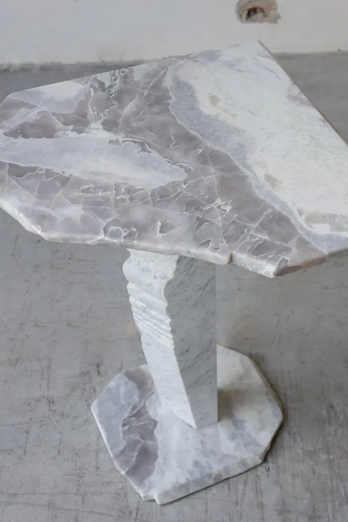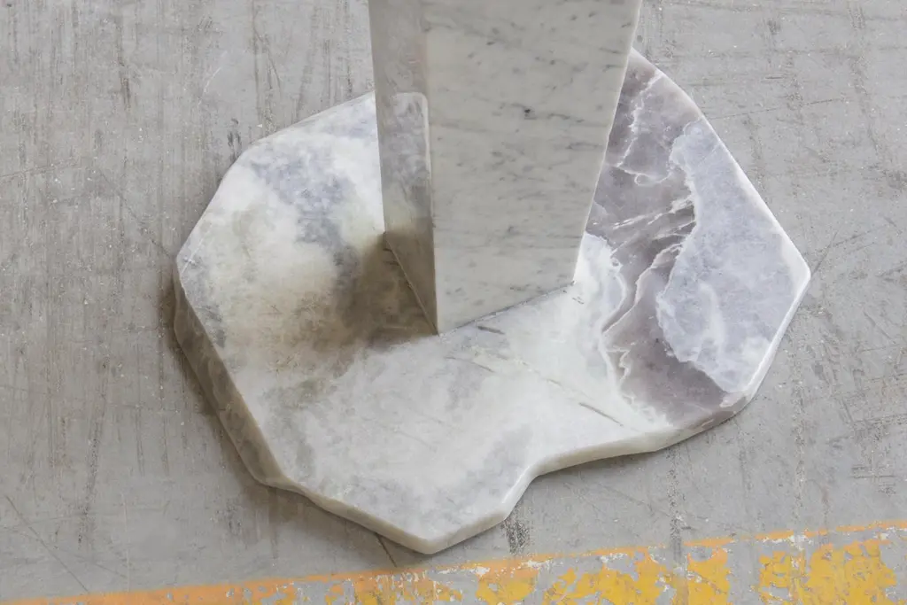 SST021 side table by Stone StackersDimensions: D 56.5 x W 55 x H 69.5 cmMaterials: Carrara marble, Dover White marble.Marble Structure: CarraraMarble Base: Dover WhiteWeight: 35 kgThis side table features two main Dover White marble slabs supported by a solid rugged Carrara marble leg. Both top and base are irregurarly shaped by the previous production life.The Stone Stackers brand is deeply classic and highly contemporary. The idea of reclaiming and re-purposing discarded marble into works of practical art is at the forefront of a global movement that champions conscious provenance and sustainability in design.The act of intelligently re-imagining the off-cuts of once ancient stone – by-products of the unsustainable quarry of marble from Italian mountains – and creating ultra modern pieces designed to last a lifetime is both an act of entrepreneurial creativity and altruistic environmentalism.The duality of old and new – of creating something from nothing – is further reflected in the real-world union of the founders, Paolo Ciacci and Shilpa Srinivas, along with their partner Simeg Marmi. Their individual experiences and common vision have given birth not only to a new enterprise, but an original interpretation of the eternal value and beauty of stone.