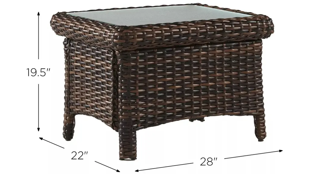 Timeless appeal meets a clean, modern aesthetic in the St Tropez Tob Outdoor End Table. The perfectly proportioned Saint Tropez Collection features rustproof aluminum framing. Mold and mildew resistant cushion cores are layered, high-density poly fiber and dry conjugate blend. Each seat has an independent suspension. Crafted with high-density polyethylene synthetic wicker,handwoven over fully-welded powder-coated aluminum framing.