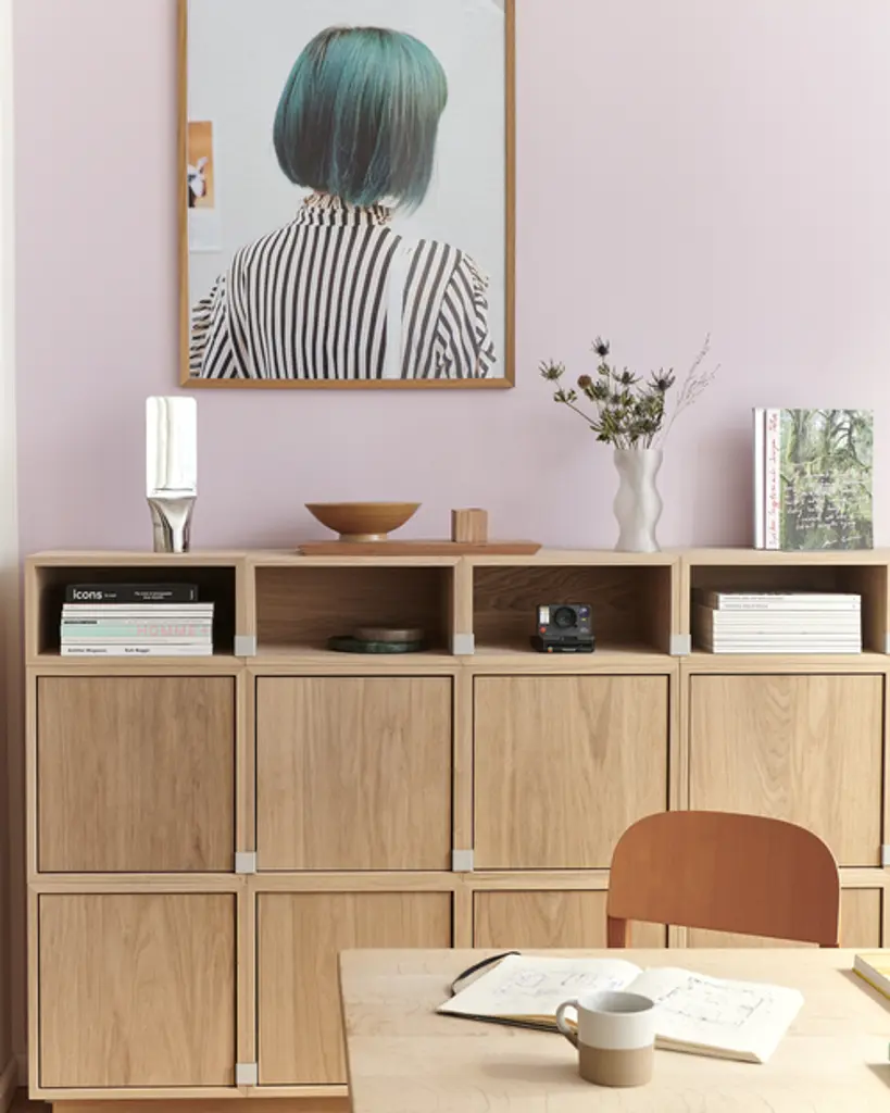 Being both versatile and functional, the Stacked Storage System can be arranged and rearranged for the exact configuration that you’d like, whether it be as shelving setups, sideboards, bookcases, or side tables. The design can easily be refreshed by playing around with the space between the modules or mounting the modules with a backboard directly onto the wall. Use Modules with a Door for protective storage.
