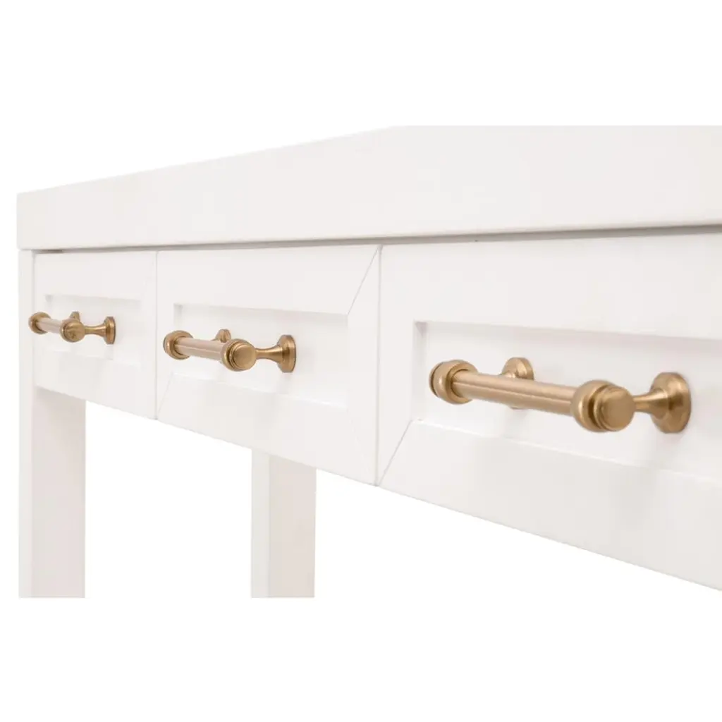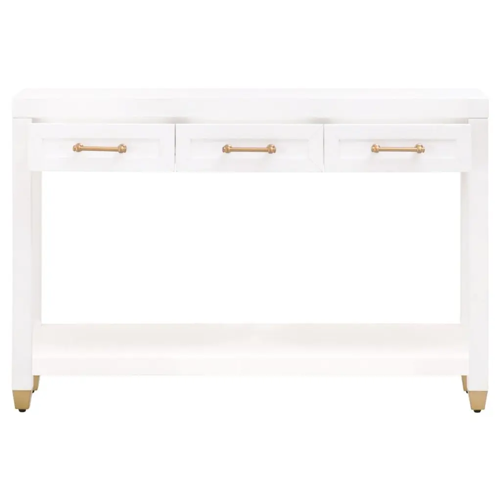 Stacy Modern Classic Matte White Wood Brass Steel Accent 3 Drawer Console Table