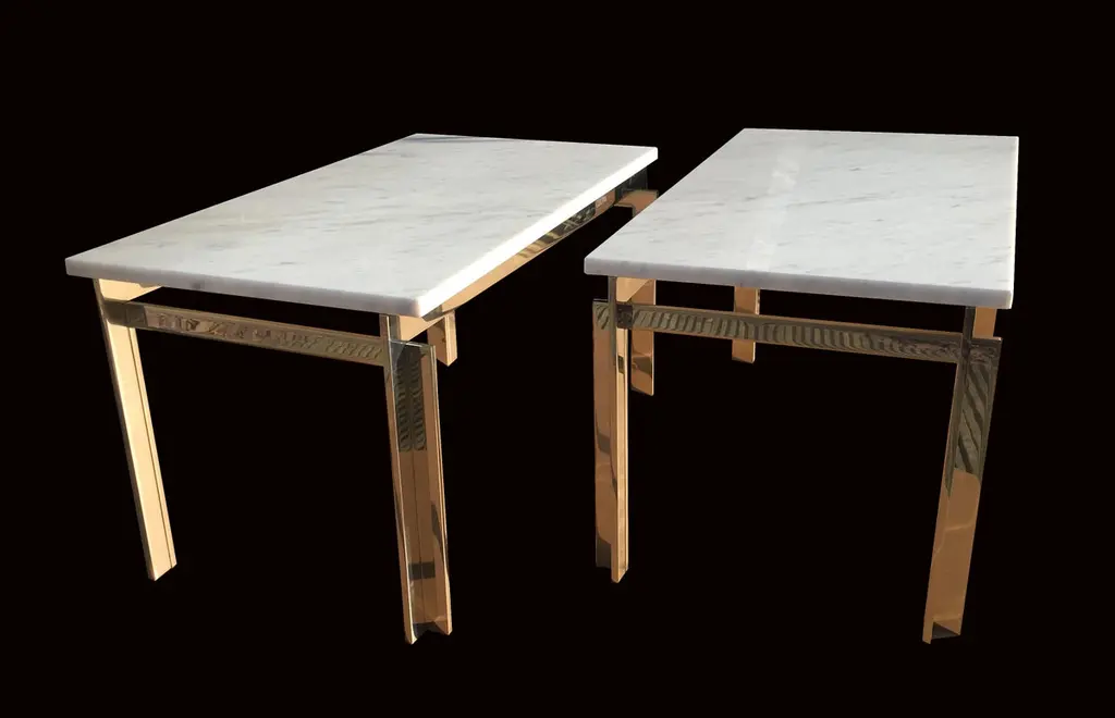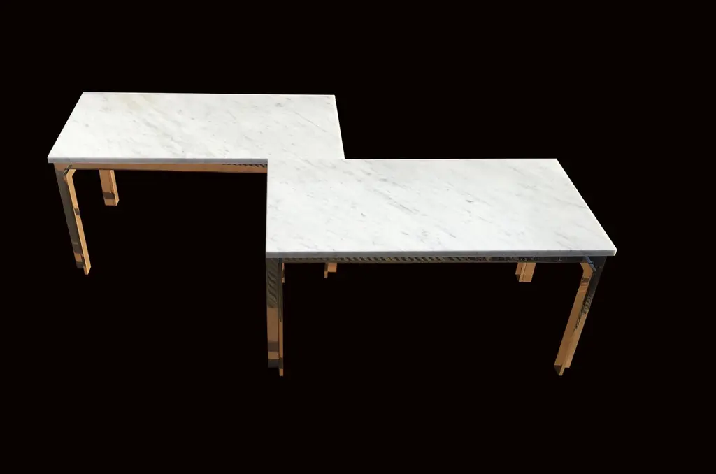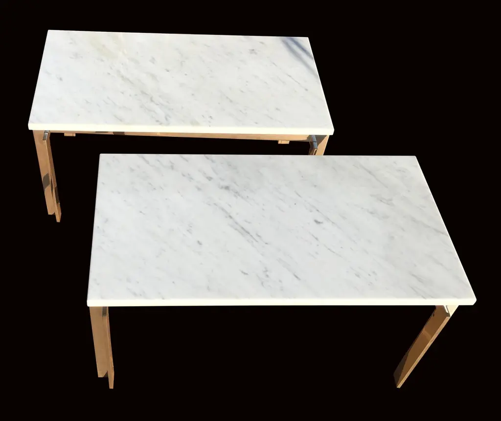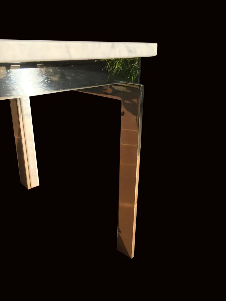 Stainless Steel And Carrara Marble Tables In The Style Of Poul Kjaerholm