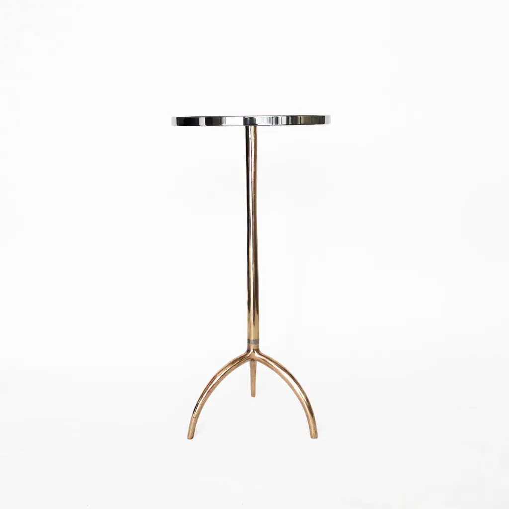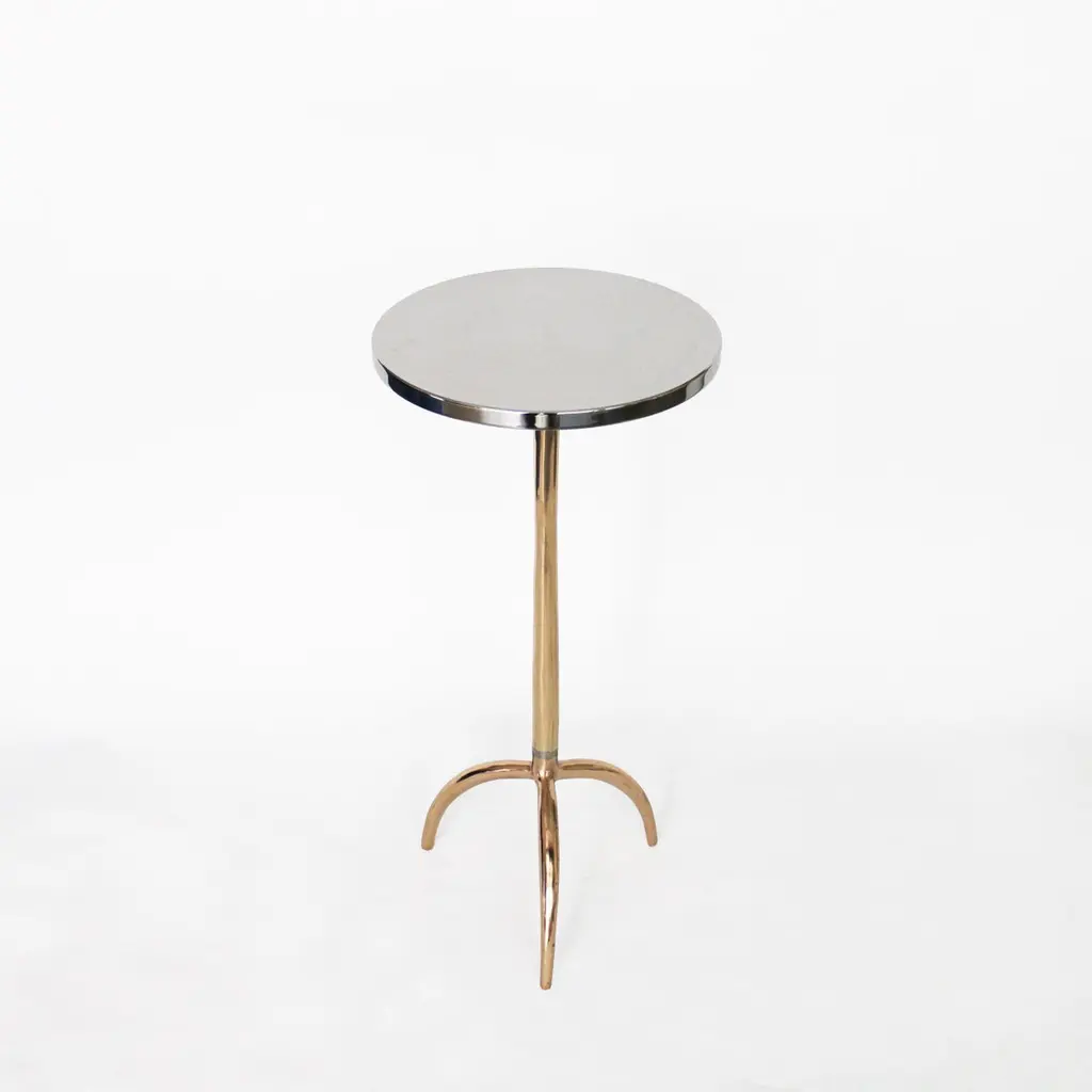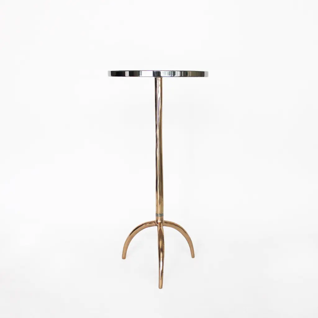Stainless Steel Colla Side Table III by Studio SuntDimensions: D 28 x H 59 cm. Materials: Bronze, Aluminum, Stainless Steel.Studio Sunt is an Istanbul-based design studio that renews traditions by applying fine craftsmanship to contemporary design with the experience of casting since 1965 and the wisdom it brings. Sunt creates something enthusiastic with a sense of refinement that merges abstraction and life forms and is inspired by different geographies, cultures, individuals, and experiences. Sunt works with a network of talented craftsmen who help raw materials reach their full potential, guide the creative process, and create a unique vision using the best craftsmanship. With its infinite curiosity, Sunt explores the possibilities of producing versatile and elegant designs while being exclusively handcrafted by local artisans. Bronze, the brand's signature material, exudes the aura of nature and ideas of experience, growth, strength, and security. It is most prominently associated with strength, stability, and support. Sunt's design philosophy aims at sustainability by creating lighting and furniture that will last for their exceptional quality and timeless appearance. The result is a contemporary collection piece that conjures up the refined art of centuries-old craftsmanship.