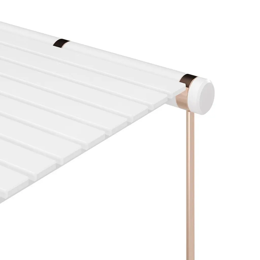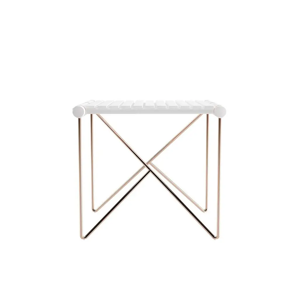 Noa Side Table BigDesigned with lightweight, weather-resistant stainless steel, the Noa side table embodies durability and modern elegance. Its tabletop, resistant to scratches, heat, and stains, maintains its flawless appearance year after year. Compact yet versatile, it’s the ideal solution for effortless outdoor living, ready to adapt to every moment with style and grace.The whole design of this sophisticated outdoor side table was developed according to the following structure: -Top: White matte lacquered aluminum and stainless steel;-Legs: Copper plated stainless steel;-Details: Copper-plated stainless steel.All Myface materials are from premium suppliers, engineered to offer the best performance possible outdoors.Water, Mold, Mildew, UV, and Fading resistance are some of the characteristics that you can expect from both materials, which are available in a wide array of colors and patterns.Noa, contemporary outdoor side table bigSome of the customization options for your Noa side table big: Chocolate Brown, Gold lacquer, Myface Blue, Copper Brushed, Black Nickel, Gold Plated, and Gold Brushed.The Noa side table big is a harmonious combination between functionality and a sophisticated design. The elegant copper legs are the support for the beautiful white lacquered aluminum top, resulting in a very functional yet elegant outdoor set.
