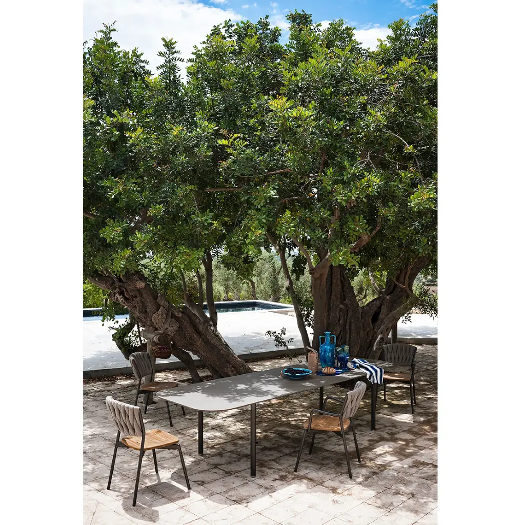 In PIPER extendable table, the simplicity of the design is balanced by the materials used: stainless steel, available in smoke, milk or rust colors, for the structure and Lapitec® for the top. This innovative full-body sintered stone combines an aesthetic value with very high physical and mechanical properties: the potential of technical porcelain meets the consistency and elegance of the natural stone. RODA chose the mole color variant for the PIPER table, a transversal shade easy to match with the seats from the same collection or from other outdoor lines.