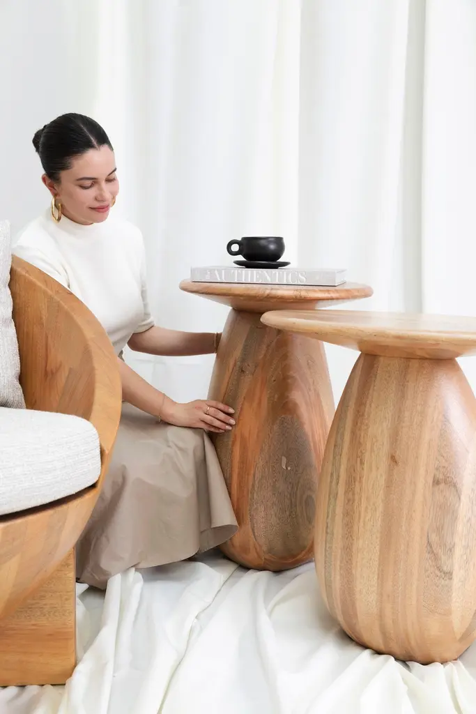 Stalgia Side Table by LaluzDimensions: W 46 x D 66 x H 67 cmMaterials: Bronze, Polyurethane, Guarango Wood.Weight: 33 kg.LaLuz Design is a young, dynamic company that specializes in the production of unique 3D-printed lampshades and lights. Its roots lie in a passion for exceptional design and cutting-edge technology. This enthusiasm drives the company to constantly develop new, innovative lighting solutions that combine the serial with the unique. Its vision is to create a work of art with each lamp that impresses with both its aesthetics and functionality. The company relies on the combination of precise 3D printing and high-quality craftsmanship. Each product is manufactured with the utmost care and dedication, ensuring that every lampshade is truly unique. Through rigorous quality controls, LaLuz Design ensures that its lights are not only stylish but also durable. At LaLuz Design, great importance is attached to sustainability, using renewable raw materials to create environmentally friendly products. The company’s goal is to offer innovative designer lights that impress with both their form and function. Thanks to its own production facility, LaLuz Design can respond flexibly to customer requests and guarantee fast delivery.