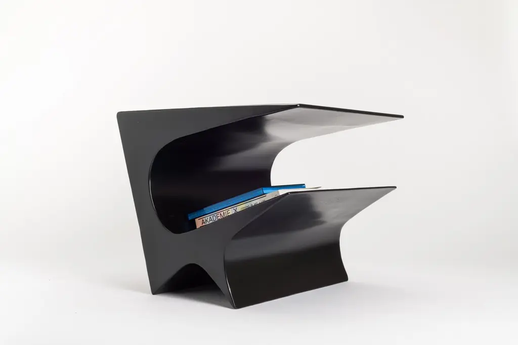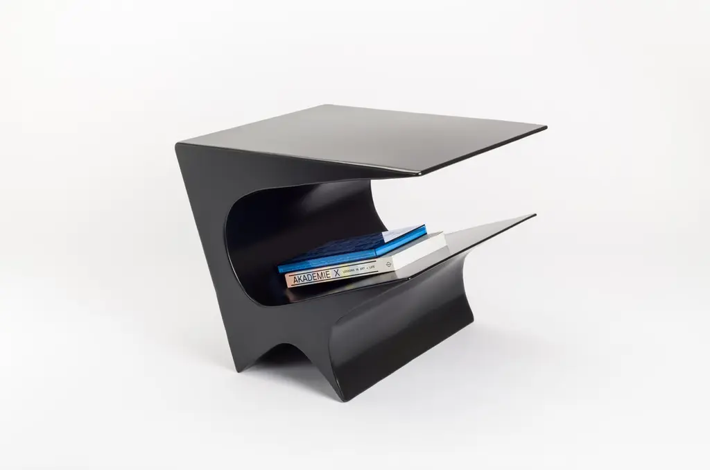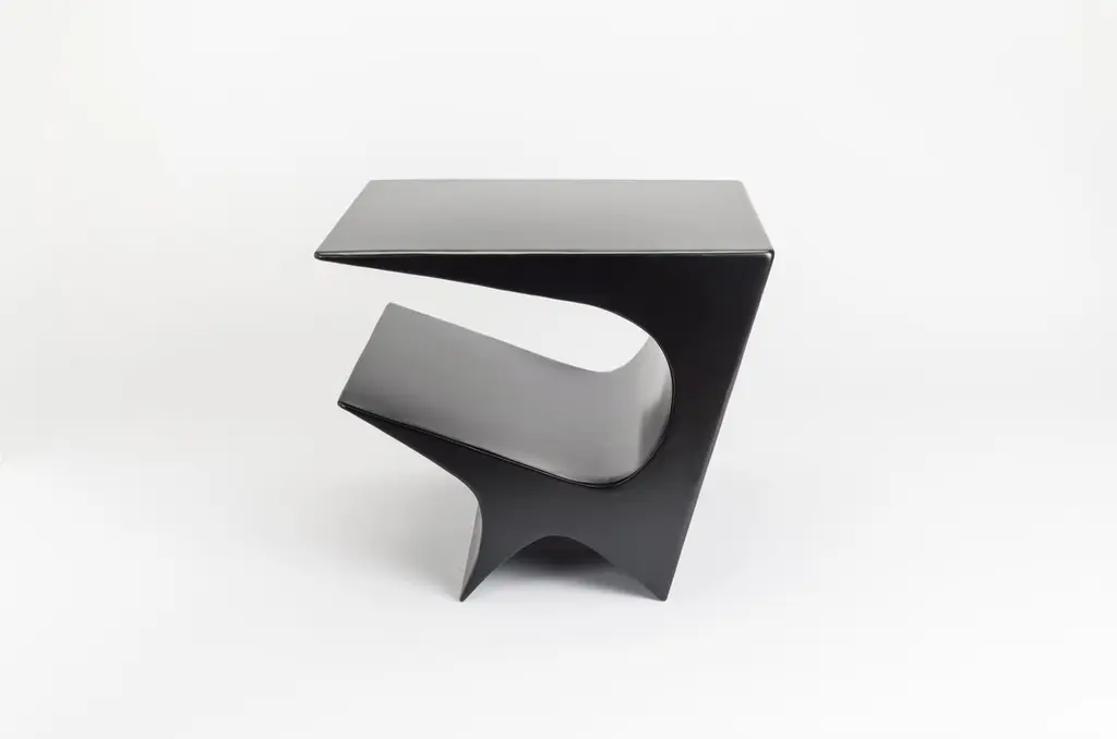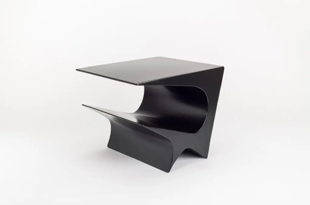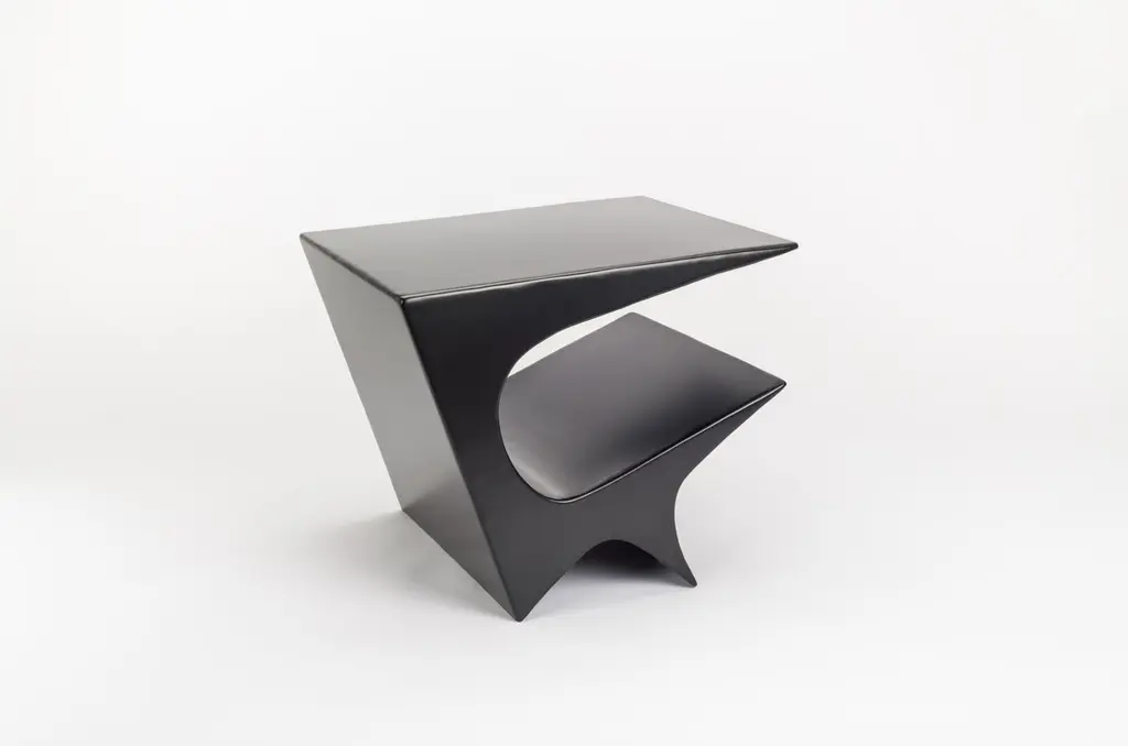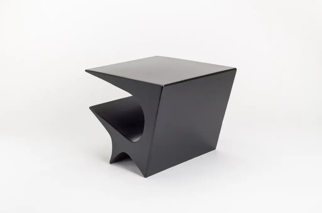 Star axis side table in powder coat aluminum by Neal Aronowitz DesignDimensions: D 61 x W 55.9 x H 50.8 cmMaterials: concrete, powder coat aluminum.Custom sizes and colors are available. This modern, minimalist side table by award-winning artist/designer Neal Aronowitz is a powerful sculptural statement and a dynamic presence in any room!The Star Axis Collection represents another playful and iconic form in the constellation of furniture and lighting by Neal Aronowitz. The Star Axis Side Table in Powder Coated Aluminum has already made its mark in the design world as a 2022 NYCx Design Award winner for residential tables.Powerful yet restrained, each piece is unique and lovingly hand-crafted in Neal Aronowitz' Portland, Oregon studio. The powder coated surface has a elegant, rich, and durable color tone.The open angular shelf holds books and magazines. As a side, accent, night, or end table it serves as functional furniture and blurs the distinction between art and craft.The surface is resistant to stains and easy to clean. There is simply nothing else like it!Neal Aronowitz art/design was founded in 2014 and with just a few powerful and iconic pieces of furniture and lighting, has quickly won acclaim in the international design world.The vision of the studio is the design and fabrication of highly sculptural, hand crafted bespoke furniture and lighting.Aronowitz’s debut piece was the Whorl Coffee Table, which won international notice including a feature in Elle Décor and was the recipient of a People’s Choice Award at the AZ Design Awards, sponsored by Azure Magazine.