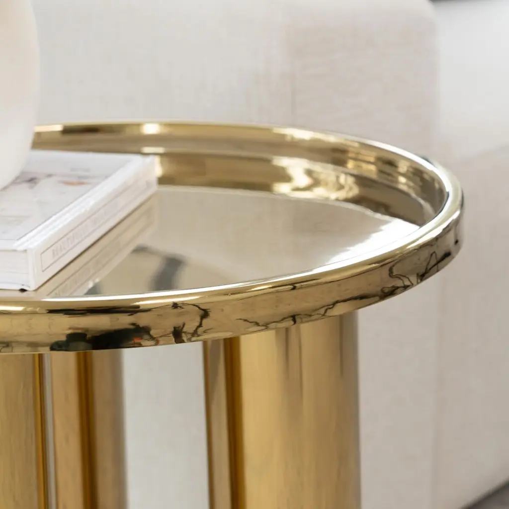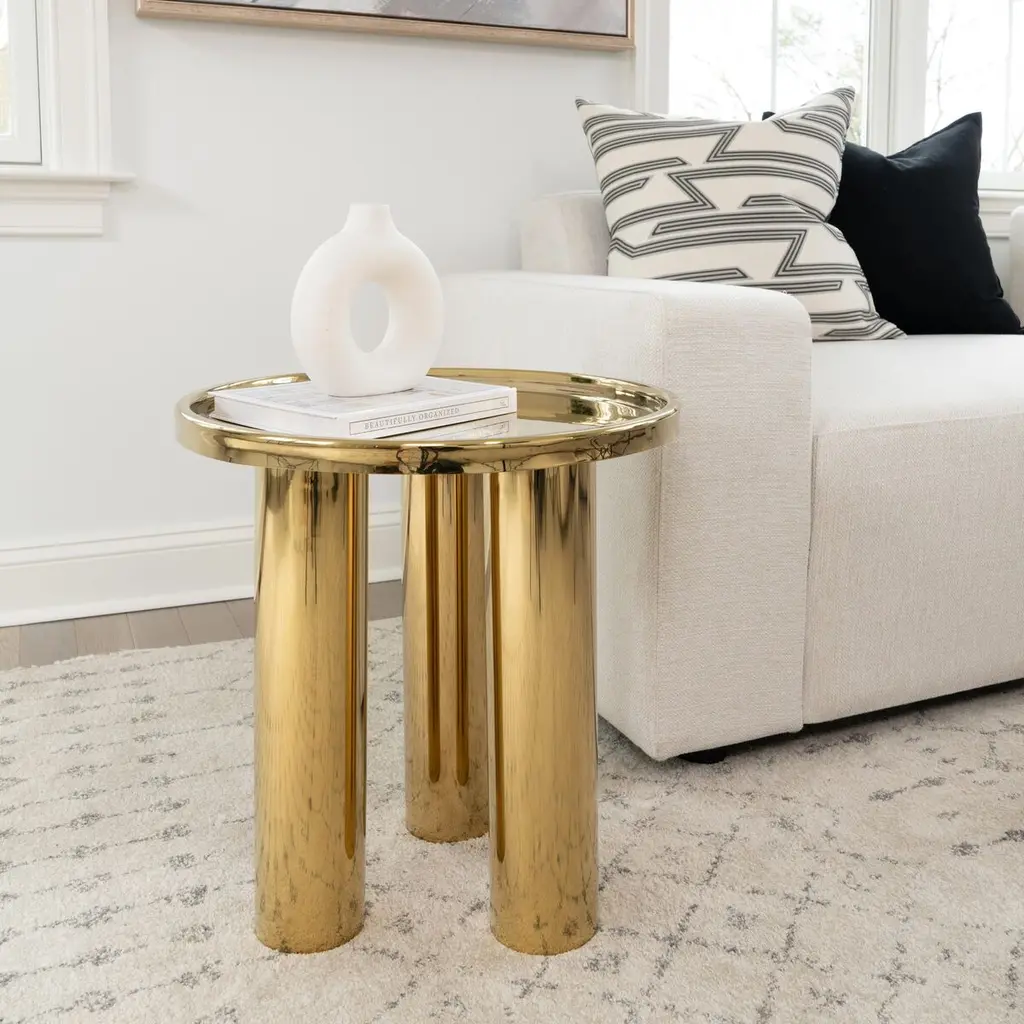 With its round trey top, three inset cylindrical legs and hand-applied finish, the Starla End Table effortlessly blends contemporary style with unbeatable strength and meticulous craftsmanship.