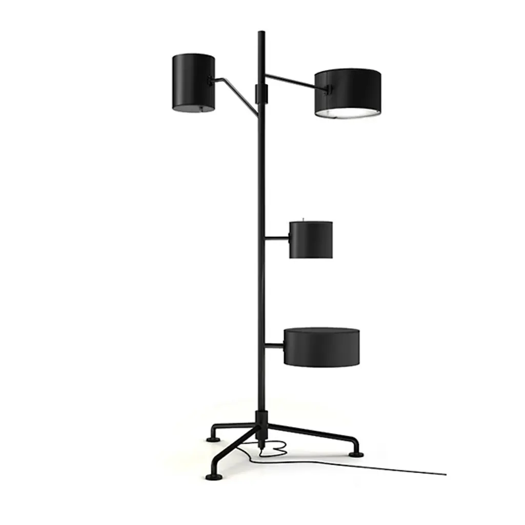 The Statistocrat LED Floor Lamp by Moooi brings multifunctionality to your living space. It features 3 shades with the tallest projecting light downwards and the widest doubling as a reading lamp. Look closer and you'll discover the lowest shade is actually a side table ideal for keeping snacks, beverages and reading materials easily accessible. Built-in adjustable dimmers on each shade provide even more convenience, making this floor lamp an impressive addition to any room.