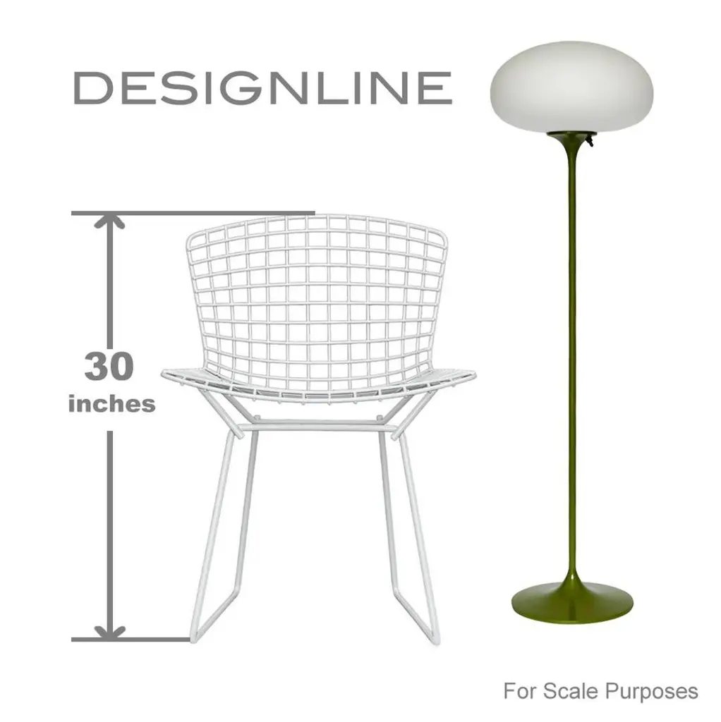 A sleek low profile floor made by Design-Line. It features a cast aluminum main base in a sculptural tulip form. The base is finished in a classic avocado green finish. The frosted glass lamp is hand blown and gives off a soft warm filtered light. It works with one standard bulb up to 100 watts and plugs into a standard US outlet. These retro lamps work with all mid-century modern furniture & decor. Such as classic vintage mcm, art deco, space age, post modern, retro kitsch and contemporary design. Imagine a pair of these lamps used as bedside lamps, on end tables in a living room, or a matching pair on top of a vintage credenza. These lamps will compliment modern furniture from iconic designers like Charles Eames, Eero Saarinen, Harry Bertoia, Paul McCobb, Adrian Pearsall, Verner Panton, Florence Knoll, Joe Columbo, Hans Wegner & Arne Jacobsen. Use a single lamp as an accent lamp on your favorite cabinet or buy one as a funky desk lamp. These are sure to go with modern furniture manufacturers from the past and present. Confidently mix these lamps that fit with brands like Herman Miller, Knoll, Fritz Hansen, Kartell, Artemide, Planner Group, Niels Moller, Maurice Villency, and Thayer Coggin. If you have any question, please don't hesitate to message us.