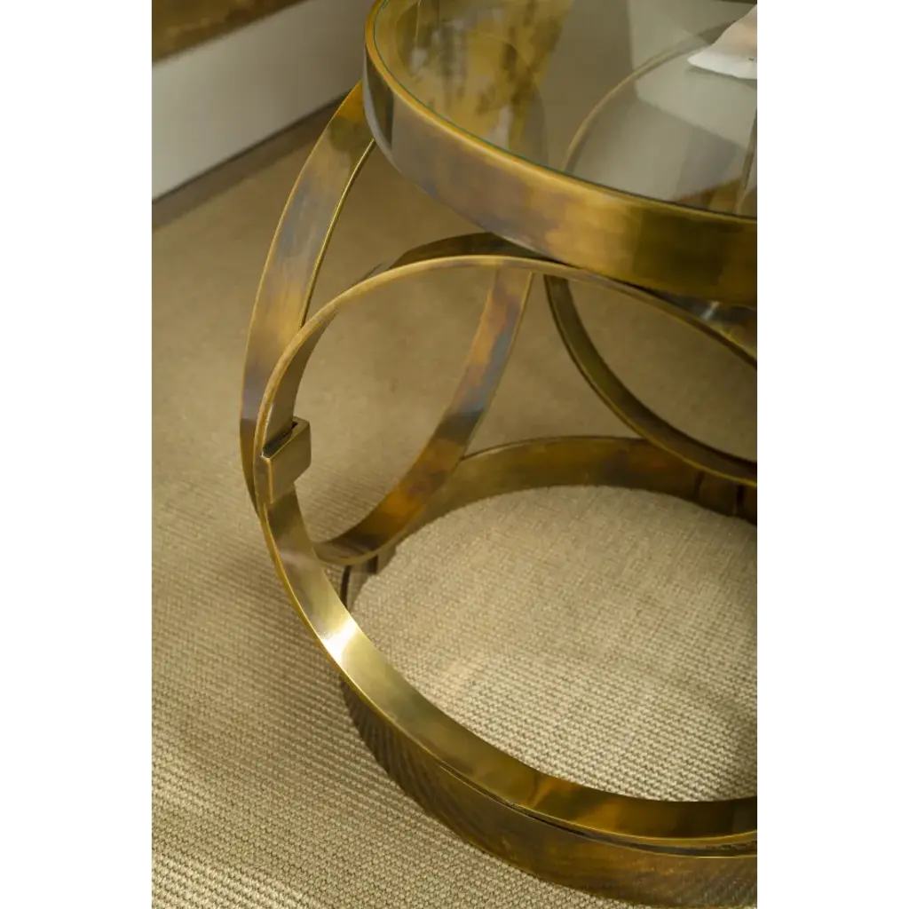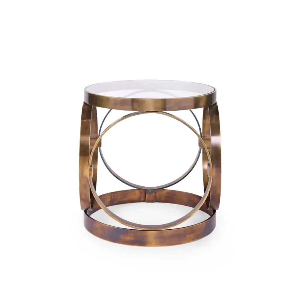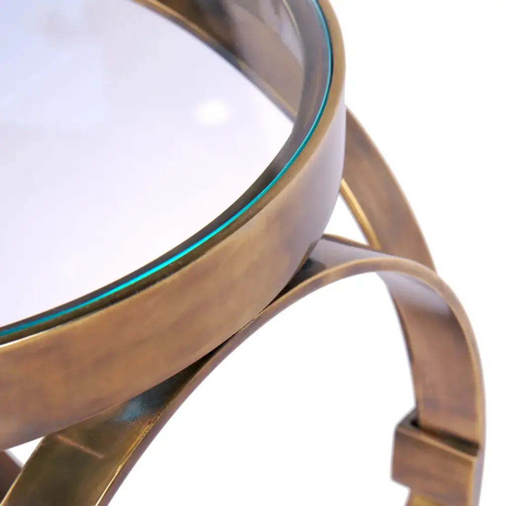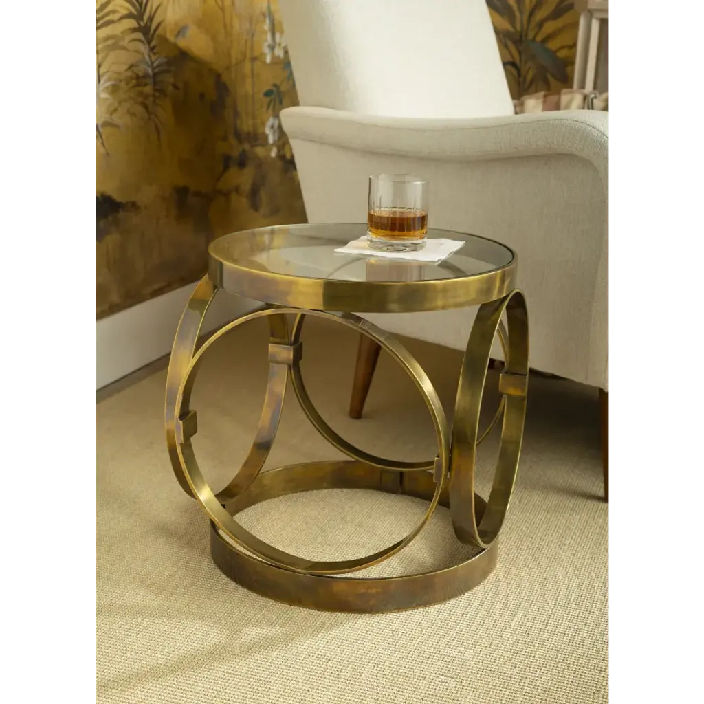 The Stephan Side Table is a playful take on a traditional piece which is usually made in bent cane or bamboo. We've recreated the piece in polished nickel and in brass with an antique finish which imparts a more contemporary and a much more glamorous air. This little decorative table is super helpful in many scenarios. It doesn't crowd: it's airy and open with a glass top. Place two in front of a sofa, flanking a loveseat, or nestled next to a cozy chair in a study.