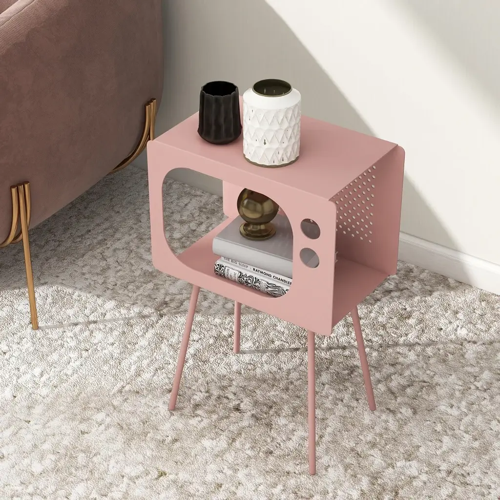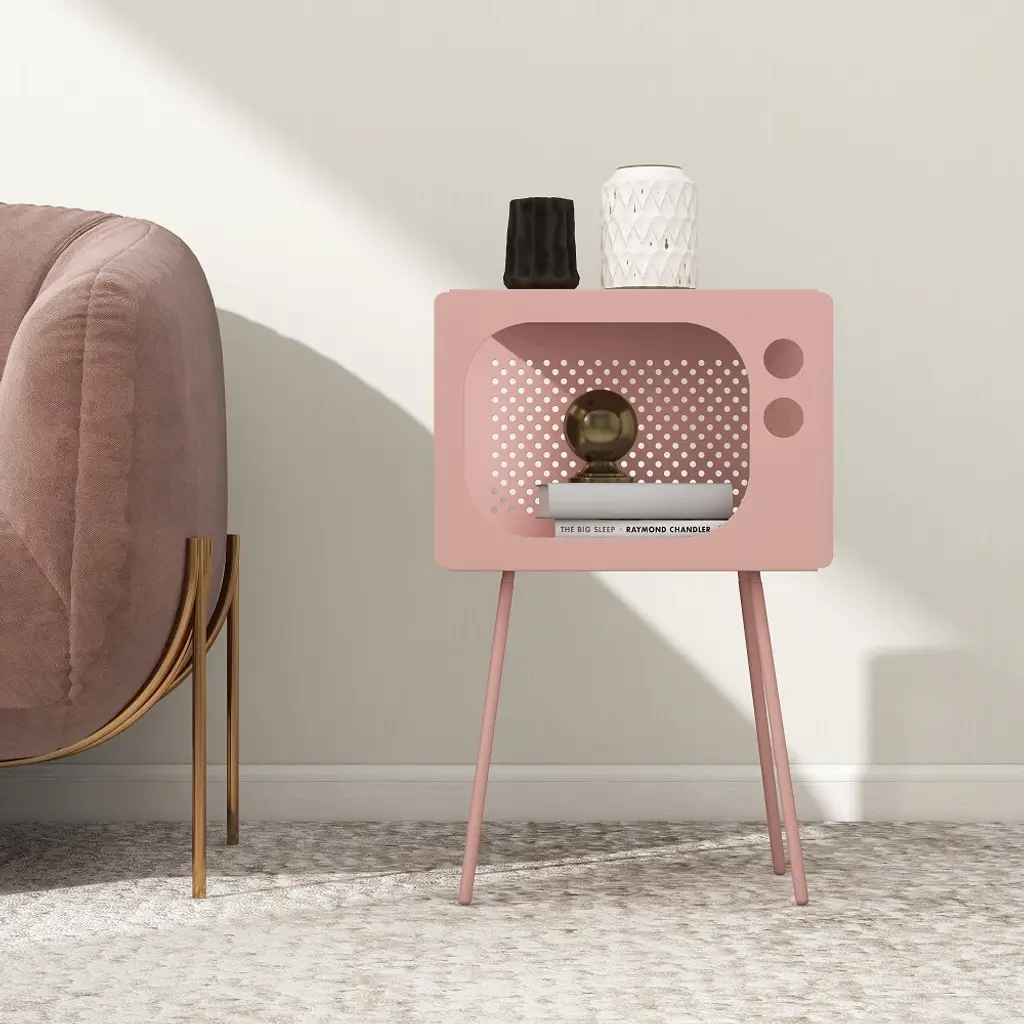 Stert Modern End Table In Television Shape Hollow Side Table In Fresh Pink