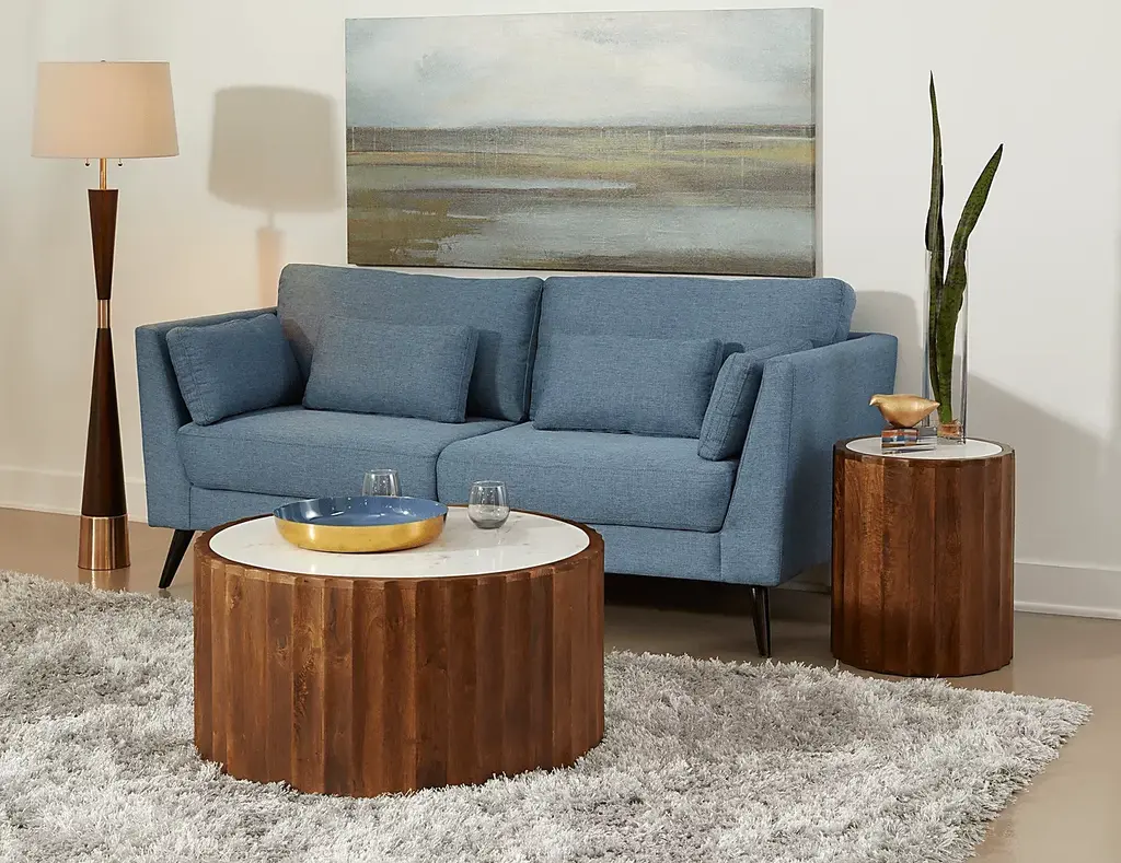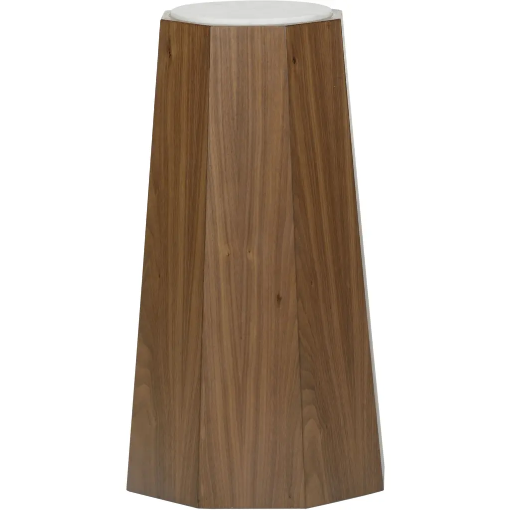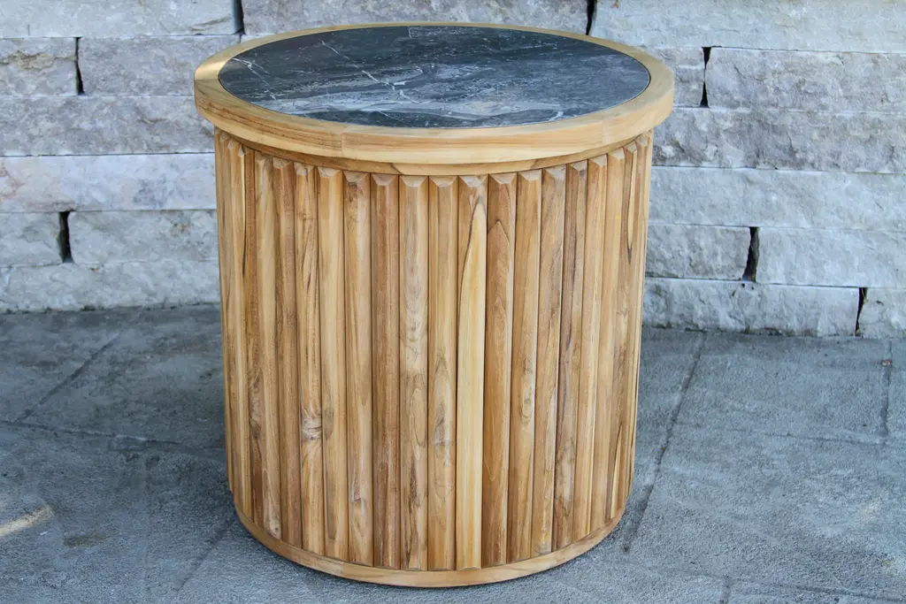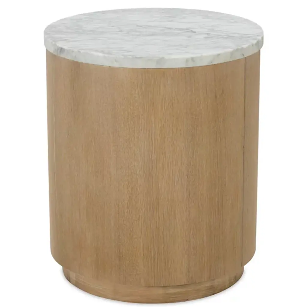 Bring a touch of elegance to your living space with this stunning Stinsonville side table. The base boasts solid Mango wood construction in a warm brown finish, featuring linear curved beveling that is sure to catch the eye. The round white marble top, with natural gray veining, is encased within the beautiful frame, ensuring that each piece is unique. For a complete and stylish look, pair it with the matching cocktail table. Customer assembly is required.