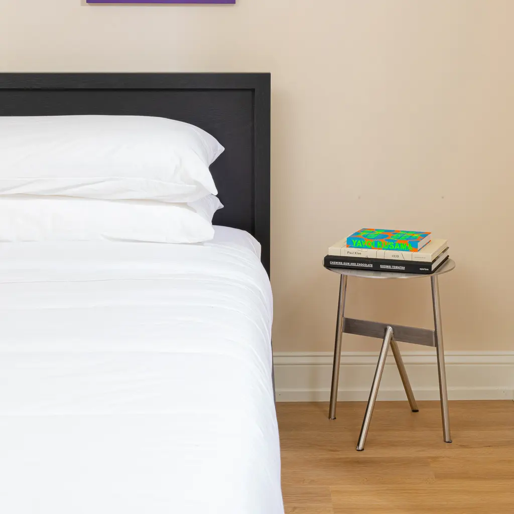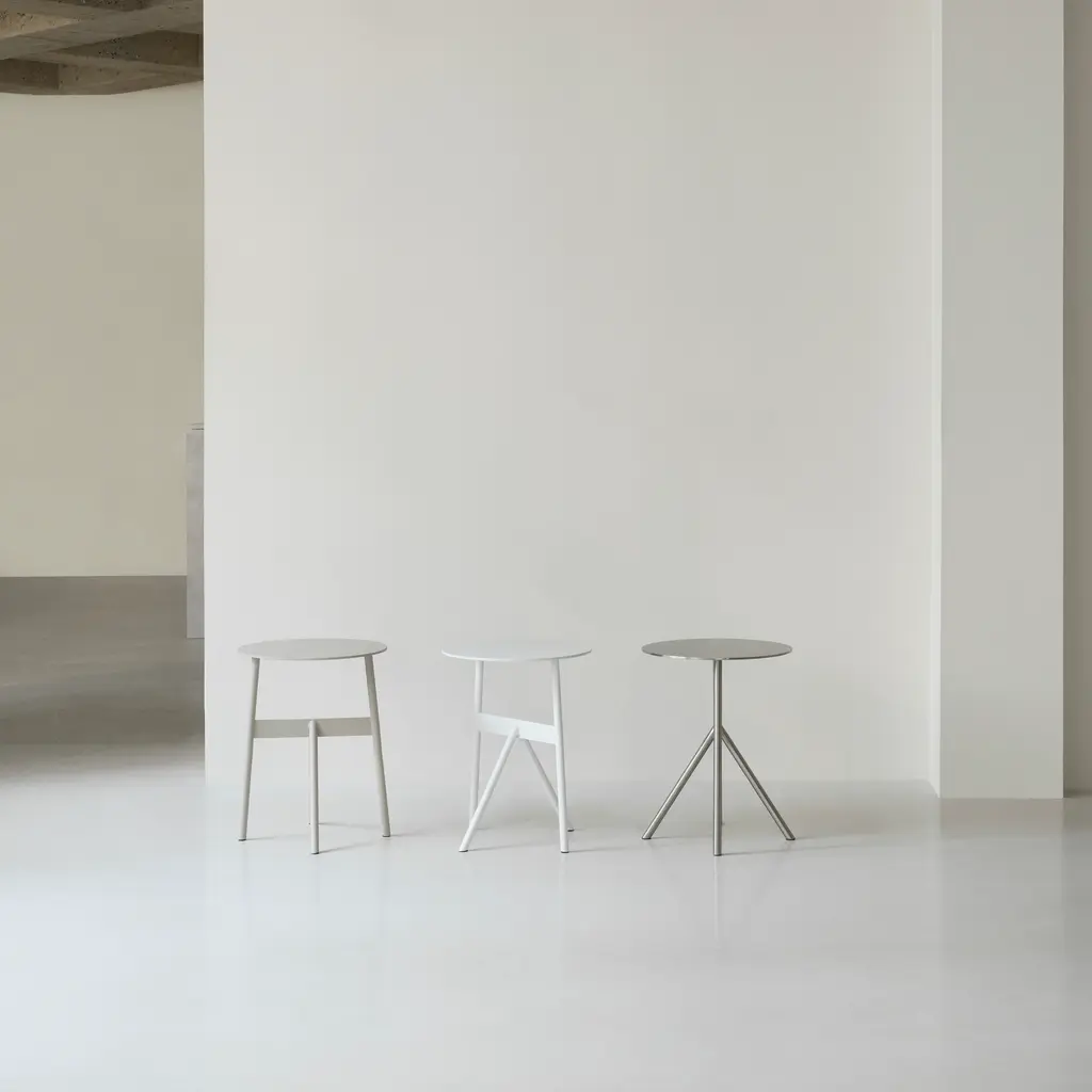 Stock presents an interesting conundrum as its oddball angled legs grew from the most elementary stock steel parts. The piece makes a graphic visual statement when situated as a side table in the living room, a nightstand in the bedroom or a decorative table in the hall. MSDS Studio designers have deconstructed the traditional arrangement of table legs, creating a intriguing new form of symmetry.