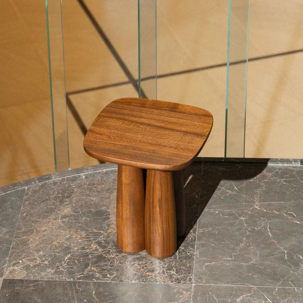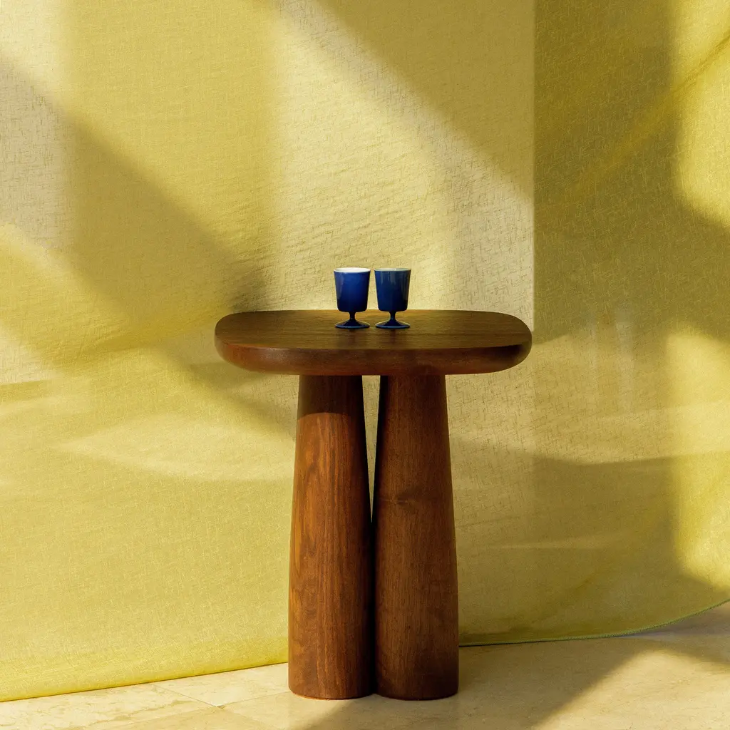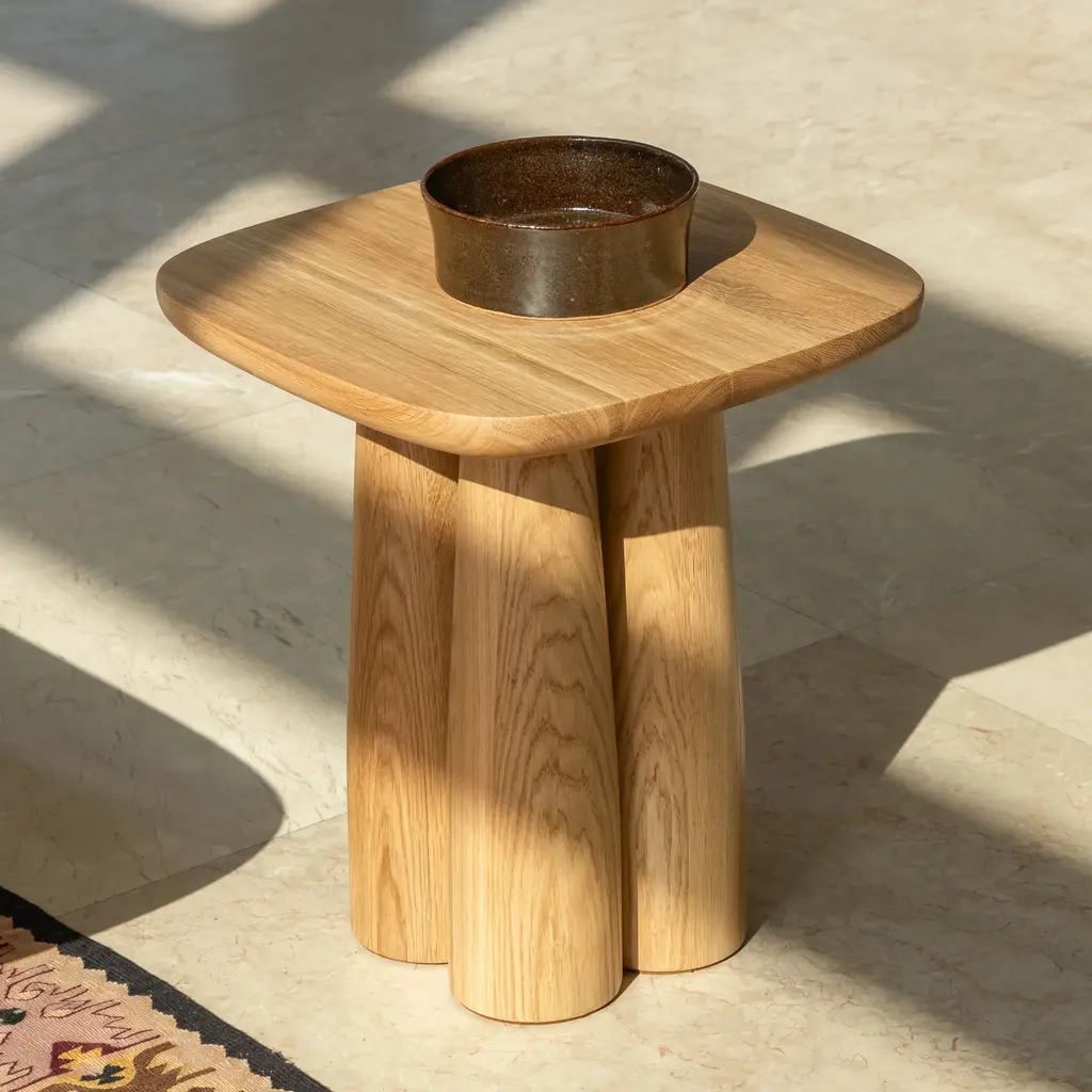The Stolac Side Table, designed by Sebastian Herkner, is inspired by organic forms. Its four legs converge beneath the tabletop in a way that resembles a budding flower. The name "Stolac," meaning “small table” in Bosnian, also pays homage to a picturesque town in Herzegovina, known for its natural beauty.