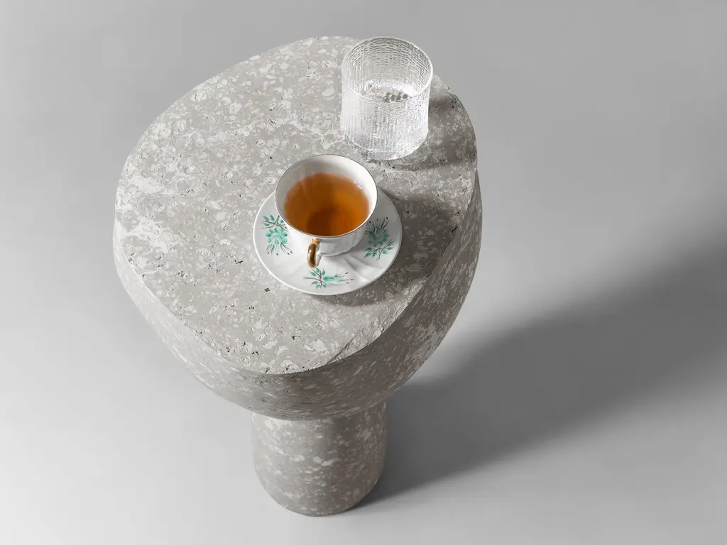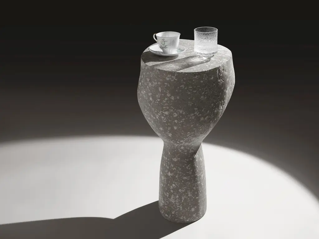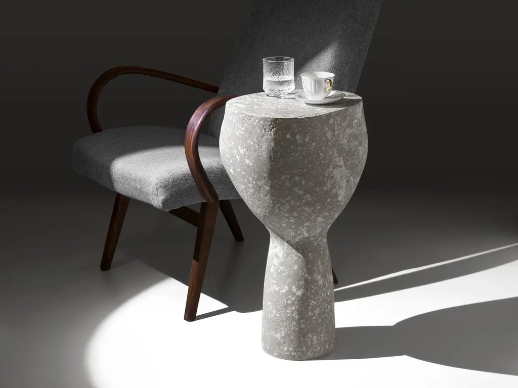 Stone Side Table by Donatas ZukauskasDimensions: D 30 x W 35 x H 59 cm.Materials: Concrete, wood, and recycled paper.Donatas ŽukauskasHello, my name is Donatas Žukauskas, I am an interior designer. I have graduated Vilnius Academy of Fine Arts and for more then 15 years I have been designing the interiors. Since I can remember myself I have always been interested in the art and this is the reason I have always tried to decorate interiors with art works. I strongly believe, a perfect interior cannot be without art!This concept used to get difficulties because could not find necessary objects for interior like stylish tables, lamps, lanterns, vases, sculptures. This gave an idea to create some arts by myself. Exceptional hand-made details for the home, cafe, and hotel spaces provide expressiveness and manners.My works are exposed in different countries of the world. Recently 50 lanterns went to Sheraton’s restaurant at Doha, Qatar.