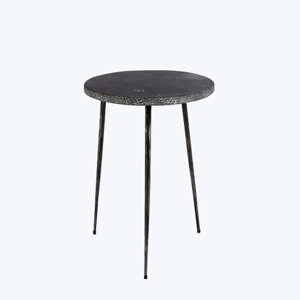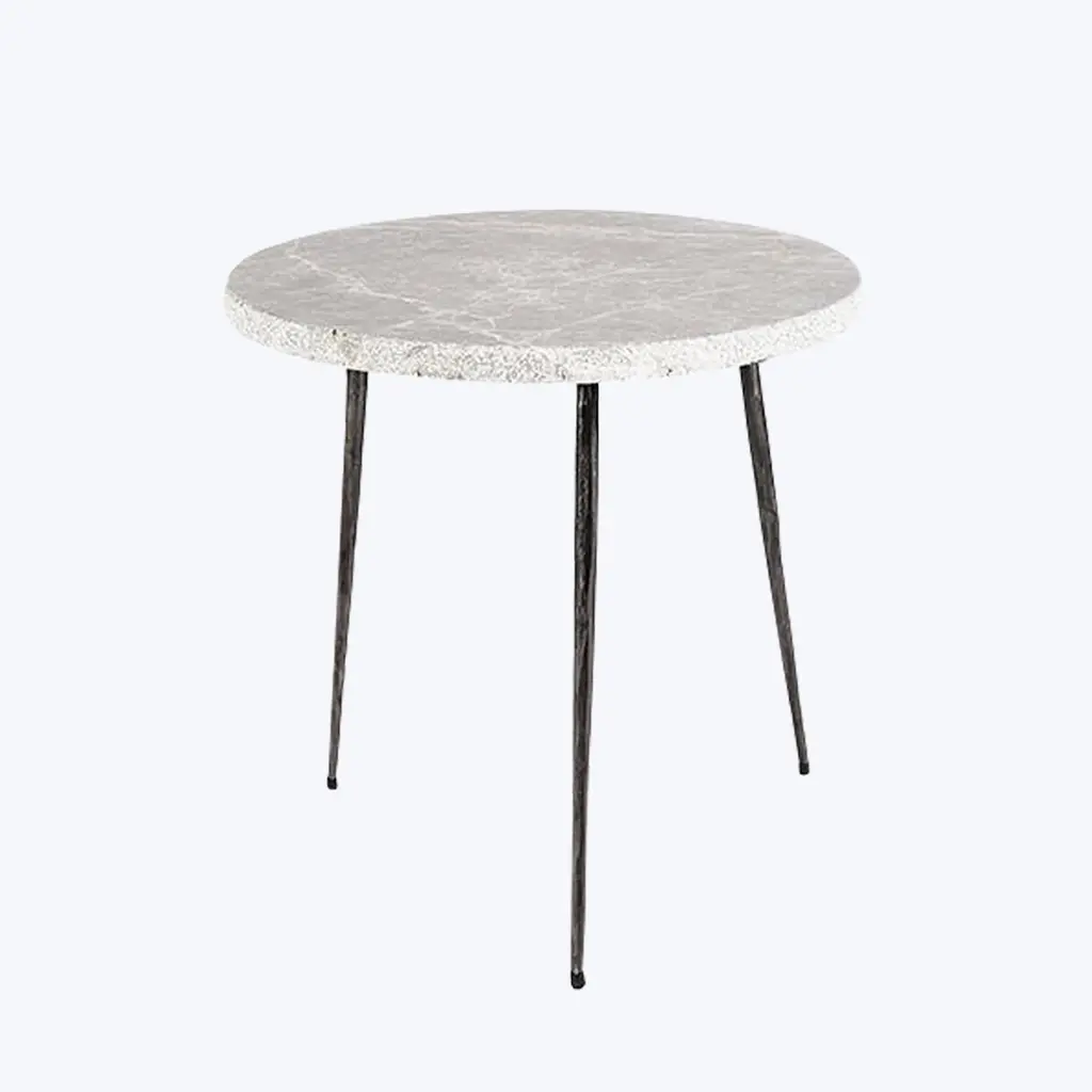 The Stone Street Marble Side Table is crafted from solid honed marble which is sculpted and married with hand forged steel legs to create a masterpiece of modern minimalistic design. Replete with a rough hand pebbled edge this round side table indulges the streamlined aesthetic fitting in amongst the monochromatic as well as the vibrantly colorful. Complete the look by stacking different colors and sizes to create your own unique configuration of marble tables for an eye-catching centerpiece in your living room, study, or bedroom.This side table is made from a natural material therefore each tabletop is unique and features one-of-a-kind details within the marble.