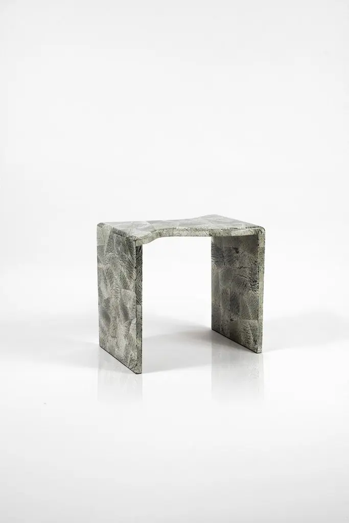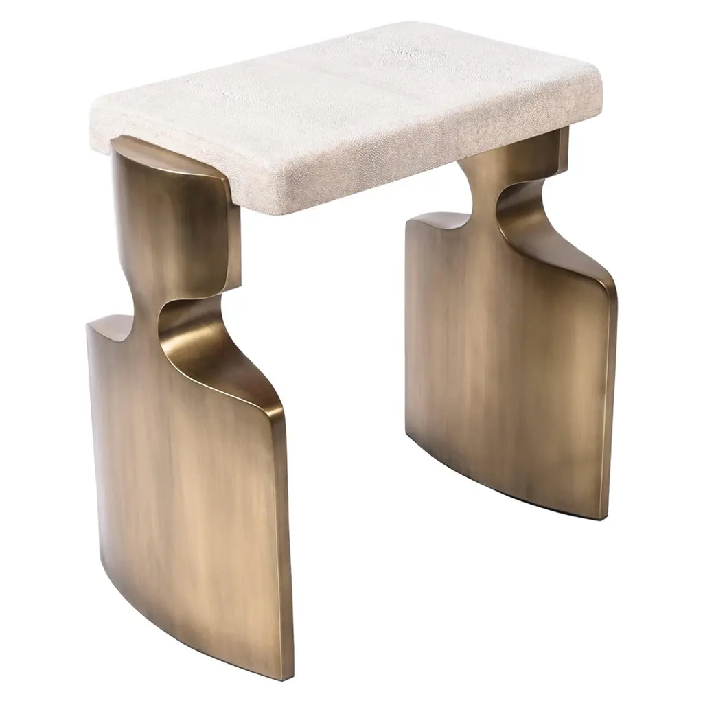 The Paris based label has distinguished themselves since their launch, with their iconic use of shagreen mixed with brass and other exotic materials. All furniture is handcrafted by skilled artisans, ultimately making each piece unique, designed in Paris and produced in the Philippines.The storm nesting side tables are an elegant pair of amorphous shaped pieces. These pieces are meant to nest together. The larger piece is inlaid in cream shagreen, and the medium piece is inlaid in black pen shell. Option to purchase the pieces separately upon request. An image of one of the pieces inlaid in Baguio stone is available, see image at end of slide. This piece is designed by Kifu Augousti, the daughter of Ria and Yiouri Augousti.The dimensions of these pieces are: Large- 60 x 35 x 55 cm / 23.5 x 13.75 x 21.5''Medium- 54 x 35 x 50 cm / 21.25 x 13.75 x 19.5''All Kifu Paris pieces are handmade by artisans, ultimately making each piece unique. Custom color or sizing available on request.Wipe clean with soft dry cloth.Although inspired by her parents, her collection of home accessories and furniture is a distinct identity of its own. Kifu uses handmade techniques of elaborate inlay patterns of shagreen, shells, semi-precious stones, materials she experienced as a child growing up in her parent’s studio, but interpreted in a younger quirkier way reflecting her youth. From her "jewelry inspired knobs" on decorative boxes, gold bar boxes and an extravagant inlay pattern mix of shagreen and shell inspired by galactic constellations, as seen on her enormous round mirror, is refreshing to see. Kifu embodies whimsical elements throughout her collection and is not afraid to be daring and unexpected in her approach to design.All shagreen-covered items should be kept out of direct sunlight, color variants may occur on the stingray and other exotic finishes, but this showcases the Parisian label's commitment to creating authentic luxurious products using natural components.