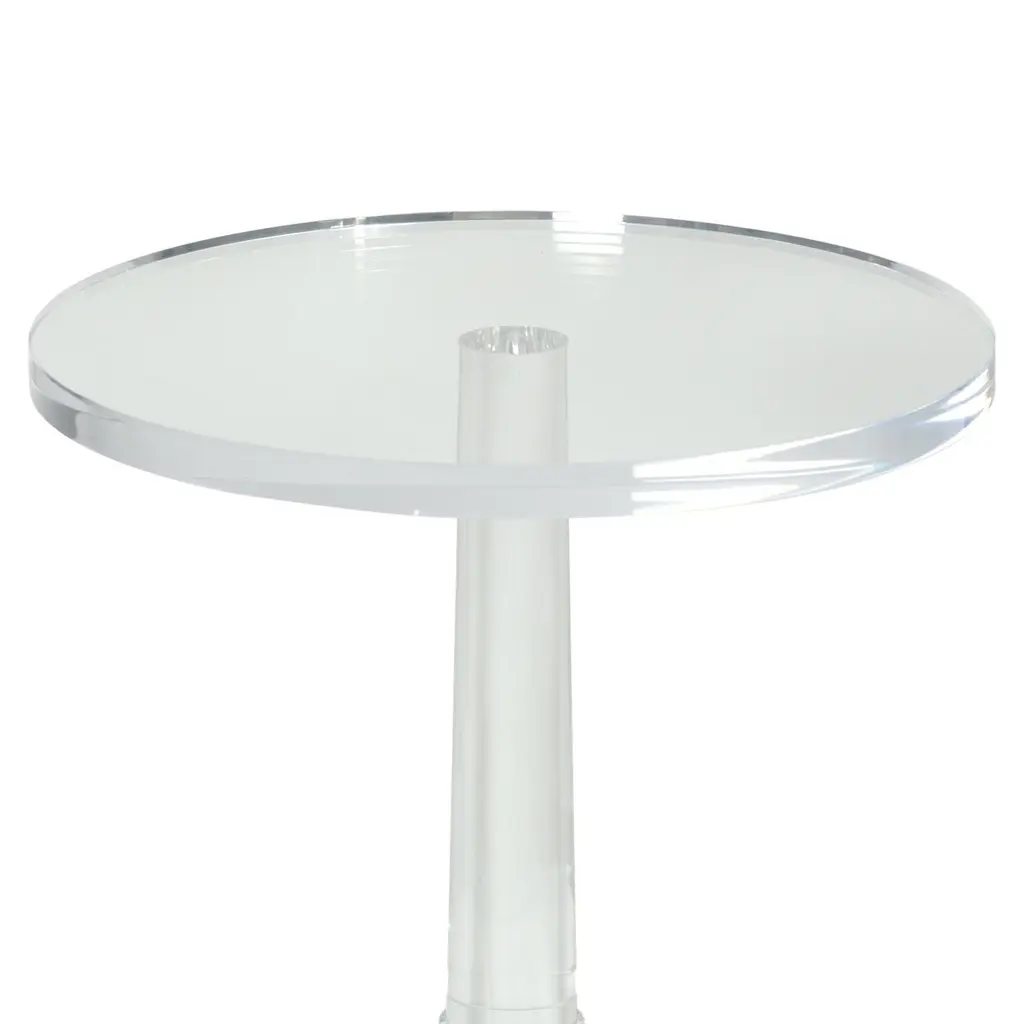 The Stowe Accent Table, crafted from acrylic, combines impeccable clarity with radiant shine. Its circular tabletop and clear sculptural base add a touch of elegance and versatility to any setting. Ideal for enhancing your living room, bedroom, or dining area, the Stowe Accent Table brings timeless sophistication and modern glamour to your decor.
