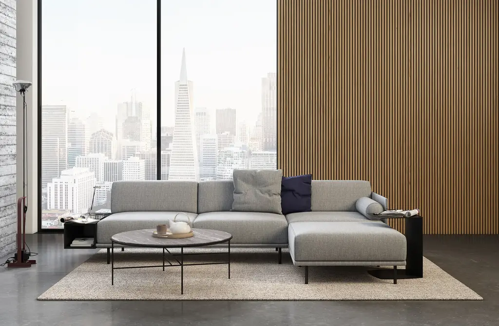 Strand is characterized by its slim profile and innovative ellipse-shaped back. Slide it over any sofa to keep your lounging necessities within reach. Suitable for residential and commercial use. Made in Italy.