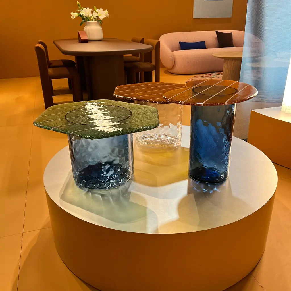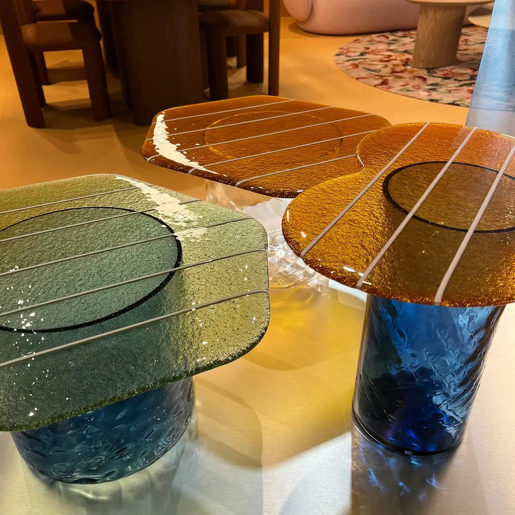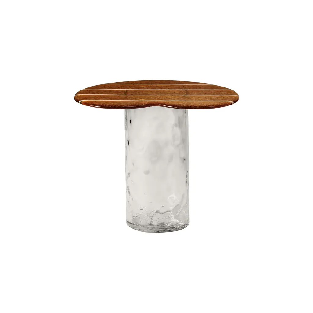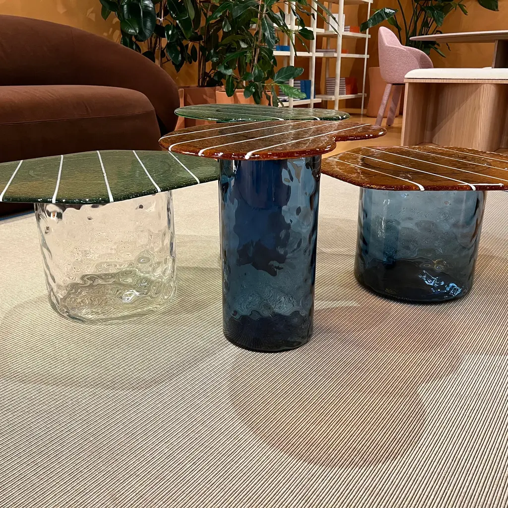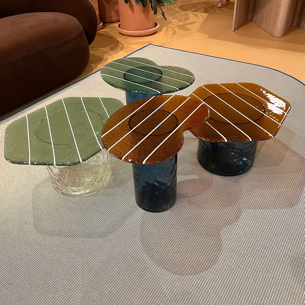 The Striche Side Table from Miniforms showcases refined Venetian craftsmanship through its Murano molten glass top, crafted with four distinct pours to perfect its shape, color, design, and texture. Its signature sugary, gummy-like finish imparts a luminous and playful elegance, making it an exceptional piece that adds light and character to any refined setting. Highlights
