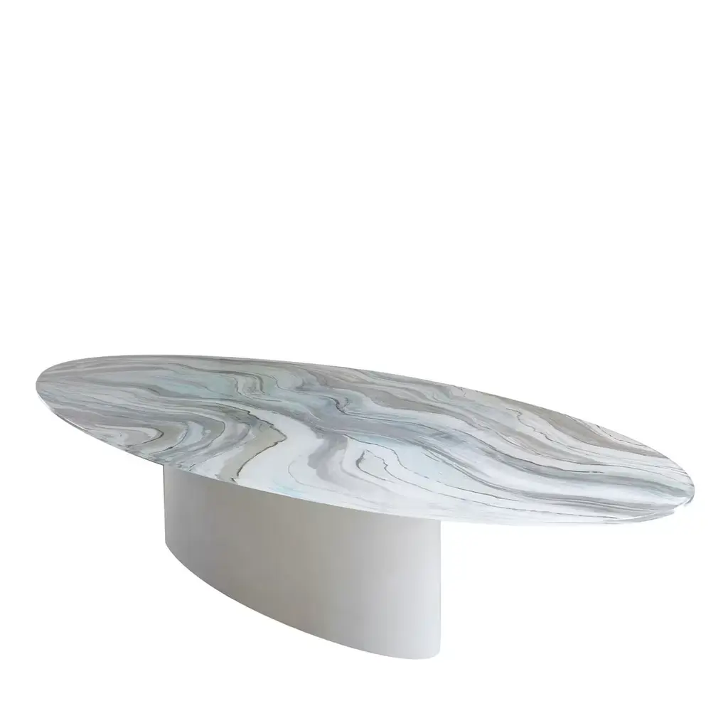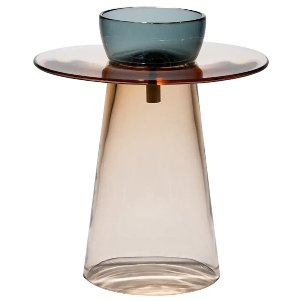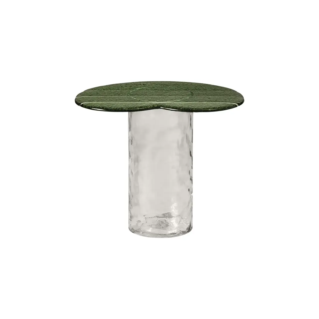 The Striche Side Table from Miniforms showcases refined Venetian craftsmanship through its Murano molten glass top, crafted with four distinct pours to perfect its shape, color, design, and texture. Its signature sugary, gummy-like finish imparts a luminous and playful elegance, making it an exceptional piece that adds light and character to any refined setting. Highlights