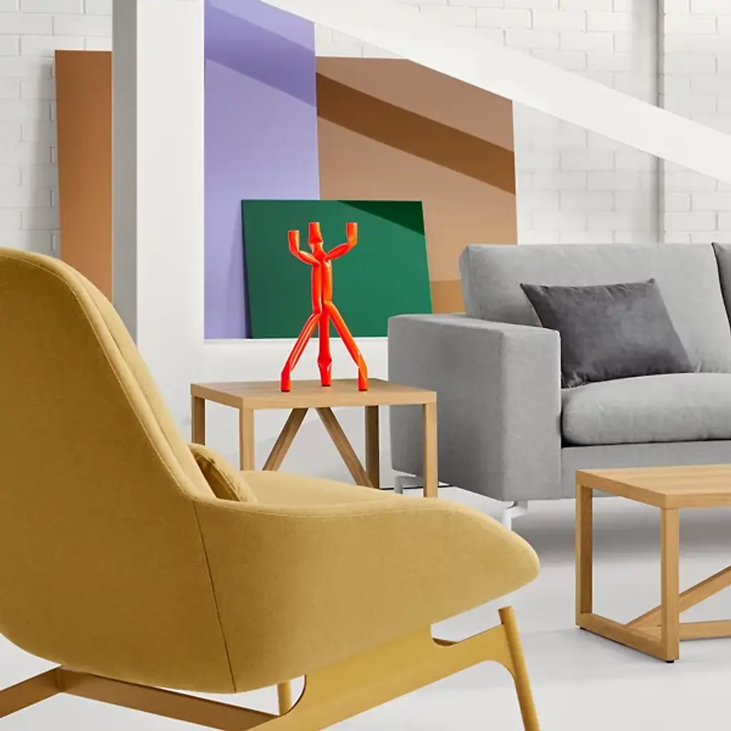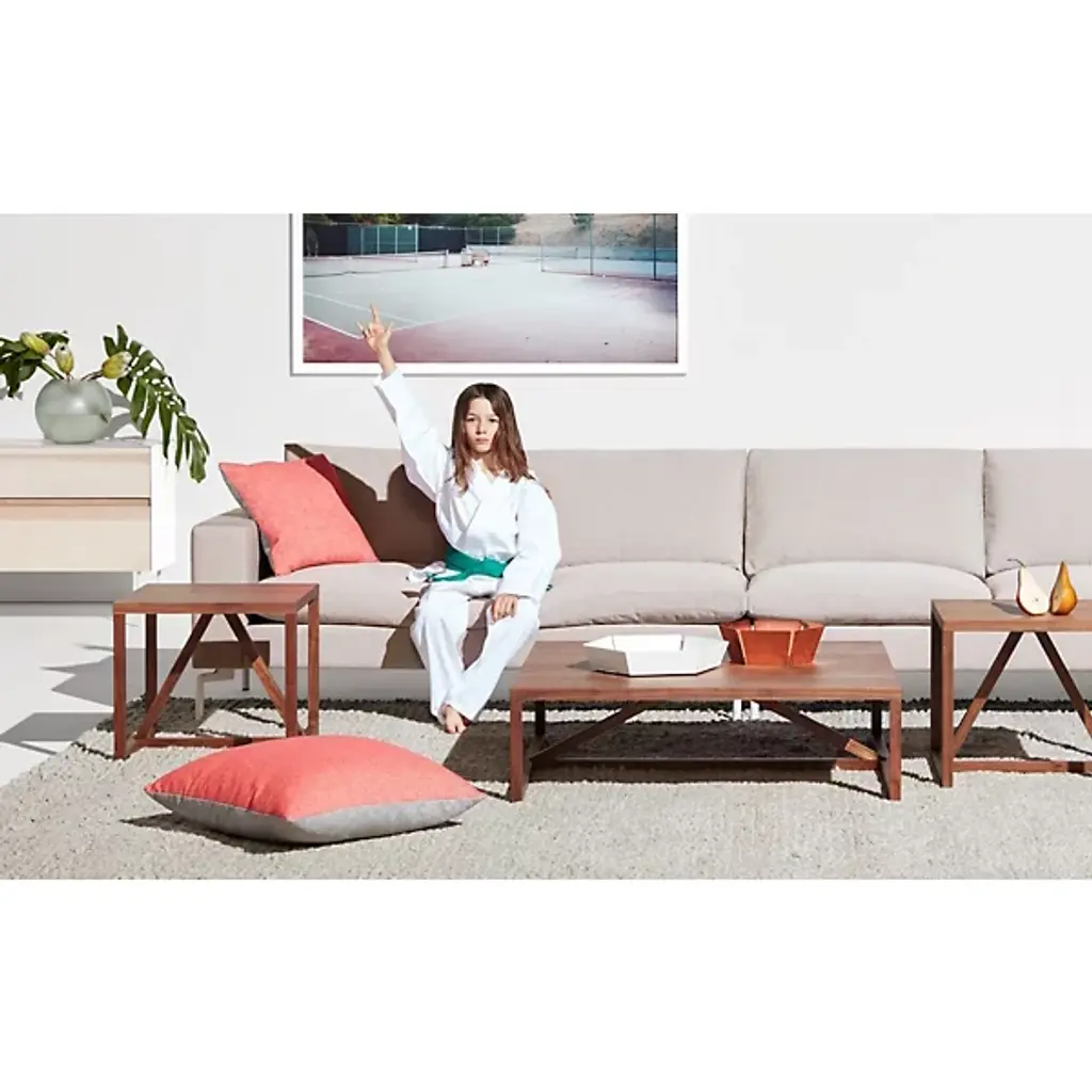 Go ahead and do it. Proudly flaunt your eye for fine modern design with the Blu Dot Strut Wood Side Table. It has the same exact structure as the original steel Strut, but is instead made entirely out of wood. As such, it includes a wood veneer top on an architectural base of solid wood struts.