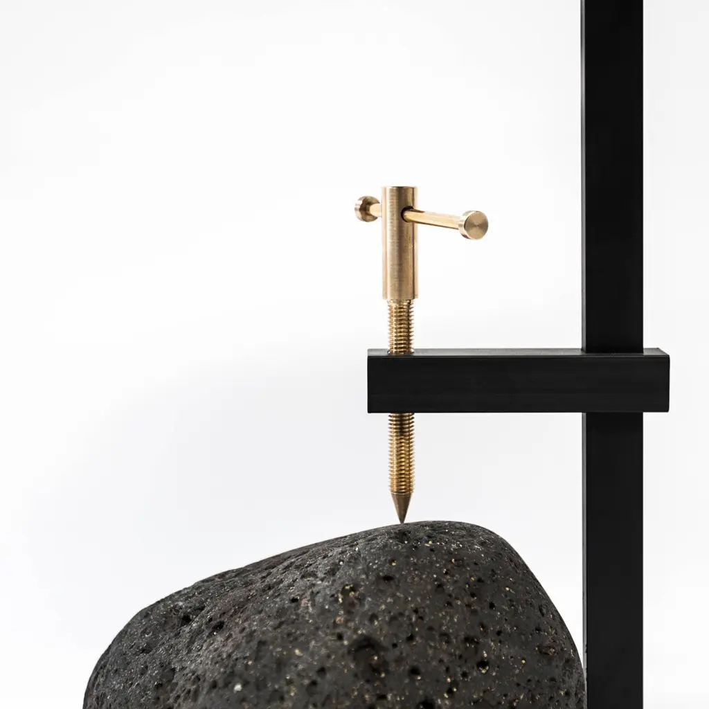 Studio BuzaoBlack lava stone and concrete table designed by Cantonese studio BuzaoBlack lava stone50 x 33 x 33 cm........“F” side table from Buzao collection is a creation by the young designers of Studio Bentu based in Guangzhou.Their furniture derives it’s uniqueness from the simplicity of it’s forms and it’s materials. Designed and manufactured by the designers of Studio Bentu themselves, these lamps, coffee tables, cup-boards and seats all have in common the use of concrete. This material that is usually reserved for construction use, finds here a certain nobility. The patterns that are created by the grains of this material once it flowed and unmolded is what gives the creations of Studio Bentu their originality. Accompanied at times finishings that are more valuable like marble or polished brass, making concrete a more suitable material for furniture. BUZAO, a branch of the pioneer and experimental design brand BENTU, was launched in 2017 as a spiritual representation of youth and rebellion.