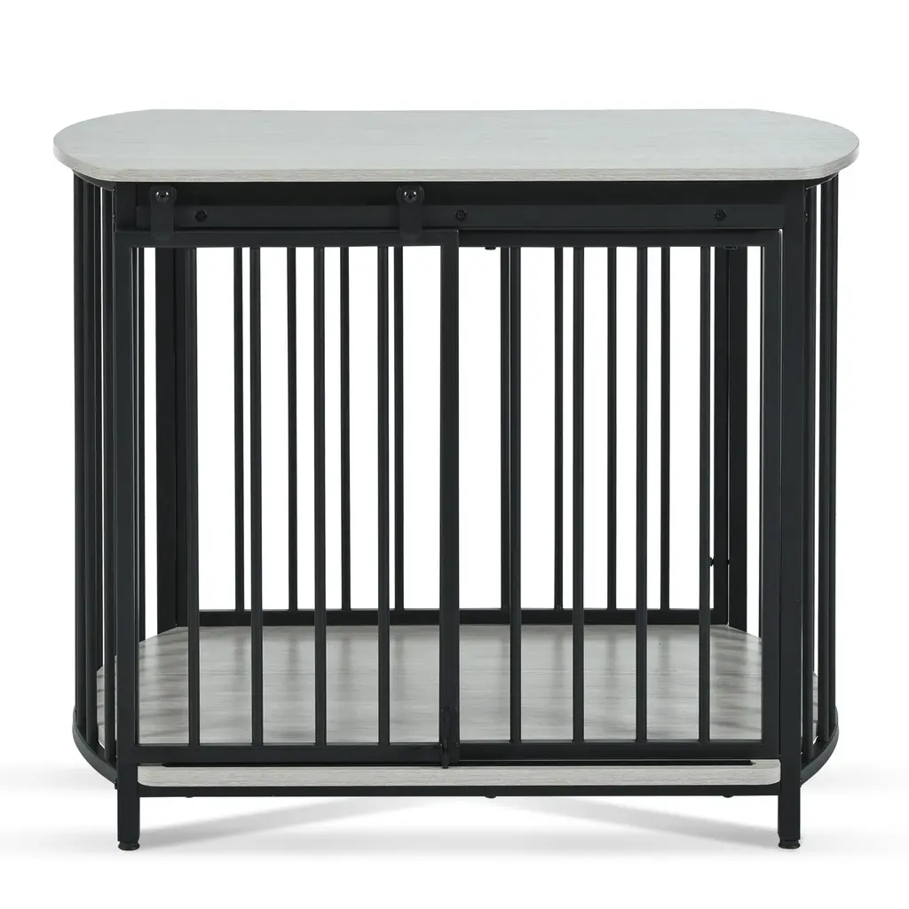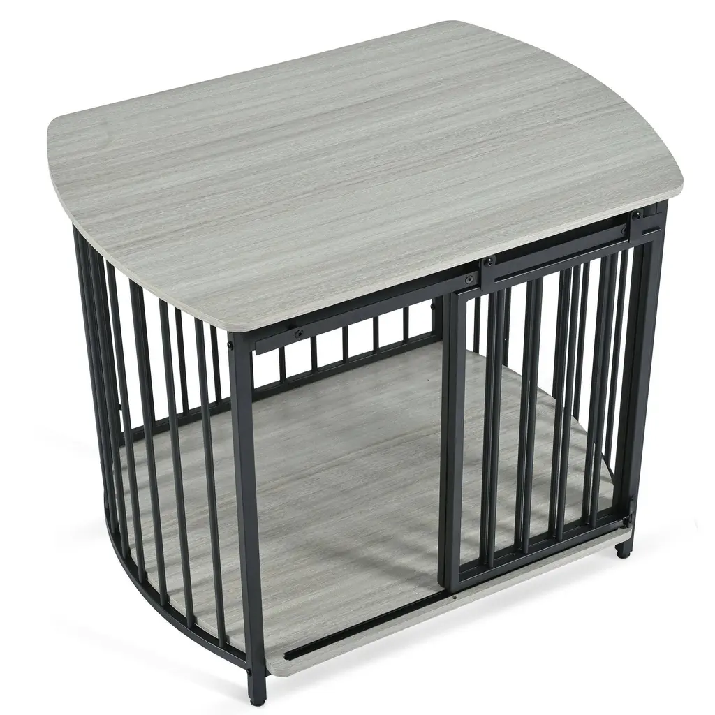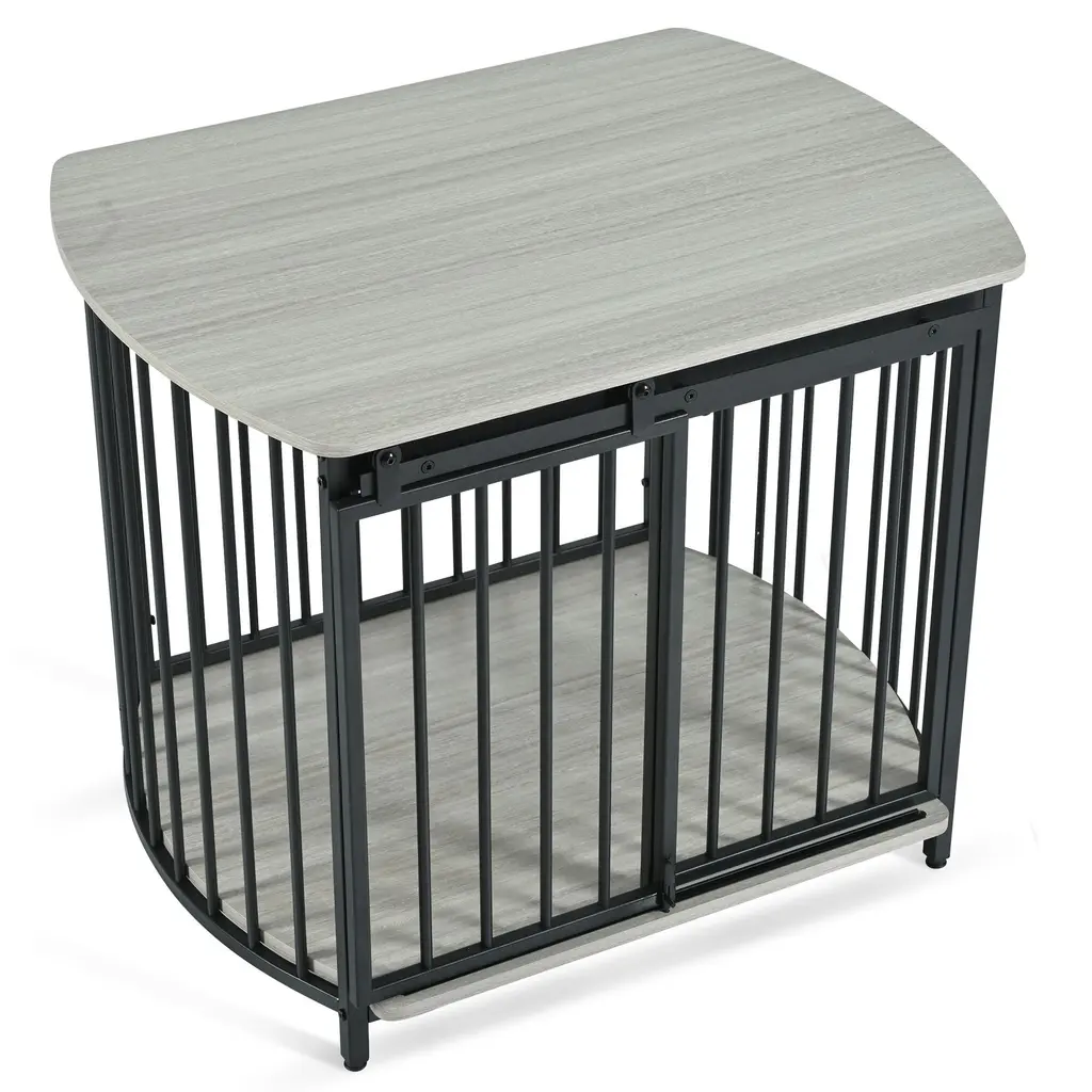 Elevate your home with this modern 31.5" wooden dog crate that doubles as a stylish end table. Featuring a curved metal frame, wide ventilation, and a spacious tabletop, it seamlessly blends into any décor while offering a cozy, secure space for your pet. Ideal for small to medium-sized dogs up to 50 lbs, this multifunctional crate is designed with durable MDF wood, chew-resistant metal mesh, and a neutral finish that suits any interior. Whether used in the living room or bedroom, it keeps your pet close while maintaining a clean, clutter-free look. A perfect blend of function and furniture.FeaturesSpecifications