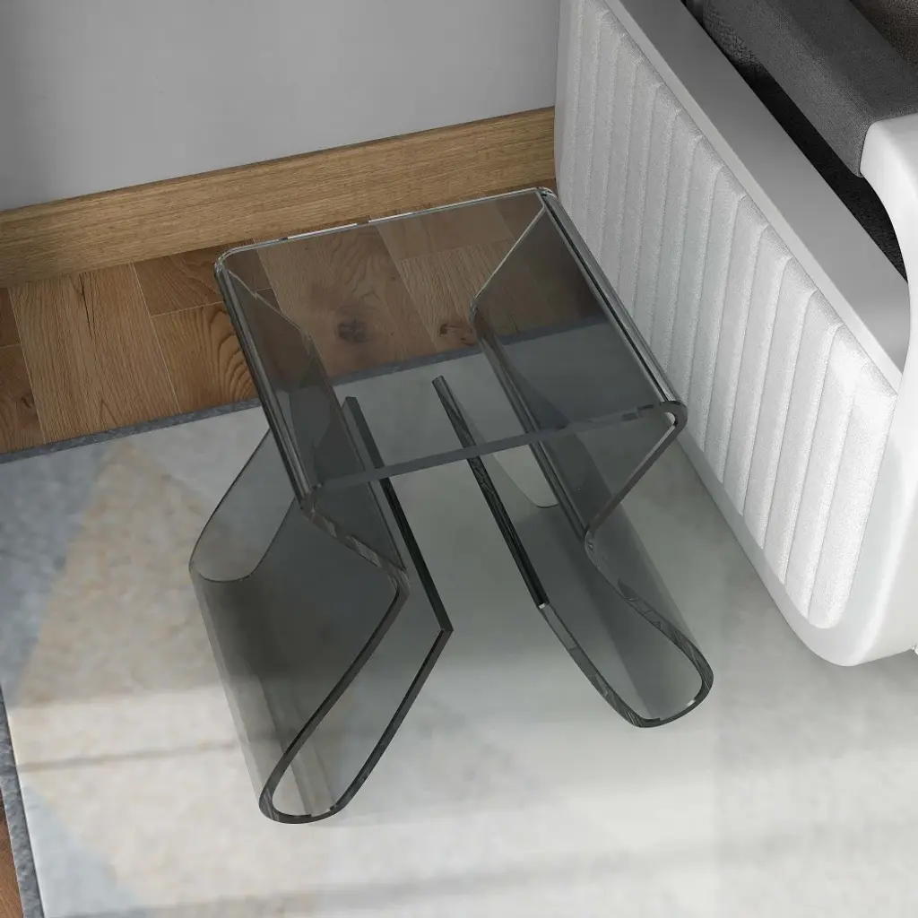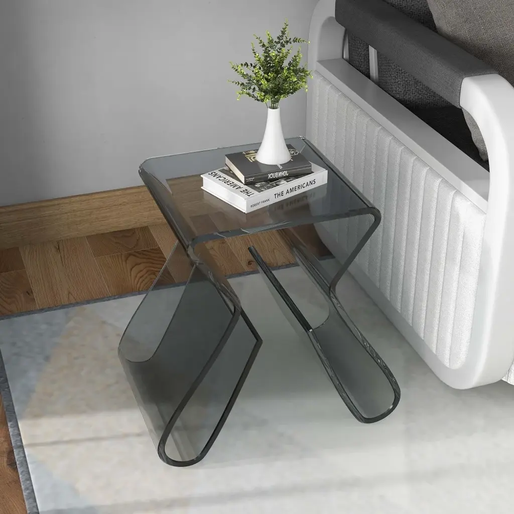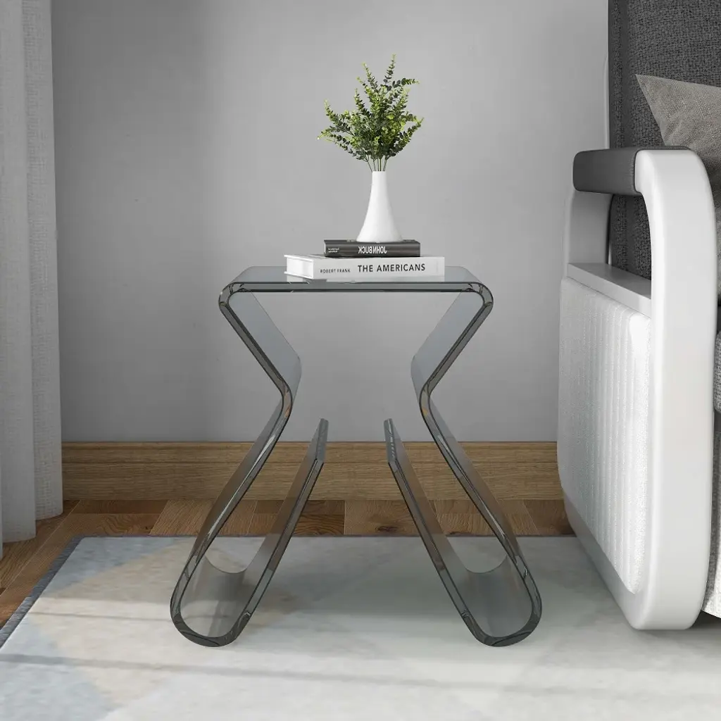 Stylish Side Table Acrylic Smoky Gray End Table With Storage Accent Table