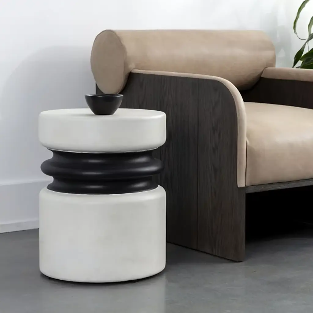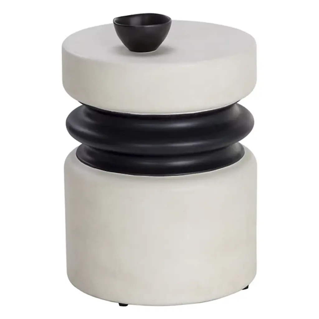 The Sumie Side Table from Sunpan brings a striking two-tone design to contemporary interiors. Its circular top is anchored by a uniquely sculpted central element, painted black to stand out from the pale structure. Hand-painted for an artisanal element, it’s constructed from durable glass fiber-reinforced concrete and sealed with an acrylic topcoat for protection. Compatible with mid-century modern or contemporary design, this side table combines bold style with practical durability, adding a distinct touch of individuality to your décor.