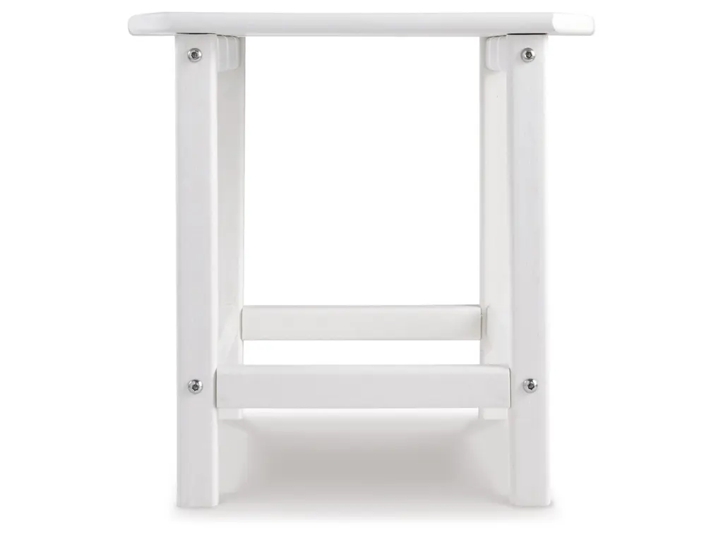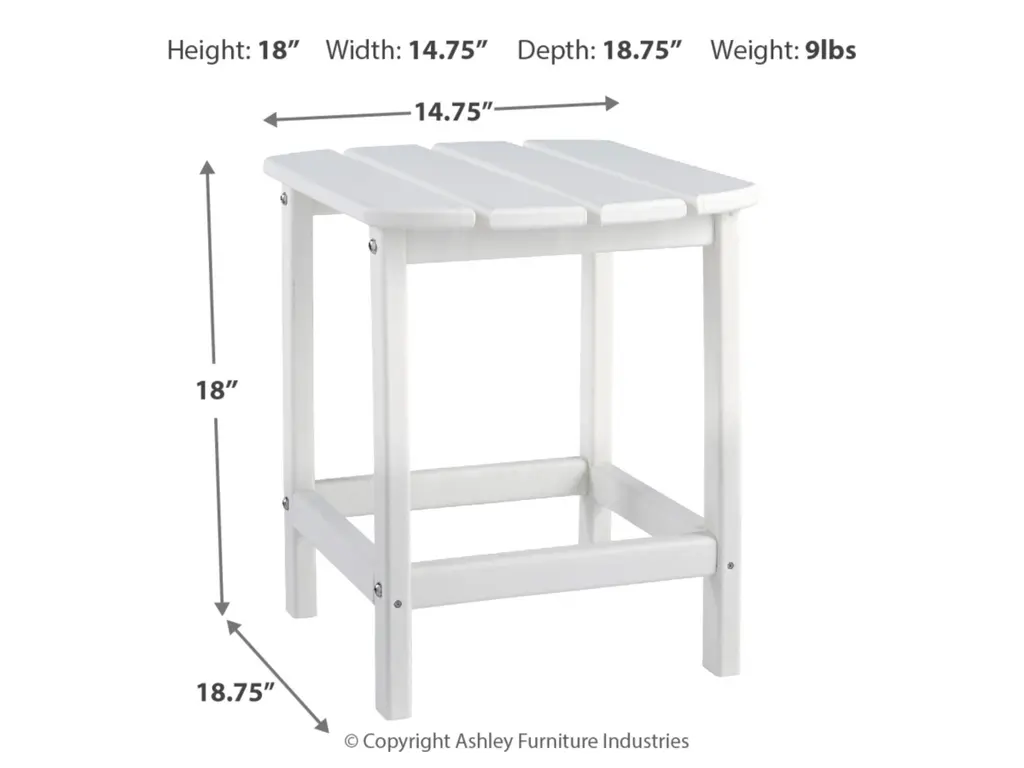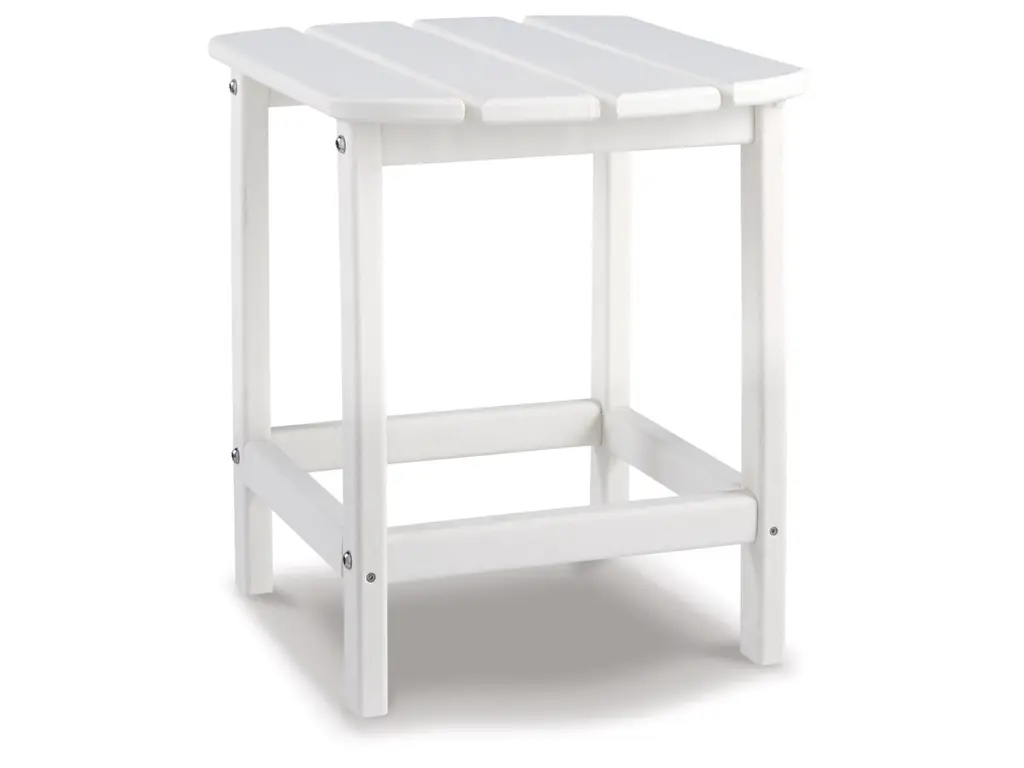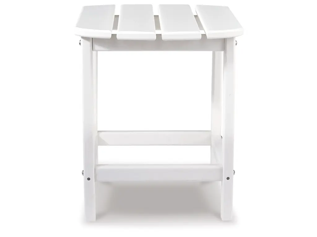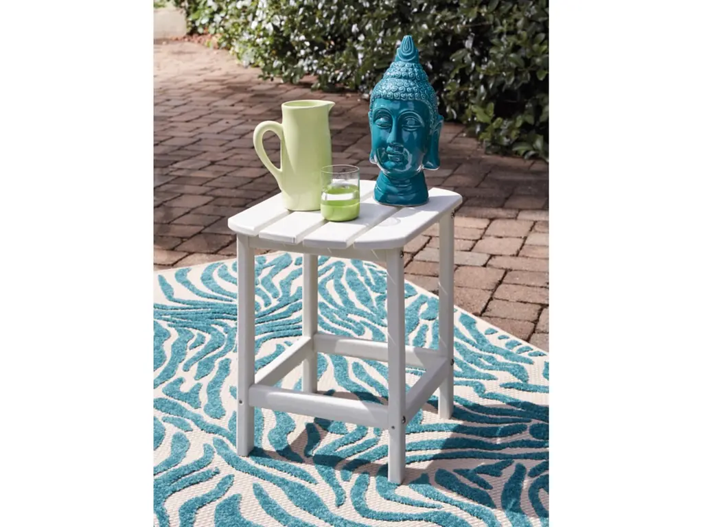 Add cottage-quaint charm to your outdoor oasis with the Sundown Treasure outdoor end table in white. Made of MEGA-TUFF® high-density polyethylene material, it’s sure to weather the seasons beautifully. Designed to shed rainwater, the table’s slatted top with gently rounded corners provides exceptional form and function.