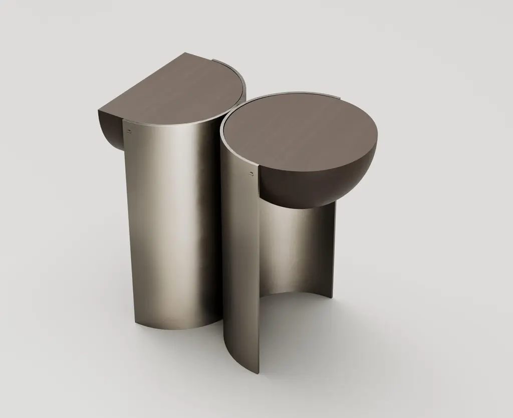 Suspensio Side Table by Andrea BoniniLimited EditionDimensions: Ø 35 x H 56 cm.Materials: Coffee cherry wood and natural steel.Limited series, numbered and signed pieces. Custom size or finish on request. Also available in a natural brass finish. Available in natural cherry wood. Please contact us.The aim of the Edition Collection is to launch a collection of sculptural furnitureelements produced in a limited series which can be made exclusively by expert and specialized craftsmen.Each piece is intrinsically connected and portrays elegance through geometry and proportions. Meticulous detail of symmetry, bold and deep lines, virtuous and ample curves, cuts and grafts can be found in every single piece.Each product encloses the complexity of its production process in a pure and virtuous form.They are limited editions, each piece signed and numbered, appreciated as art or as design. They are the result of past experiences yet the keeper of future projects. The purpose of andreabonini edizioni? To tell a story through the use of materials between tangent reality and the world of dreams.Andrea Bonini seizes every detail that strikes his attention with a critical eye.A still image, imprinted in the mind, which becomes an idea through a process of mental elaboration and a fusion of scenarios. The cultural background in which Bonini was born is characterized by the timeless charm of a precious combination of two materials that enhance each other: metal and marble.His is a family of metal artisans for several generations and Bonini was born in a landscape which is the cradle of marble extraction and processing. The deep knowledge of these two fascinating and natural elements leads him to often insert them in his works; he prefers them in their authentic finishes and shades, sometimes raw or with their natural imperfections, typical of this material.Adopted by the city of Milan; here he gains his first success and initiates important collaborations. Bonini listens and follows the artistic trails left by his masters; from Carlo Scarpa to Franco Albini and Christian Liaigre.Andrea Bonini is sensitive and concentrated, with meticulous commitment he follows every phase of his products and his interiors; he is personally active in dealing with the craftsmen and his sharp pencil captures any variation or improvement.During his career he chooses to design for companies with high artisanal criteria; the same intention is reflected in his interior projects, attention to every detail with a sartorial approach recognizable on the international scene. Bonini has successfully completed and is currently working on projects in Italy, China, the United Kingdom and the French Riviera.To date, his studio atelier is located in Milan in via Montenapoleone, core of Italian excellence. It is a small yet refined ambience; a boutique with contemporary taste.Here his pencil gives life to all his projects, elaborated in every detail together with his team, producing a strongly recognisable and prestigious result.