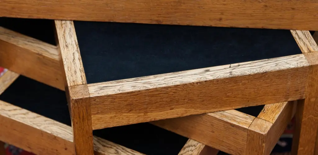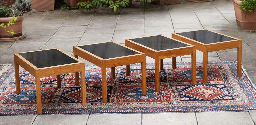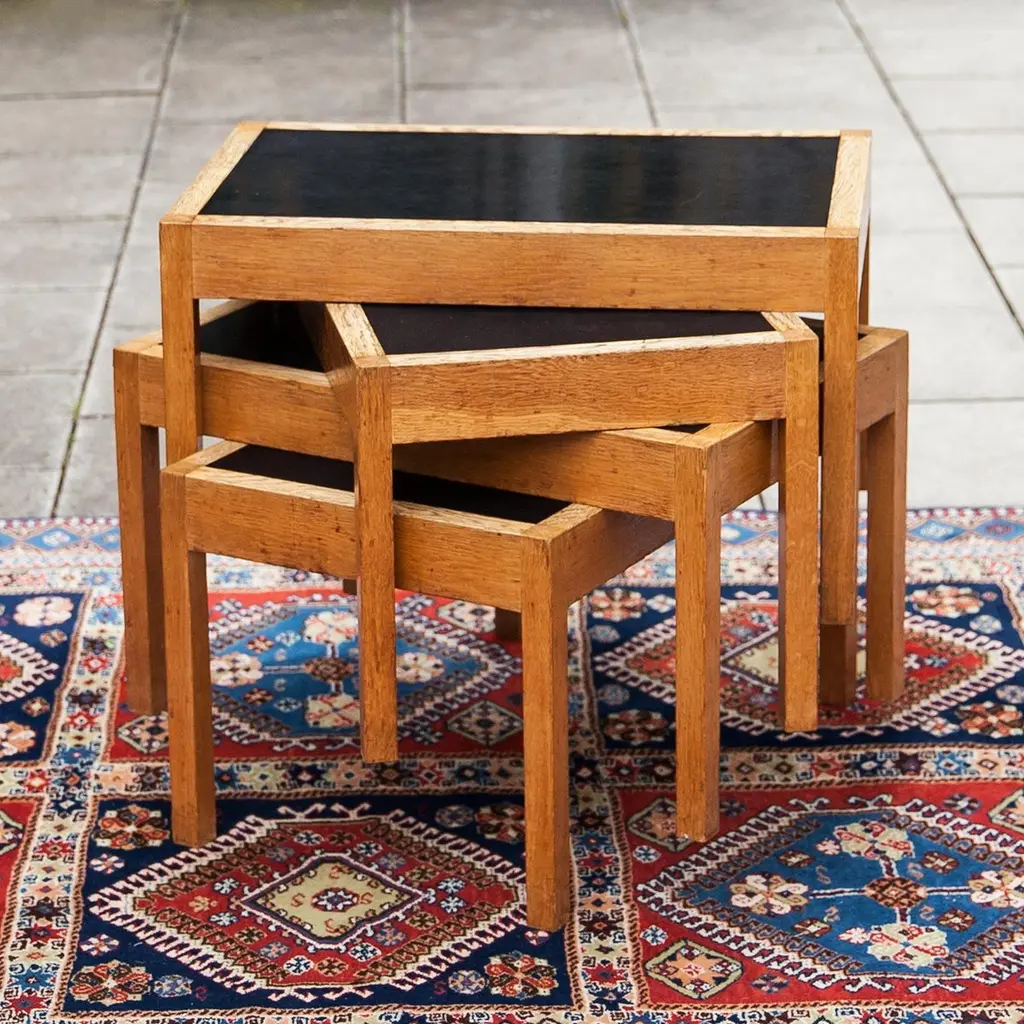 Wonderful clear designed side tables from the 1960s, in oak and formica, made in Switzerland in the 1960s.