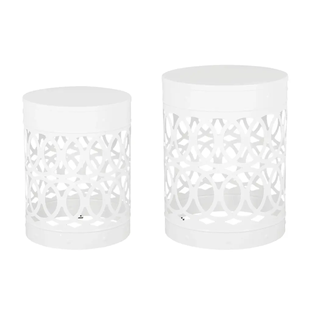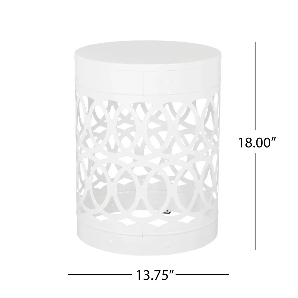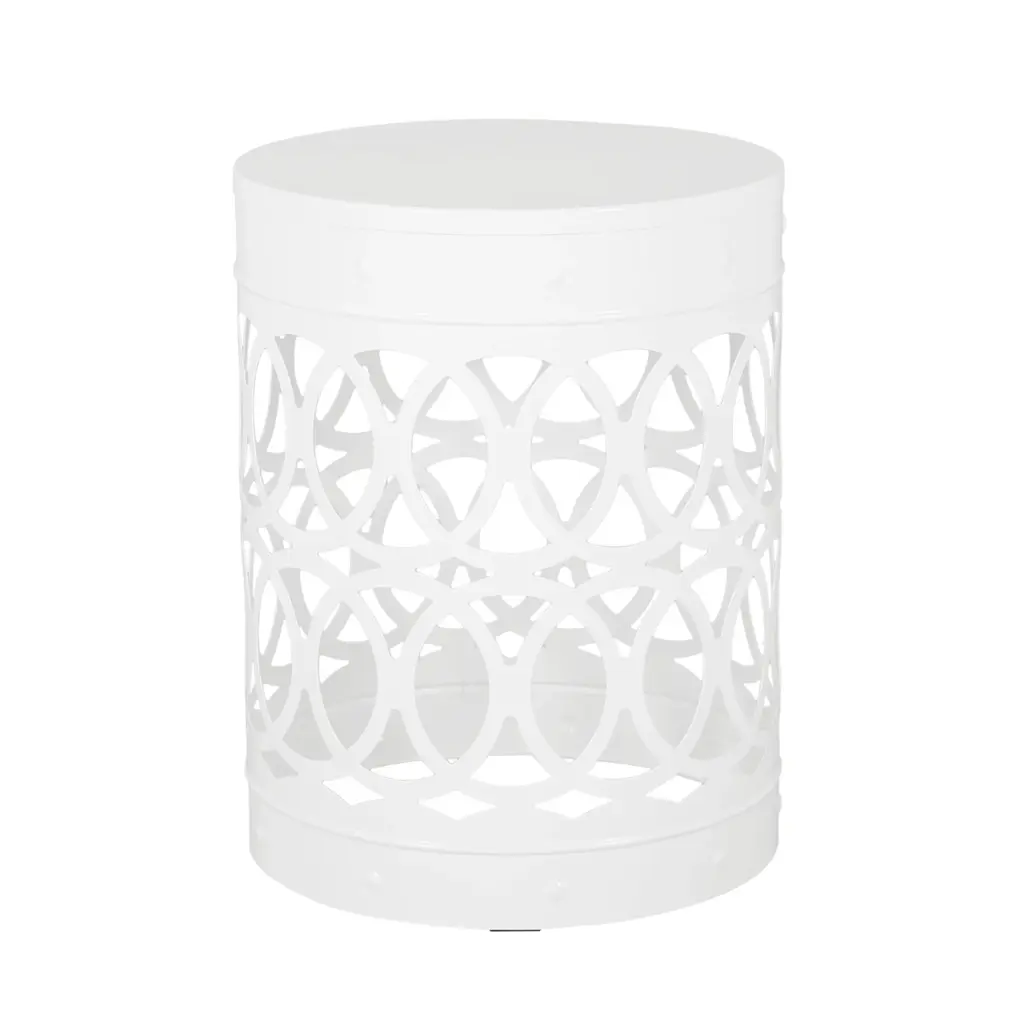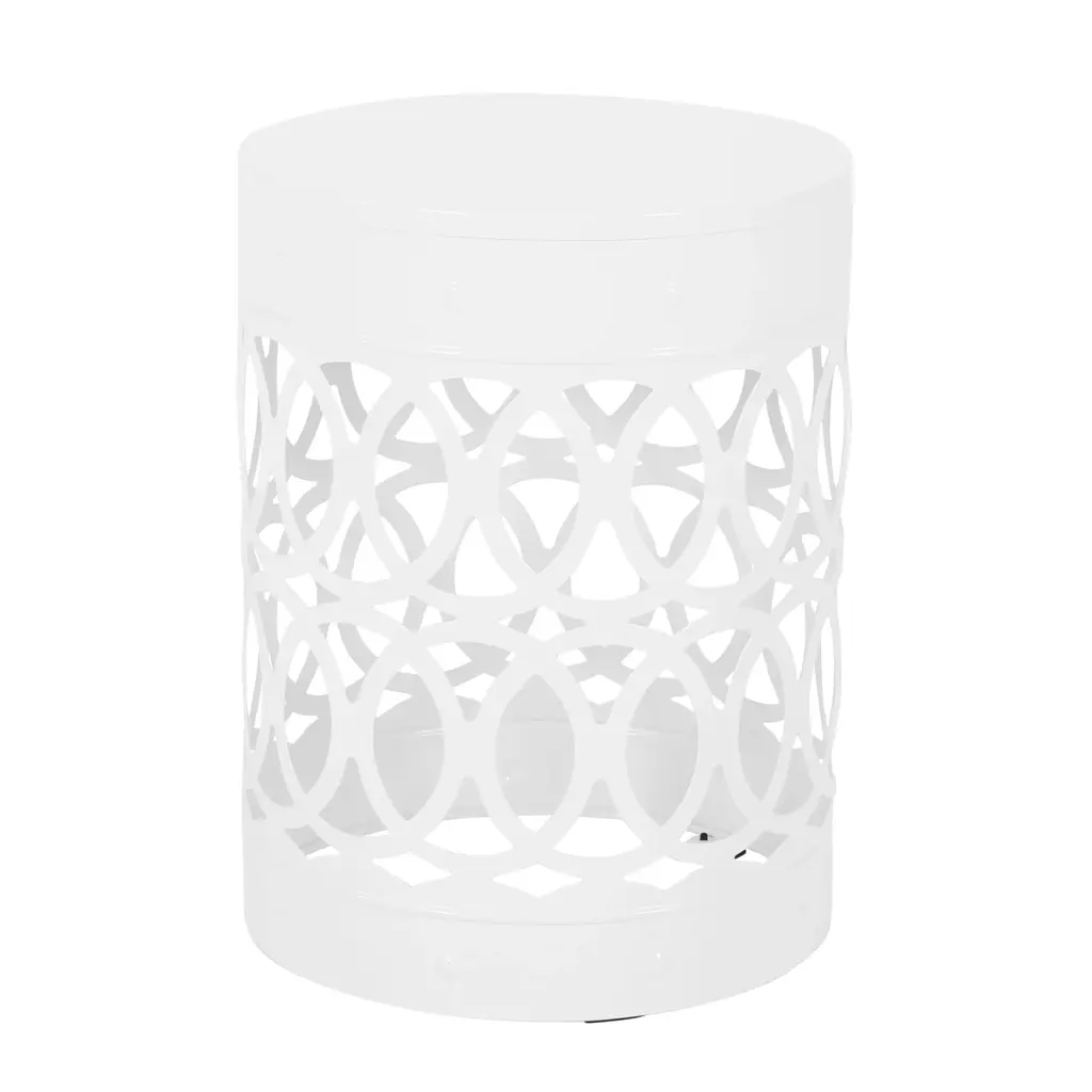 Elevate your space with this modern outdoor table, featuring a sleek cylindrical shape and an intricate iron-cut design. The overlapping circle pattern adds a refined touch, blending elegance with contemporary style. Built with a powder-coated iron frame, it offers exceptional durability and stability for both indoor and outdoor use. Its minimalistic yet sturdy structure ensures reliable support while maintaining a lightweight feel. Perfect for patios, balconies, or living areas, this table combines functionality with timeless design.