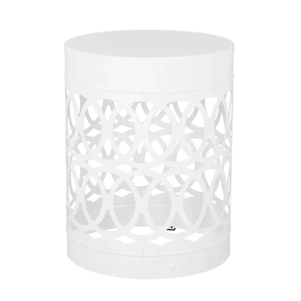 Symmetry White Outdoor Cylindrical End Table With Overlapping Circle Pattern - Large