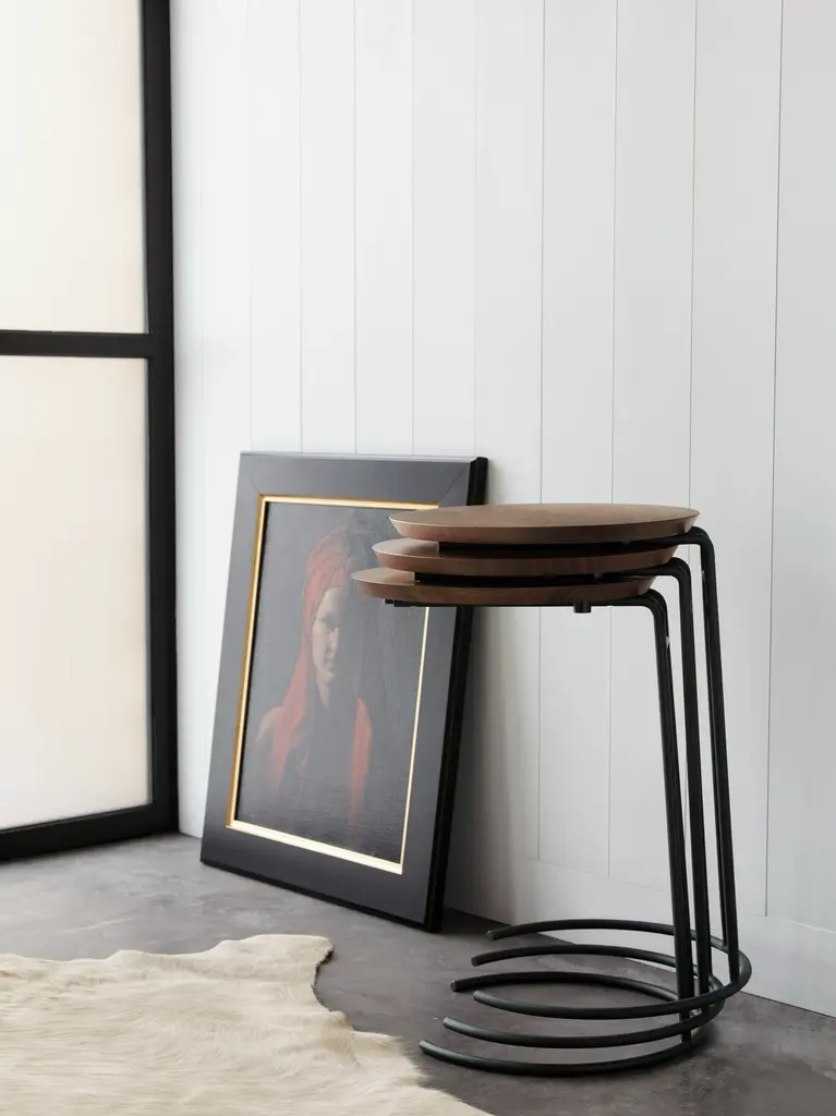 Risom introduced his T.710 Small Side Table (1950) at a time when he was experimenting with metal. He was fascinated by the negative space the table defines between its base and top and by the illusion of floating the top creates. This table is perfect for tight areas due to its compact size and small footprint. Stacks up to three high. Made in Malaysia.