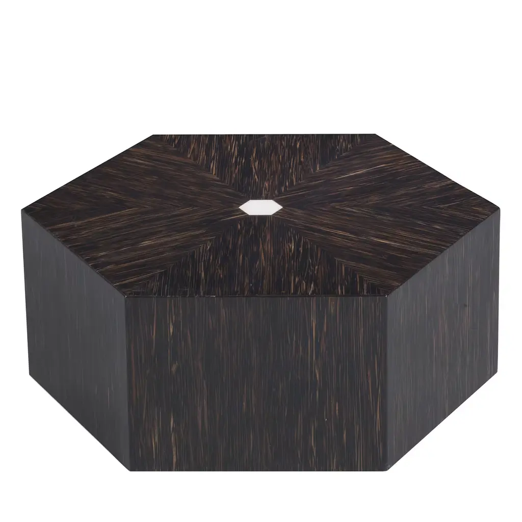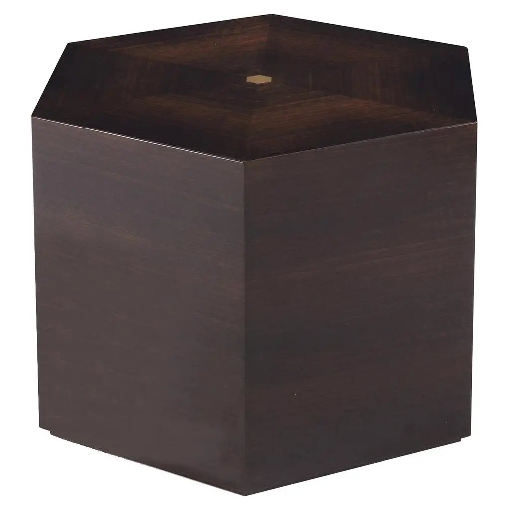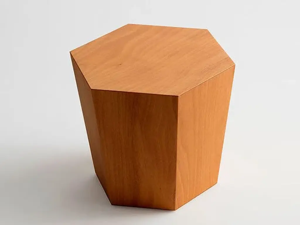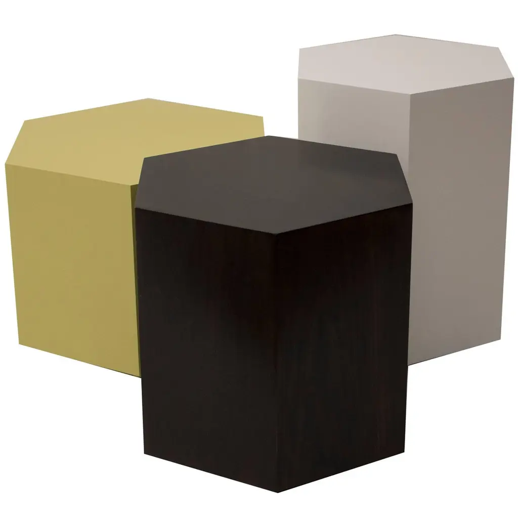 Subverting traditional design norms, this minimalist side table will add a bold touch to any interior with its distinctive design. The hexagonal frame is masterfully crafted of solid wood with eucalipto veneer. Versatile and bold, this piece can also be used as a pouf in a living room or patio decor or transformed into a large, low table in an interlocking arrangement with other side tables by the same designer, making it the perfect accent for large parties and family gatherings.