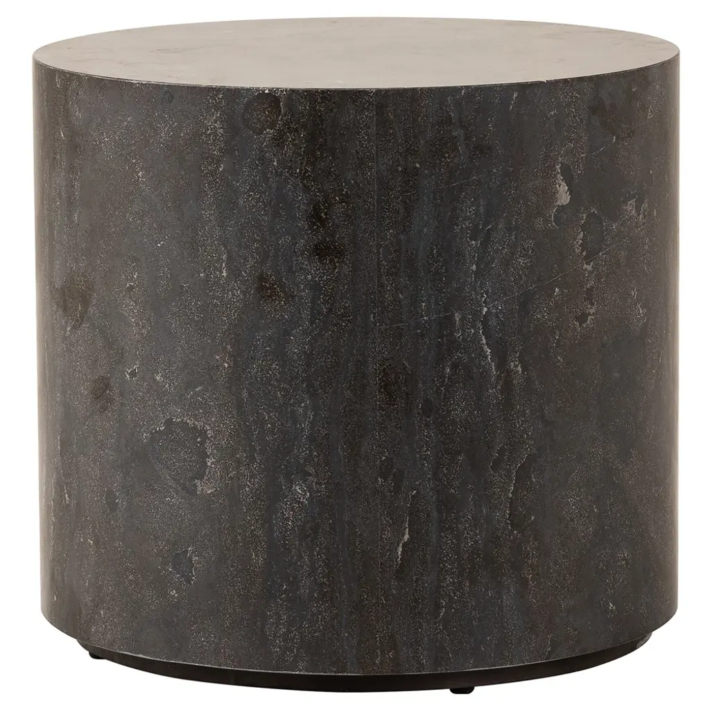 Cylinder Accent TableCircular Top with Heart Oak VeneerSwirl Cerejeira Veneer SidesEmber Finish