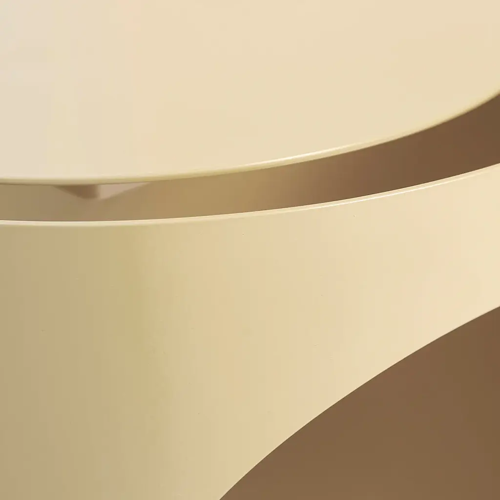 Tabl is a graphic metal side table designed from the idea of optimising material by providing the design with a new function without adding additional material. A circular part of the classic cylindrical base has been cut out and transformed into a functional tabletop. Consequently leaving a round, open space in the foundation for storage of books, throws or creative pursuits.