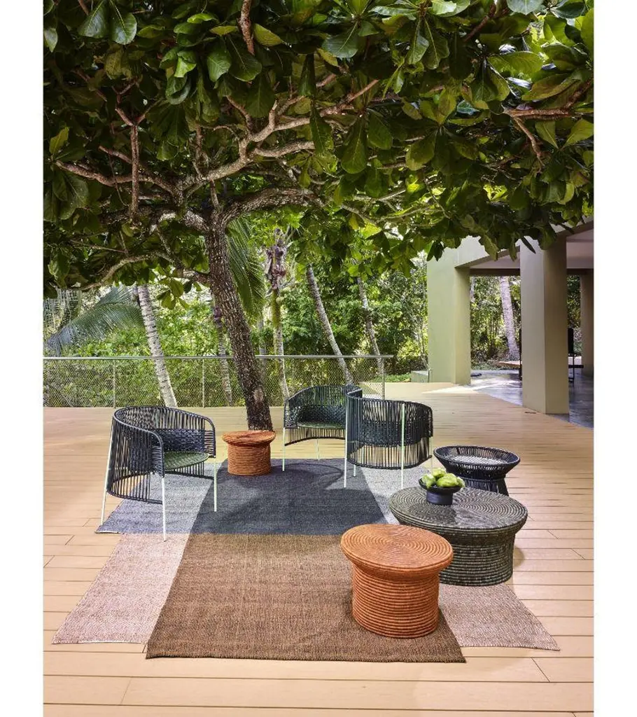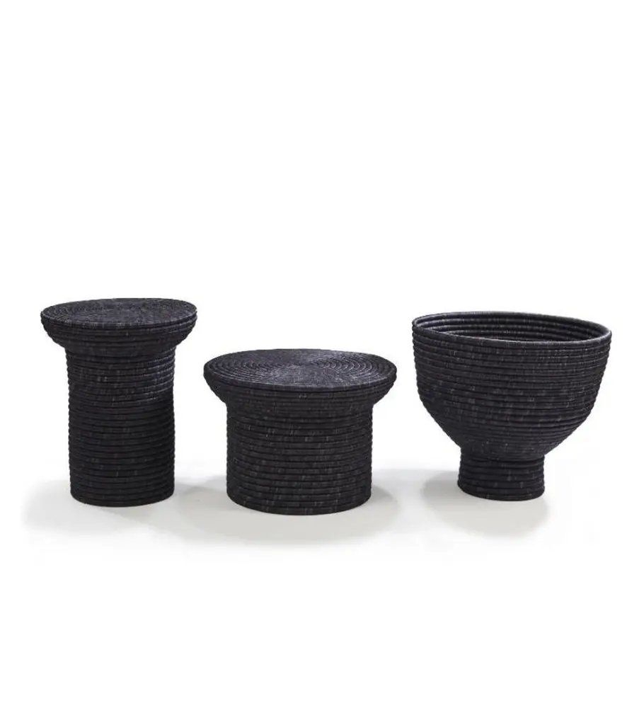 Table 1 La Che by Sebastian HerknerMaterials: 100% Fique fibers from Furcraea leaves from Furcraea leaves. Technique: Hand-woven in Colombia. Dimensions: Diameter 47 cm x Width 31 x Height 33 cm Available in colors: black, verde, bronce, cuerda. And other sizes. The La Che Side Table honors the beautiful traditional weaving Craft of Colombia. Sebastian Herkner designed the collection after visiting Colombia and studying the weaving techniques of the local artisans. The name La Che is a reference to the Laches, an indigenous Colombian people, who used a method with the same name to create baskets. The tables are available in three sizes. The tables are made in small workshops in the Boyacá region, which is situated 2,400 meters above sea level in the Colombian Andes. This area has a long tradition of working with fibers made from the leaves of the fique plant. These fibers are wound by hand and a robust part of the fique plant is used as a frame. The dyes used have mostly natural ingredients, such as nuts, roots, and bark from trees, all native to the region. The production process is very labor-intense and requires a great deal of skill: It takes several weeks to produce one La Che table. At times, two artesanos work on the same piece simultaneously. It is only possible to produce a few products each month due to the amount of work required. Even in Colombia, this traditional handcrafting technique has become a rare skill, making La Che an Exclusive Design collection. German designer Sebastian Herkner is a long-term collaborator of Ames and has visited Colombia multiple times to experience the country’s cities, nature and people first hand. He also visited many of the ateliers that Ames has partnered with to learn about the unique traditional crafts of Colombia's regions. A sought-after contemporary designer and recipient of many industry awards, he has worked with many international design brands, creating intriguing pieces that showcase his intuition for interesting material, color, and texture combinations.