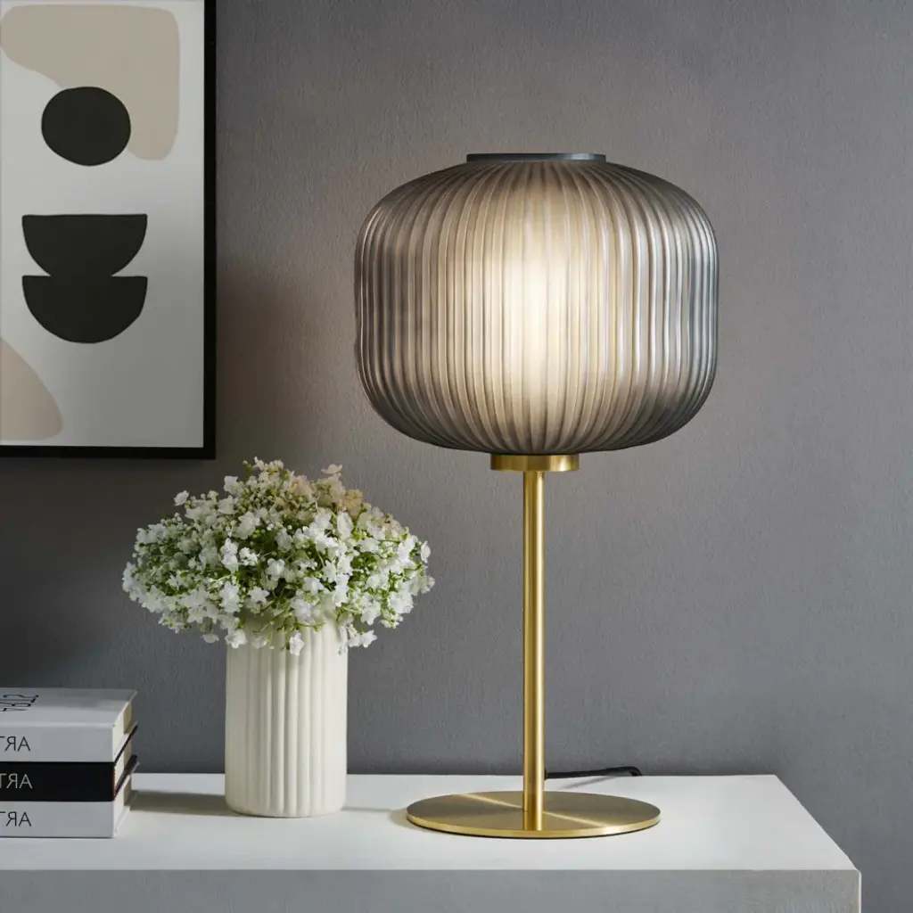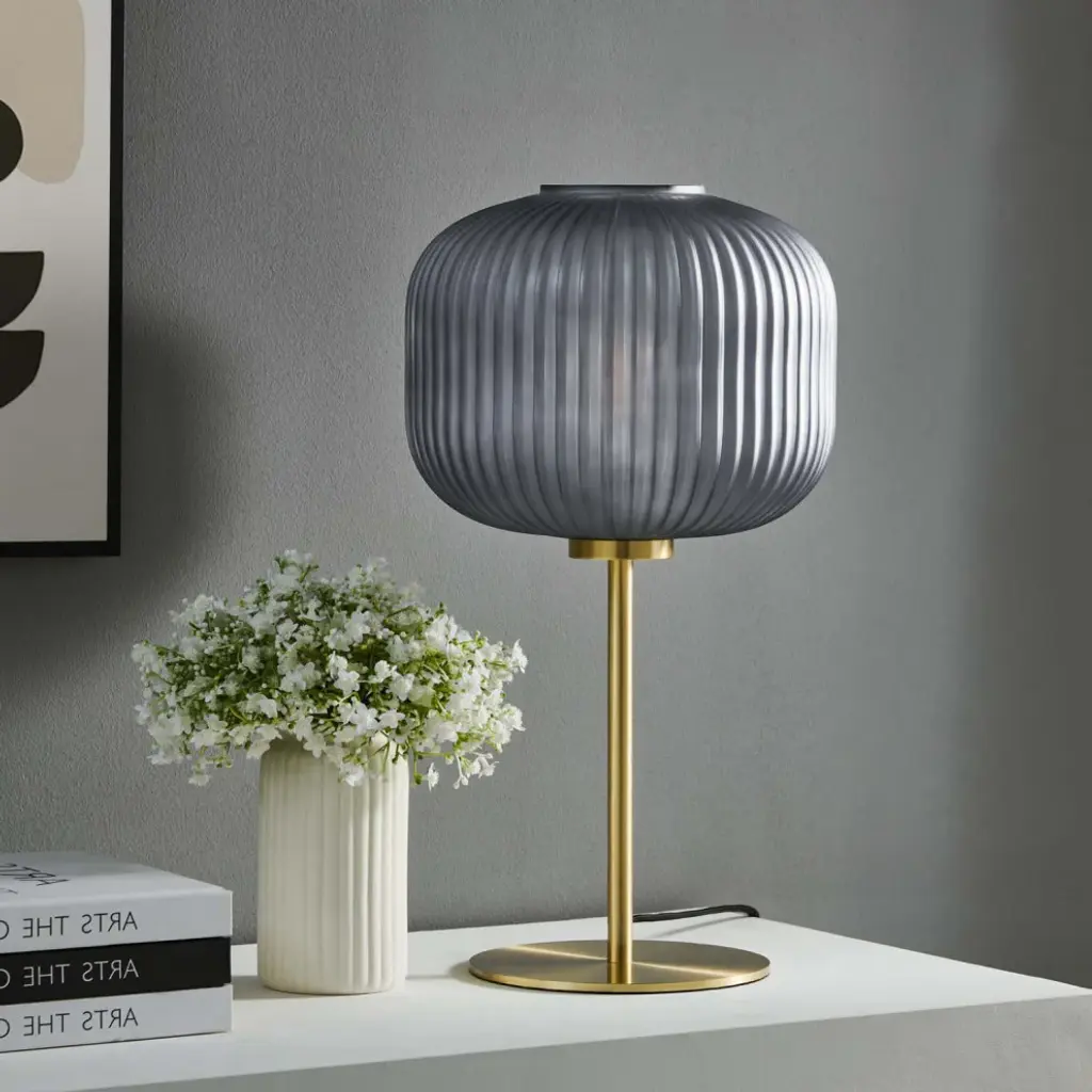 Table Desk Lamp, Black Gold, Glass, Mid Century Living Kitchen Bistro Cafe
